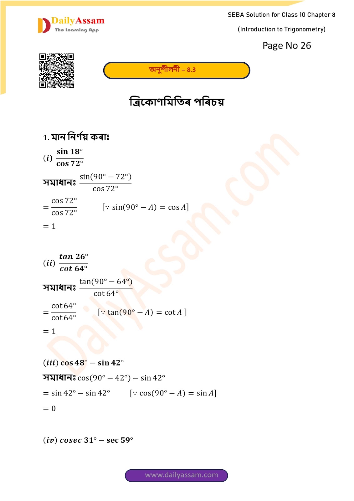 ত্ৰিকোণমিতিৰ পৰিচয় | Introduction to Trigonometry | Lesson 8 | Exercise 8.3 | Class 10 Mathematics Solution Assamese Medium | Class 10 Maths Solution Assam | দশম শ্ৰেণীৰ গণিতৰ প্ৰশ্ন উত্তৰ |