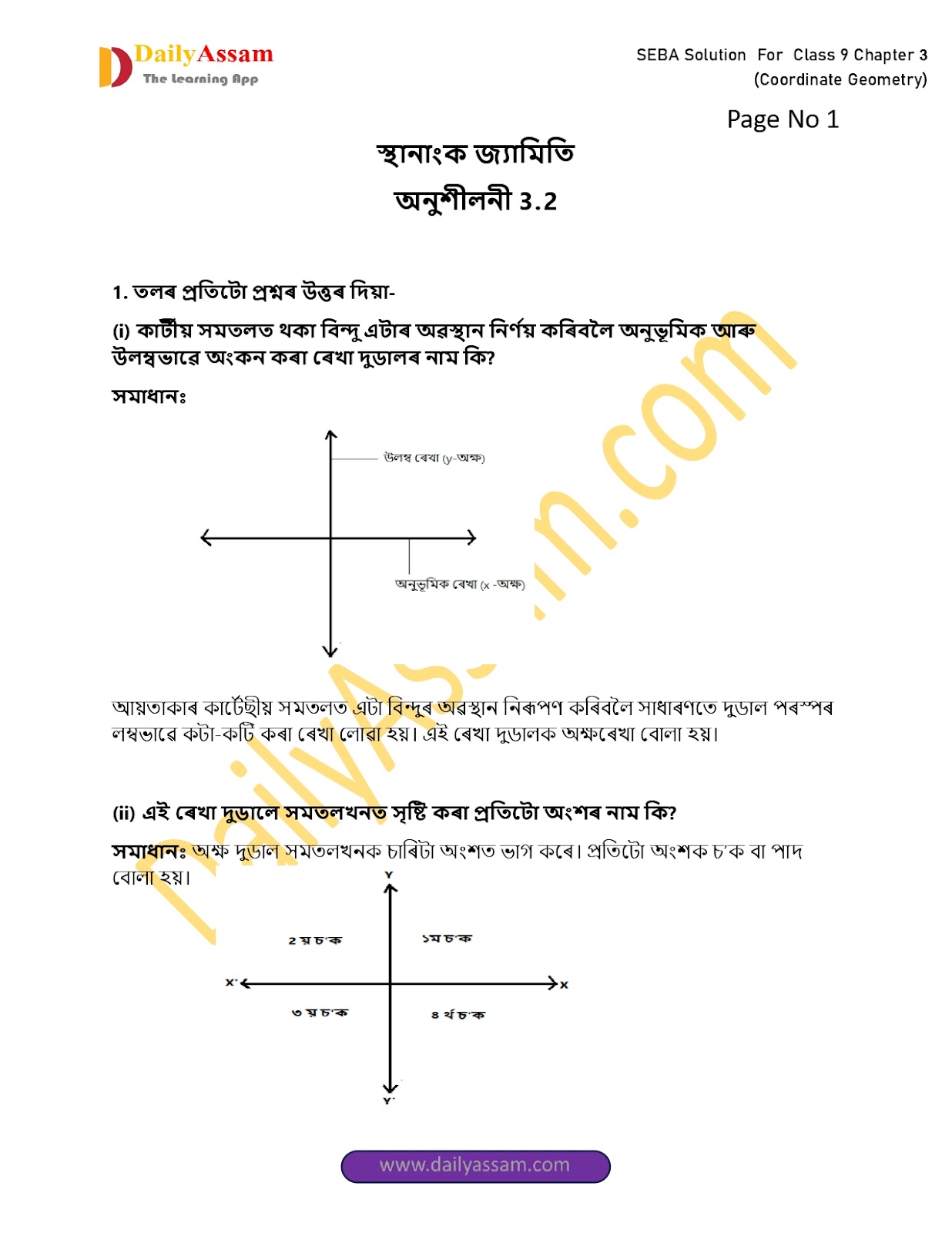 1. তলৰ প্ৰতিটো প্ৰশ্নৰ উত্তৰ দিয়া---