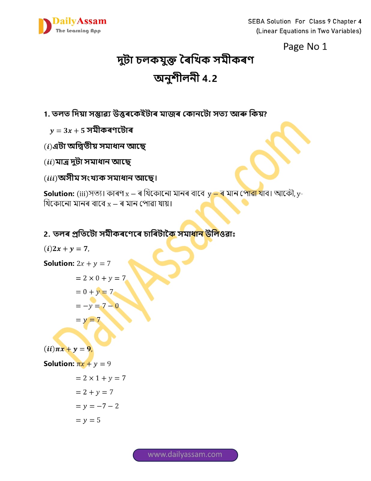 2. তলৰ প্ৰতিটো সমীকৰণৰে চাৰিটাকৈ সমাধান উলিওৱা ঃ