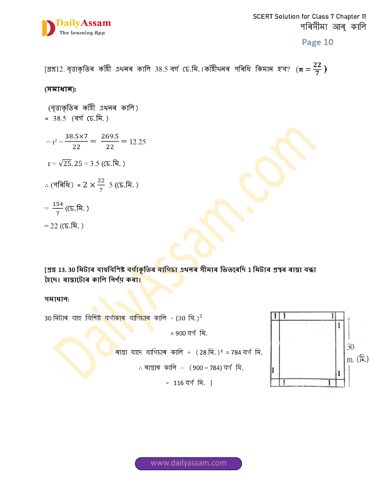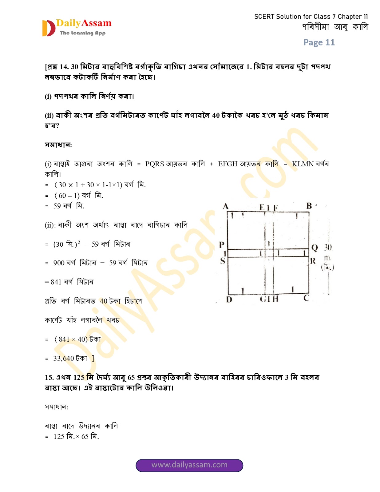14. 30 মিটাৰ বাহু বিশিষ্ট বৰ্গাকৃতিৰ বাগিচা এখনৰ সোঁমাজেৰে 1 মিটাৰ বহলৰ দুটা পদপথ লম্বভাৱে কটাকৈ নিৰ্মাণ কৰা হৈছে।
