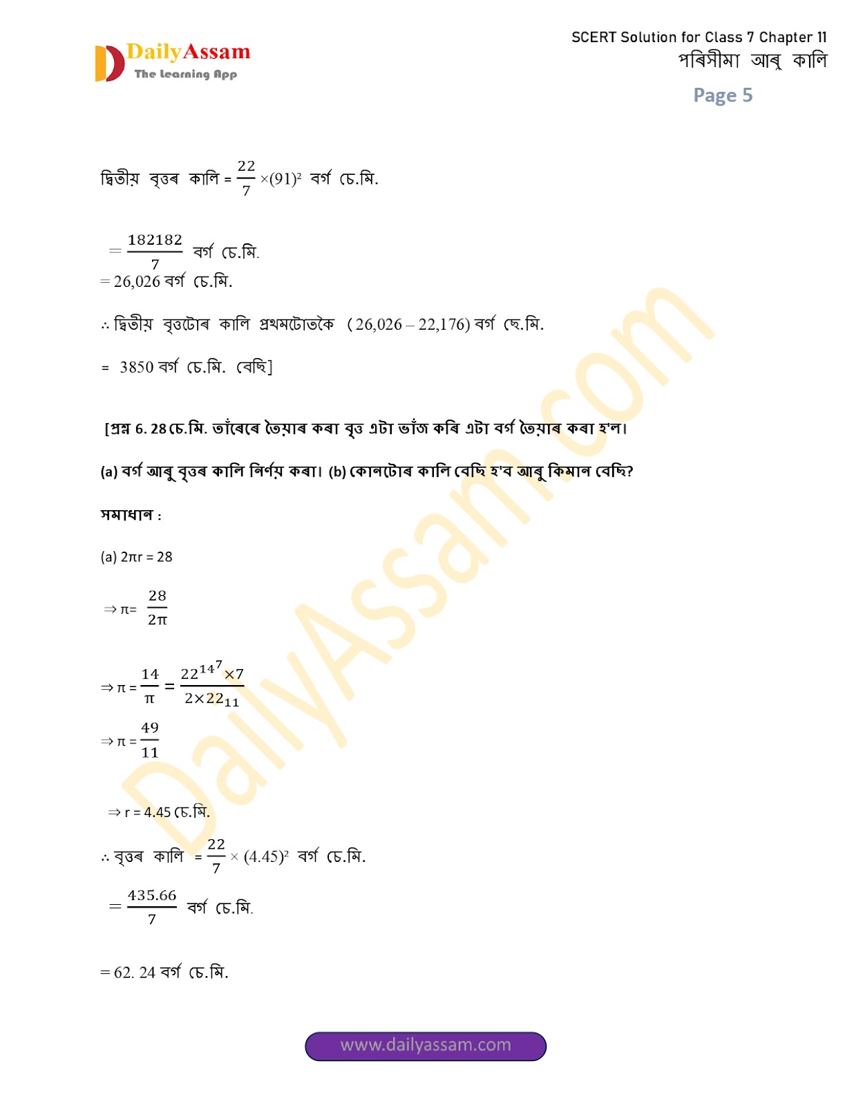 5. এটা বৃত্তৰ ব্য়াসাৰ্ধ 84 চে মি আৰু আন এটা বৃত্তৰ ব্য়াসাৰ্ধ 91 চে মি। দ্বিতীয় বৃত্তটোৰ কালি প্ৰথমটোতকৈ কিমান বেছি নিৰ্ণয় কৰা।