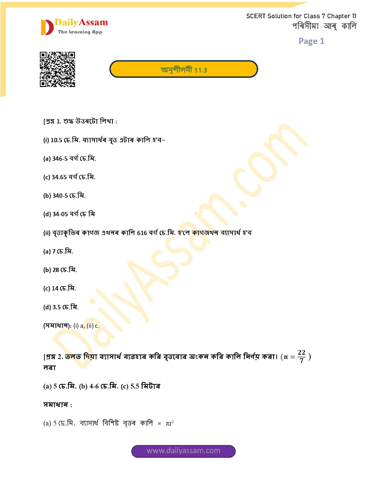 (i) 10.5 চে মি ব্য়াসাৰ্ধৰ বৃত্ত এটাৰ কালি হ'ব