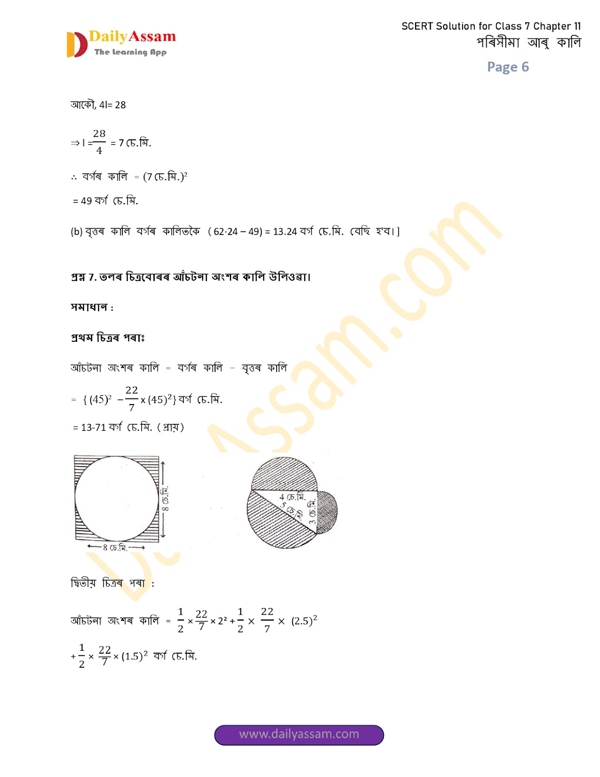 (a) বৰ্গ আৰু বৃত্তৰ কালি নিৰ্ণয় কৰা। (b) কোনটোৰ কাি বেছি হ'ব আৰু কিমান বেছি?
