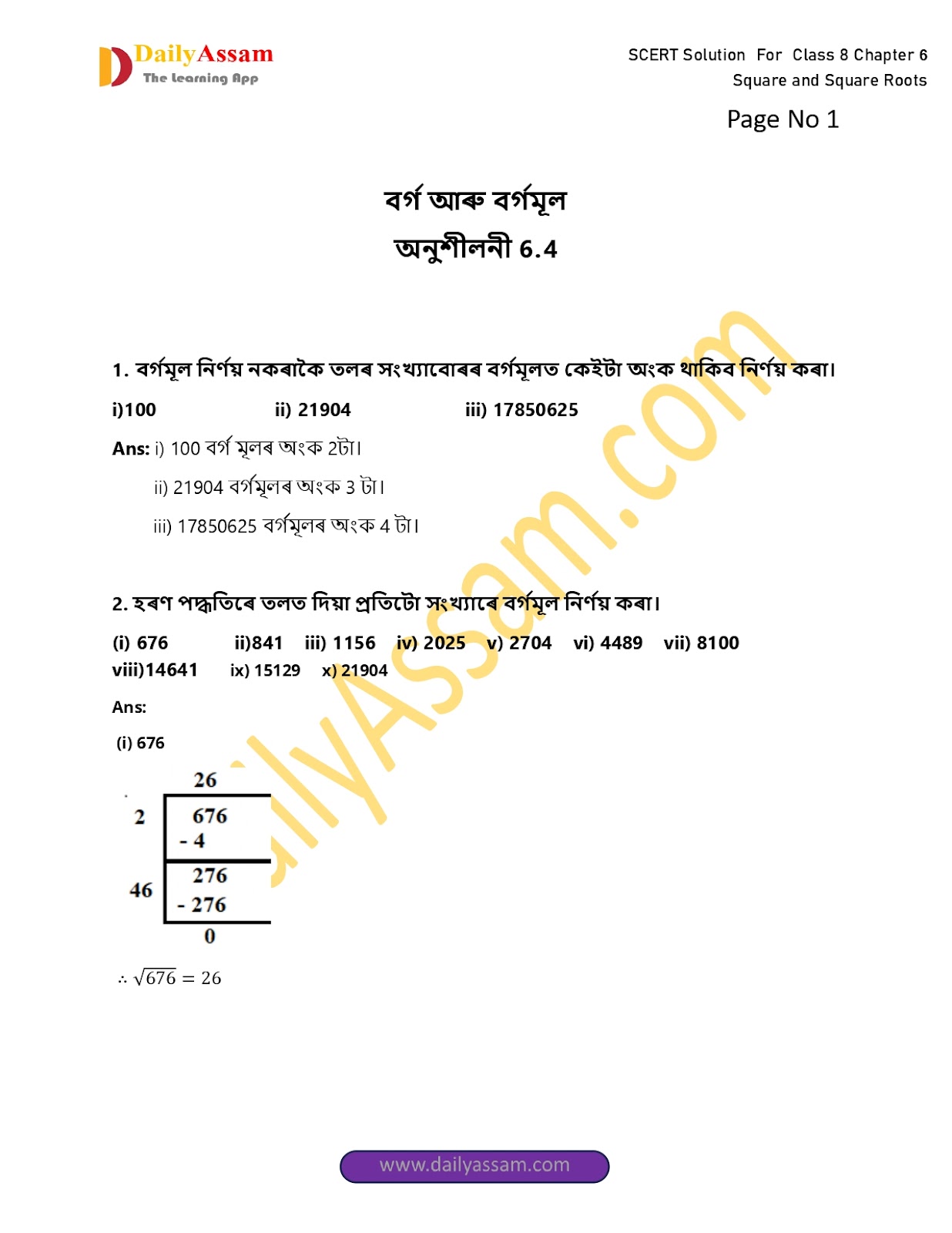 2. হৰণ পদ্ধতিৰে তলত দিয়া প্ৰতিটো সংখ্যাৰে বৰ্গমূল নিৰ্ণয় কৰা।