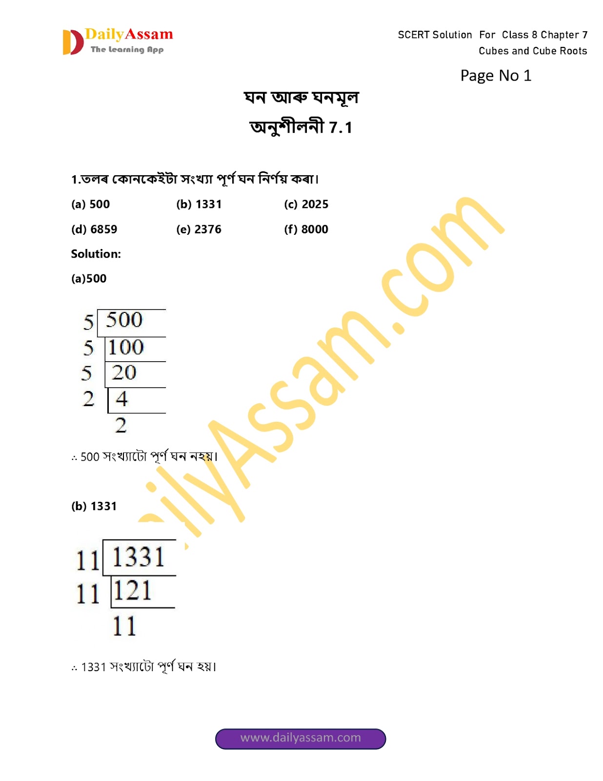 1. তলৰ কোনকেইটা সংখ্যা পূৰ্ণ ঘন সংখ্যা নিৰ্ণয় কৰা।