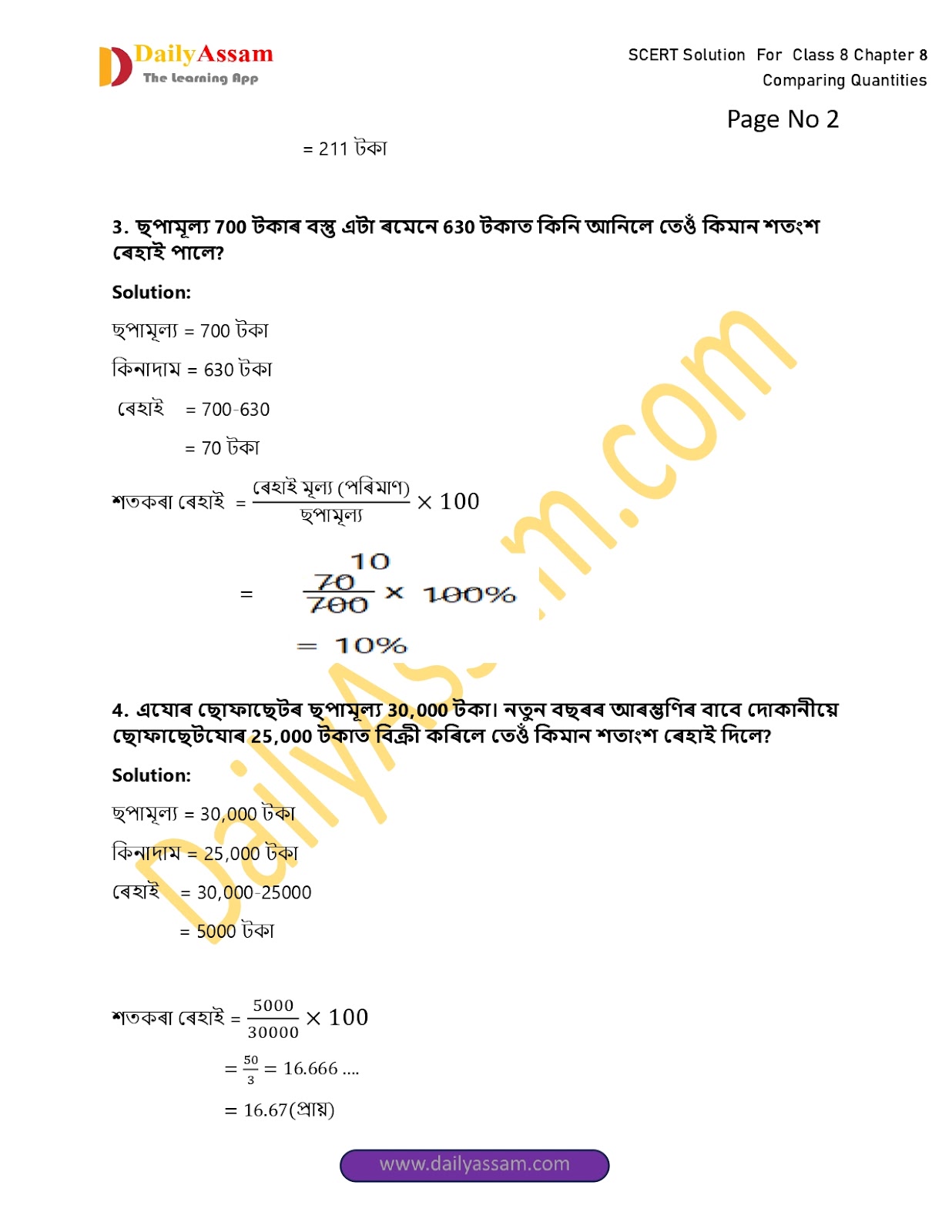 3. ছপামূল্য 700 টকাৰ বস্তু এটা ৰমেনে 630 টকাত কিনি আনিলে তেওঁ কিমান শতংশ ৰেহাই পালে?