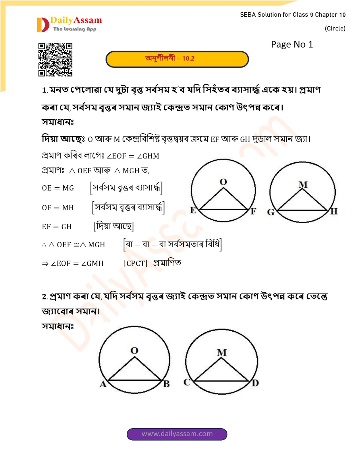 1. মনত পেলোৱা যে দুটা বৃত্ত সৰ্বসম হ'ব যদি সিহঁতৰ ব্যাসাৰ্ধ একে হয়। প্ৰমাণ কৰা যে সৰ্বসম বৃত্তৰ সমান জ্যাই কেন্দ্ৰত সমান কোণ উৎপন্ন কৰে।
