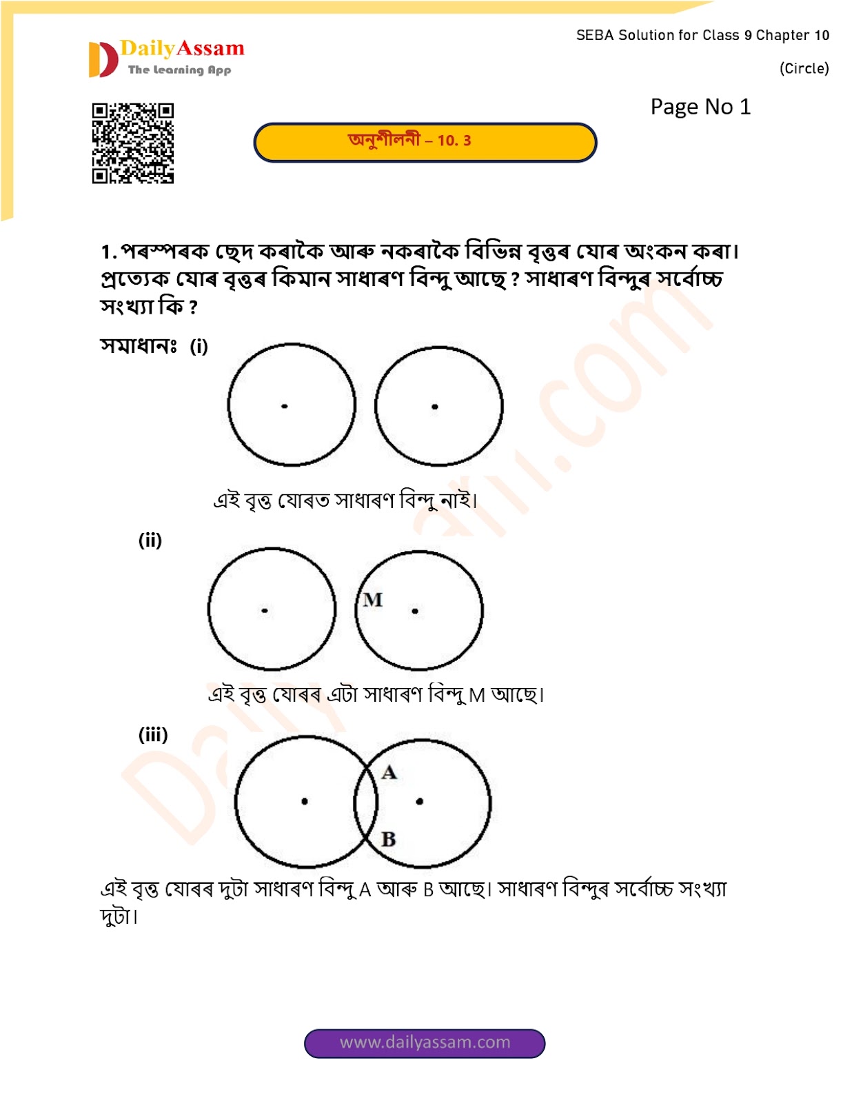 (i) যিকোনো এটা বৃত্তৰ ওপৰত P, Q আৰু R তিনিটা বিন্দু লোৱা হ'ল।