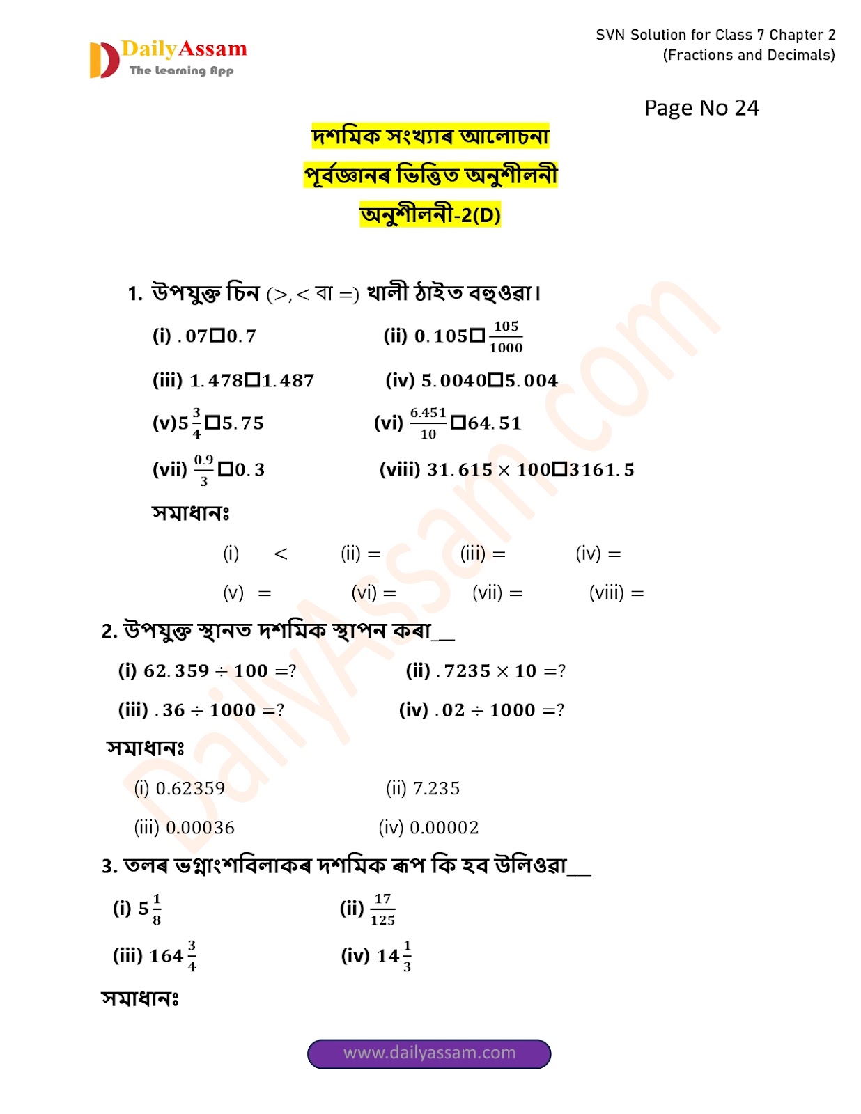 3. তলৰ ভগ্নাংশবিলাকৰ দশমিক ৰূপ কি হ'ব উলিওৱা一