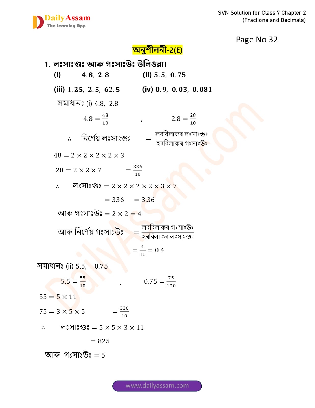 1. ল.সা.গু আৰু গ.সা.উ উলিওৱা।