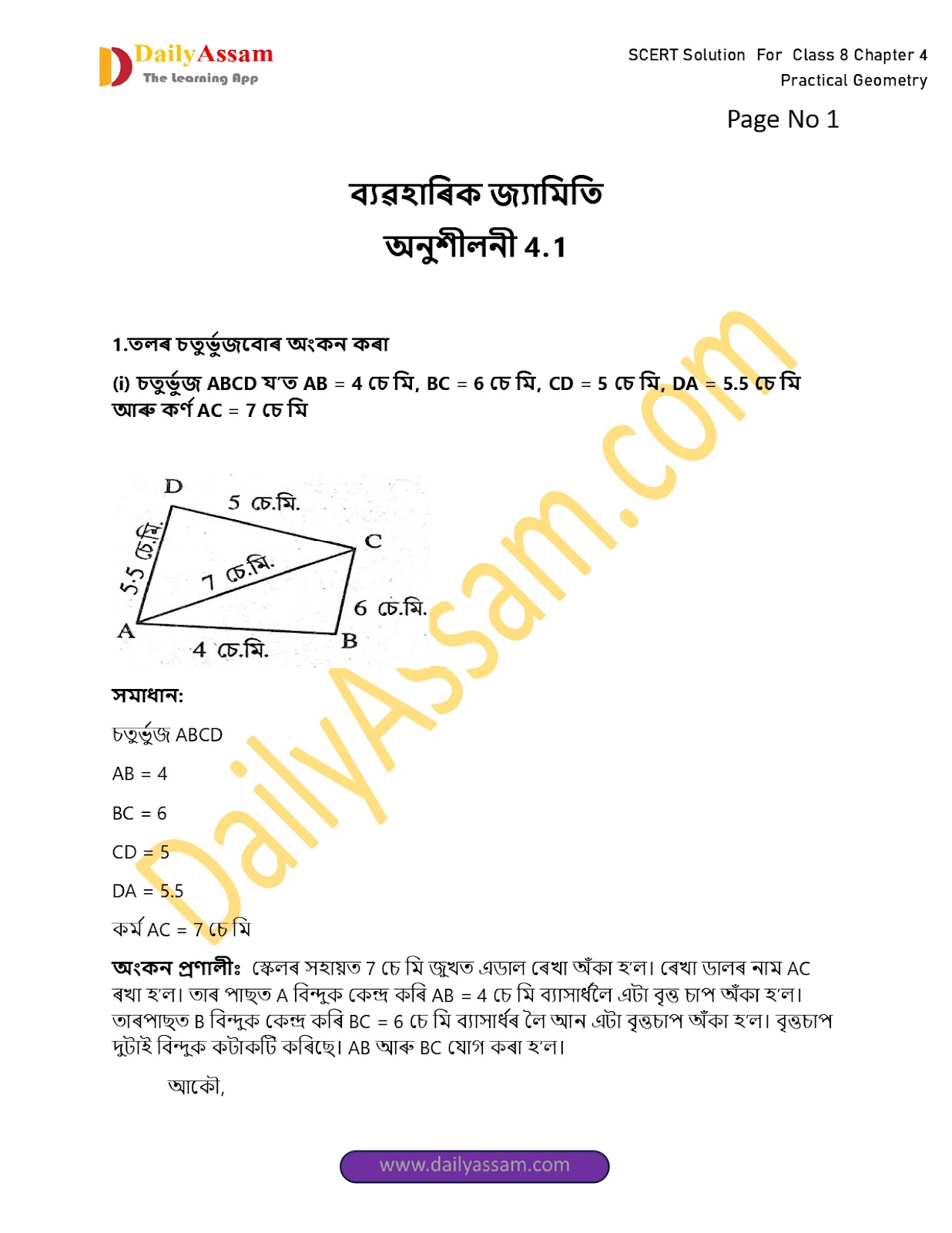 ∴∆ ABCD সেই আঁকিবলগীয়া চতুৰ্ভুজটো পোৱা গ’ল ।
