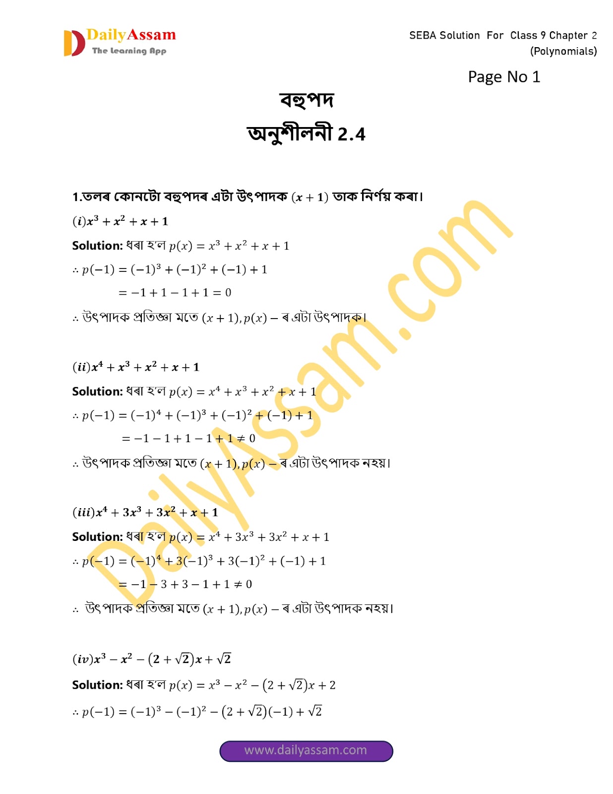 1.তলৰ কোনটো বহুপদৰ এটা উৎপাদক উপপাদ্য় ব্য়ৱহাৰ কৰি তলৰ প্ৰতিটোক্ষেত্ৰ g(x), p(x) ৰ এটা উৎপাদক হয়নে নহয় পৰীক্ষা কৰা।
