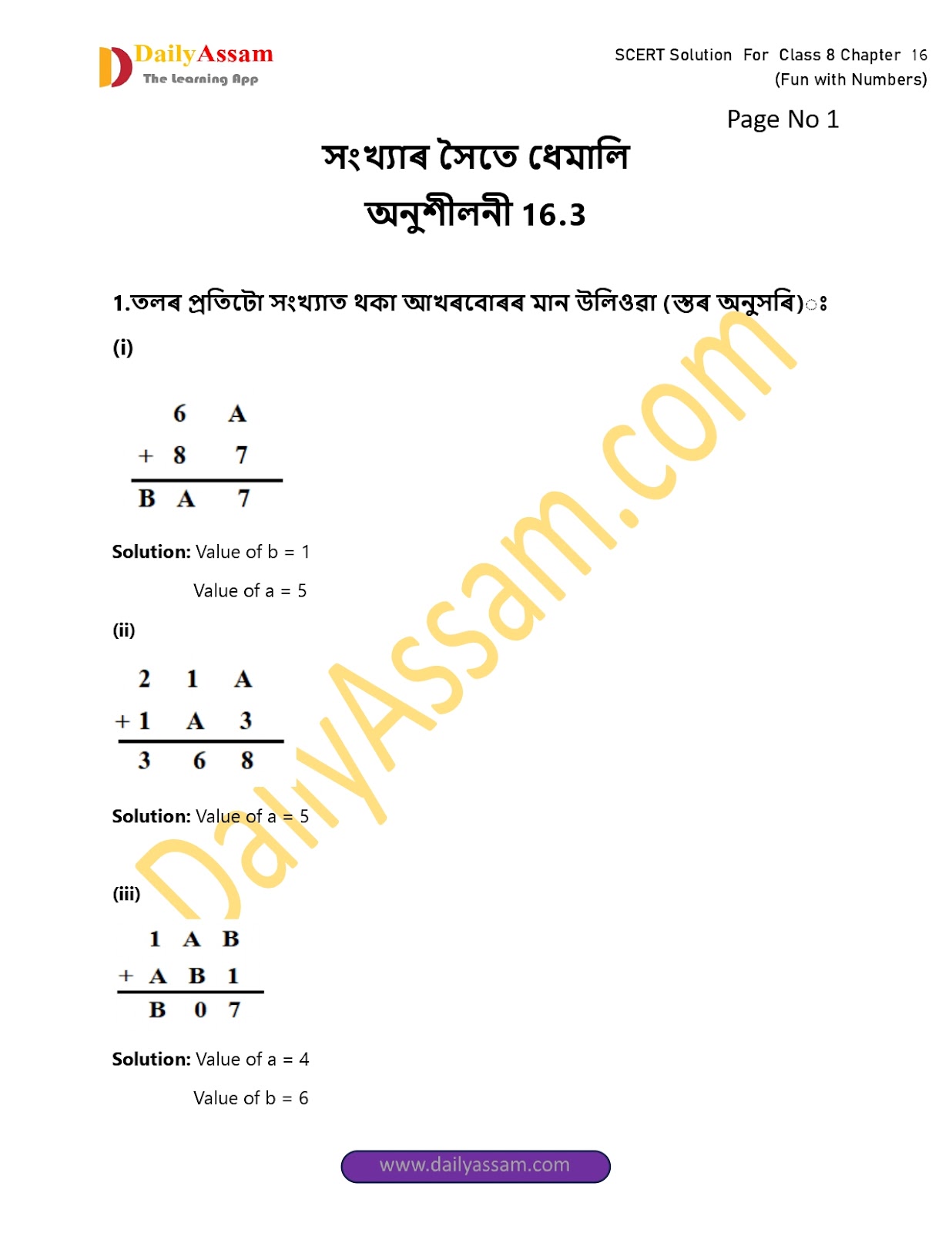 1. তলৰ প্ৰতিটো সংখ্যাত থকা আখৰবোৰৰ মান উলিওৱা (স্তৰ অনুসৰি) ঃ