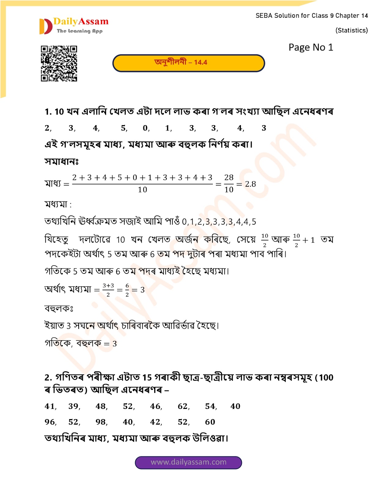 আৰু বহুলক হৈছে = 52