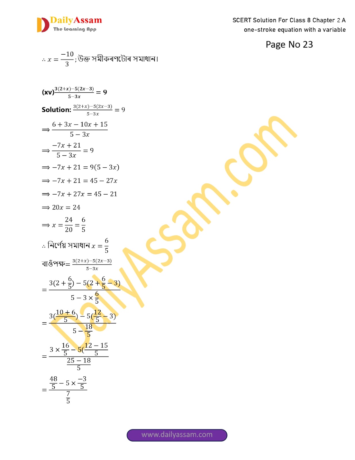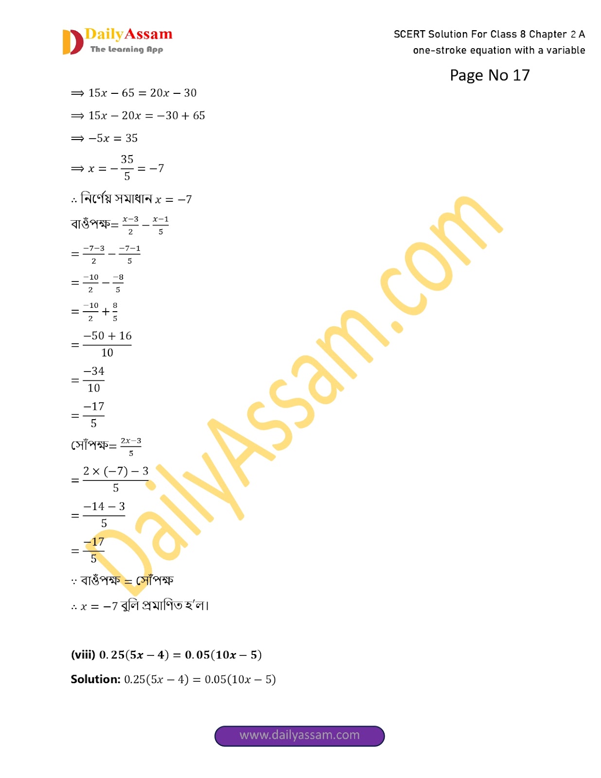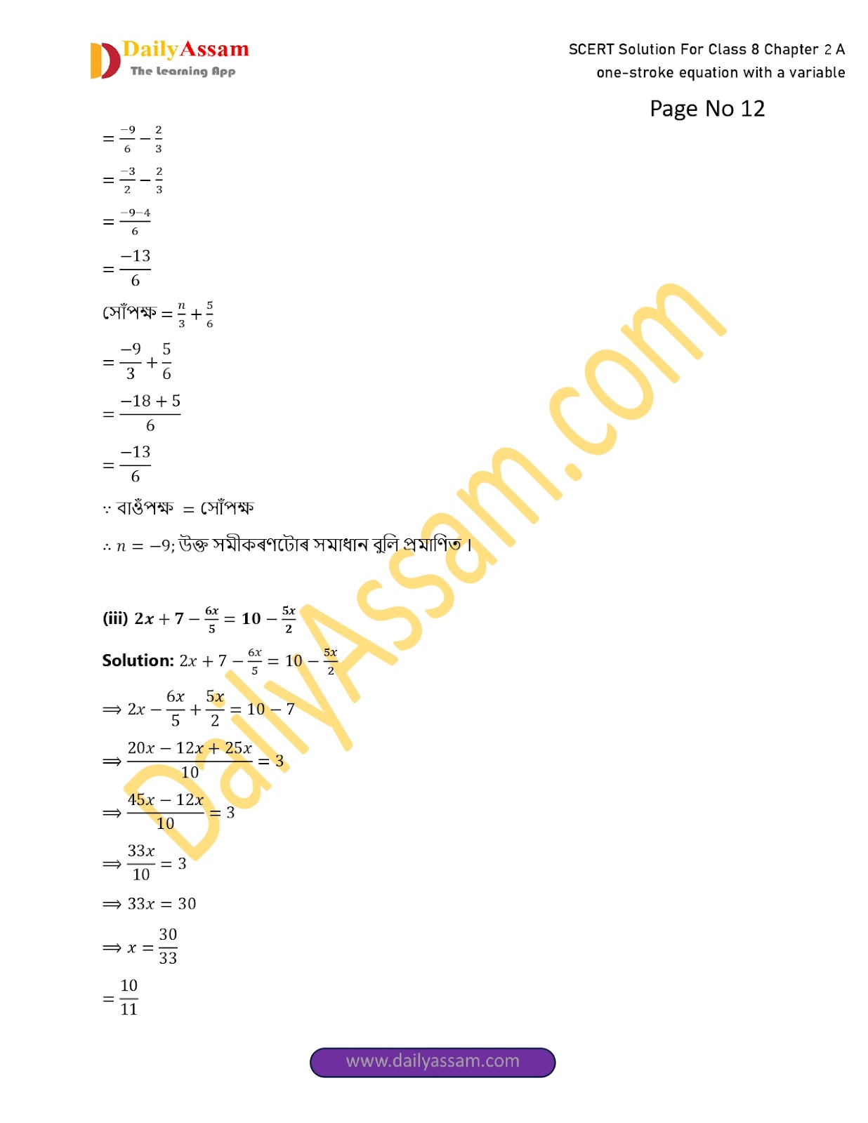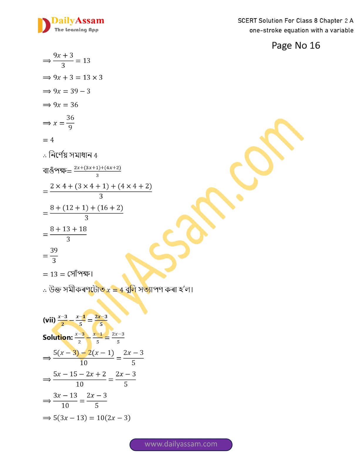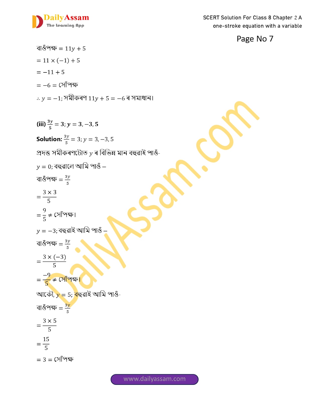 ∴ উক্ত সমীকৰণটোৰ সমাধান X = 7 বুলি প্ৰমাণিত হ'ল