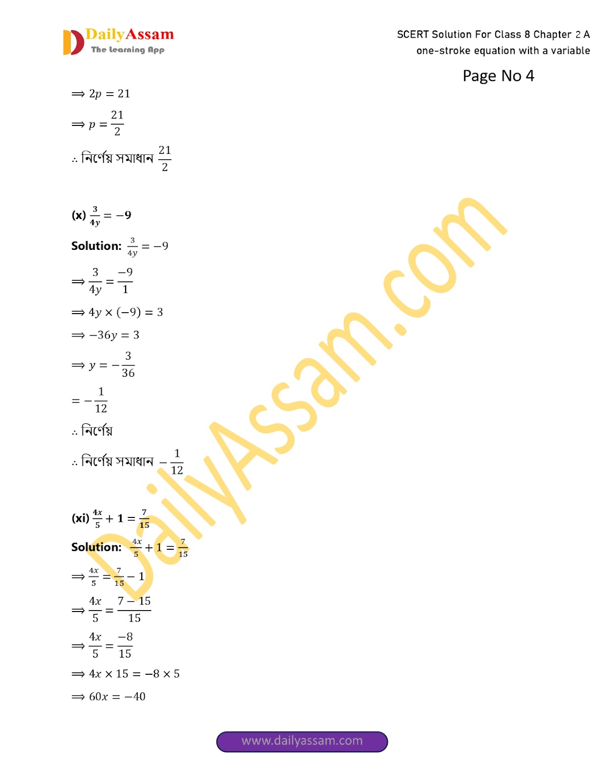 ∵ উক্ত সমীকৰণটোৰ সমাধান P = 4