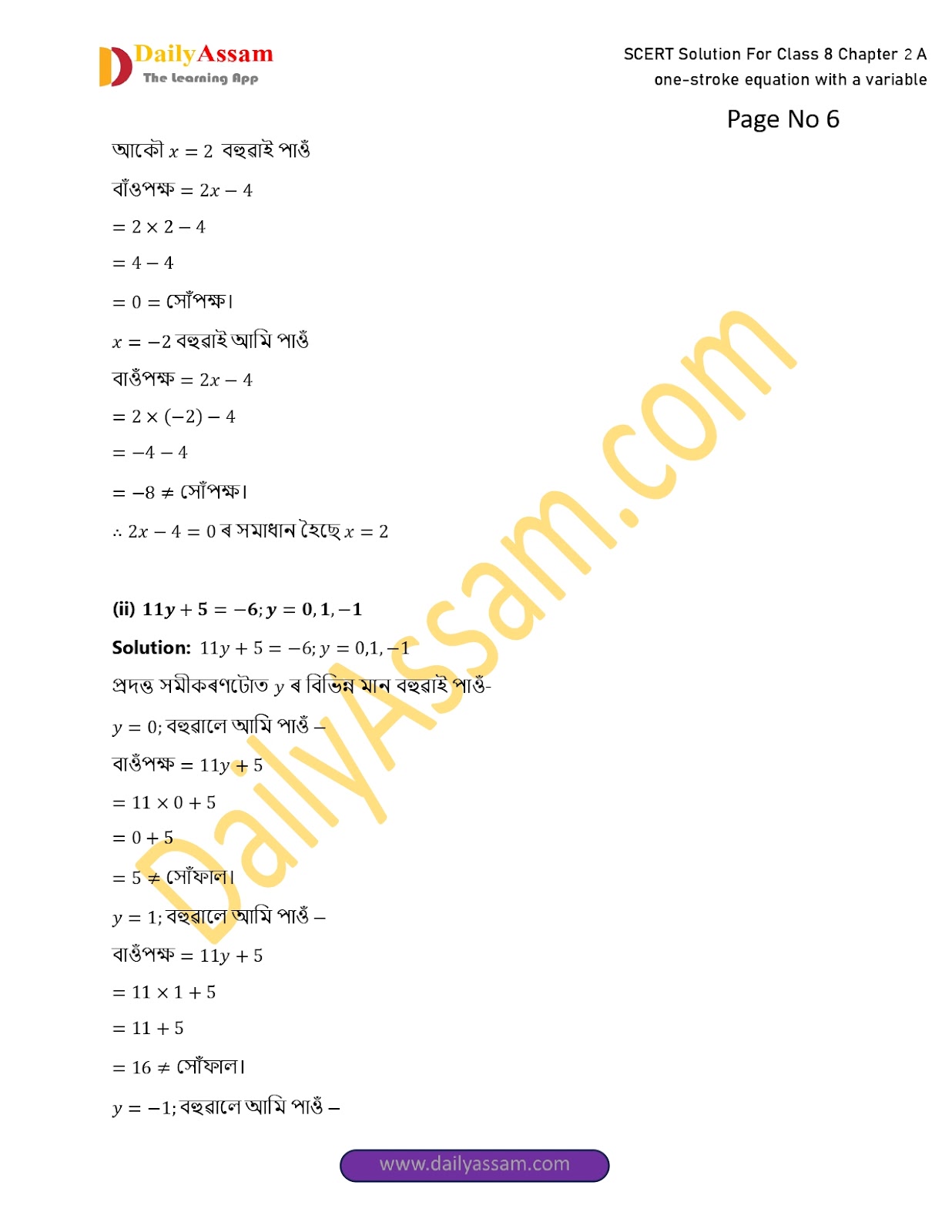 2. তলৰ প্ৰত্য়েকটো সমীকৰণ লগতে চলকৰ কিছুমান মান দিয়া হৈছে । এই মানবোৰৰ ভিতৰত কোনটো মান সমীকৰণটোৰ সমাধান হ'ব নিৰ্ণয় কৰা ।