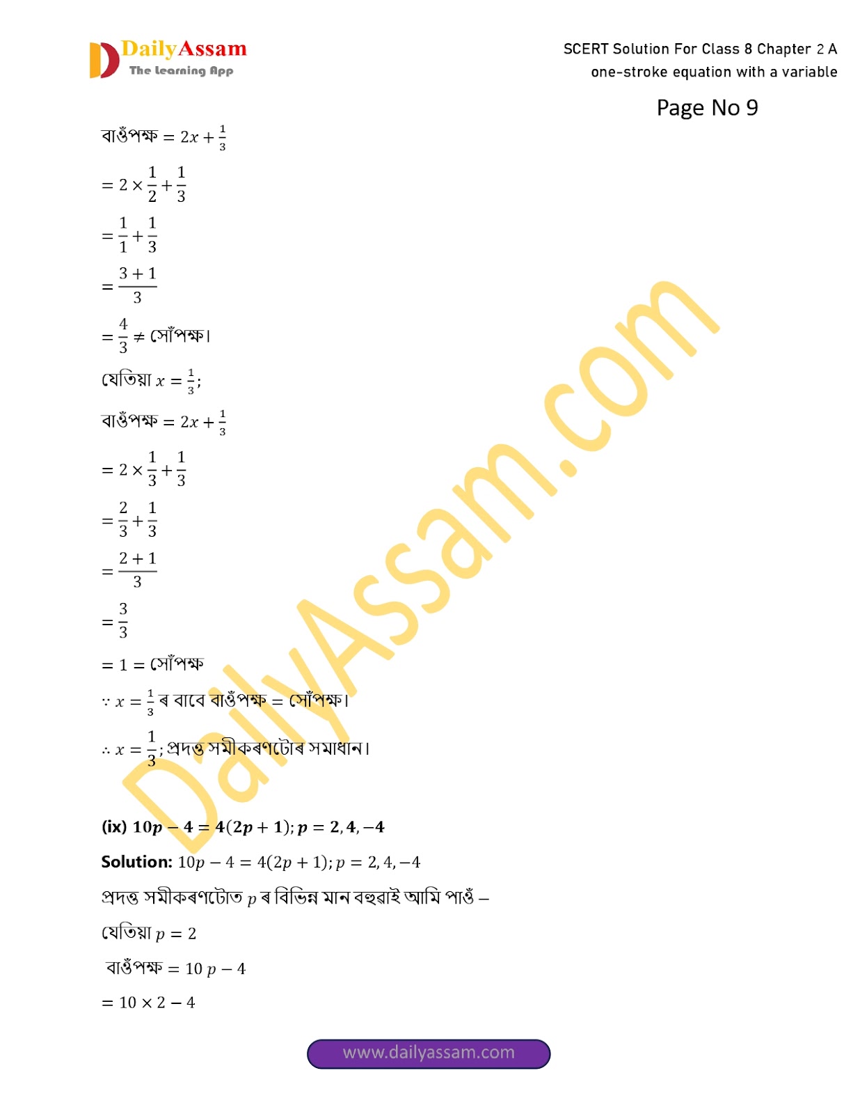 P = 9; উক্ত সমীকৰণটোৰ সমাধান ।