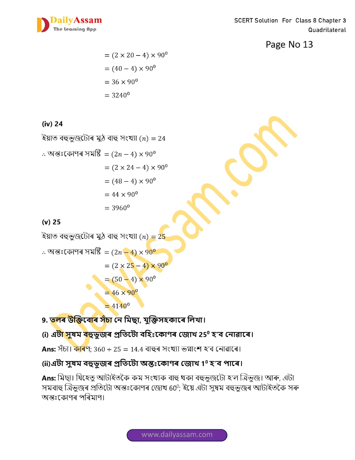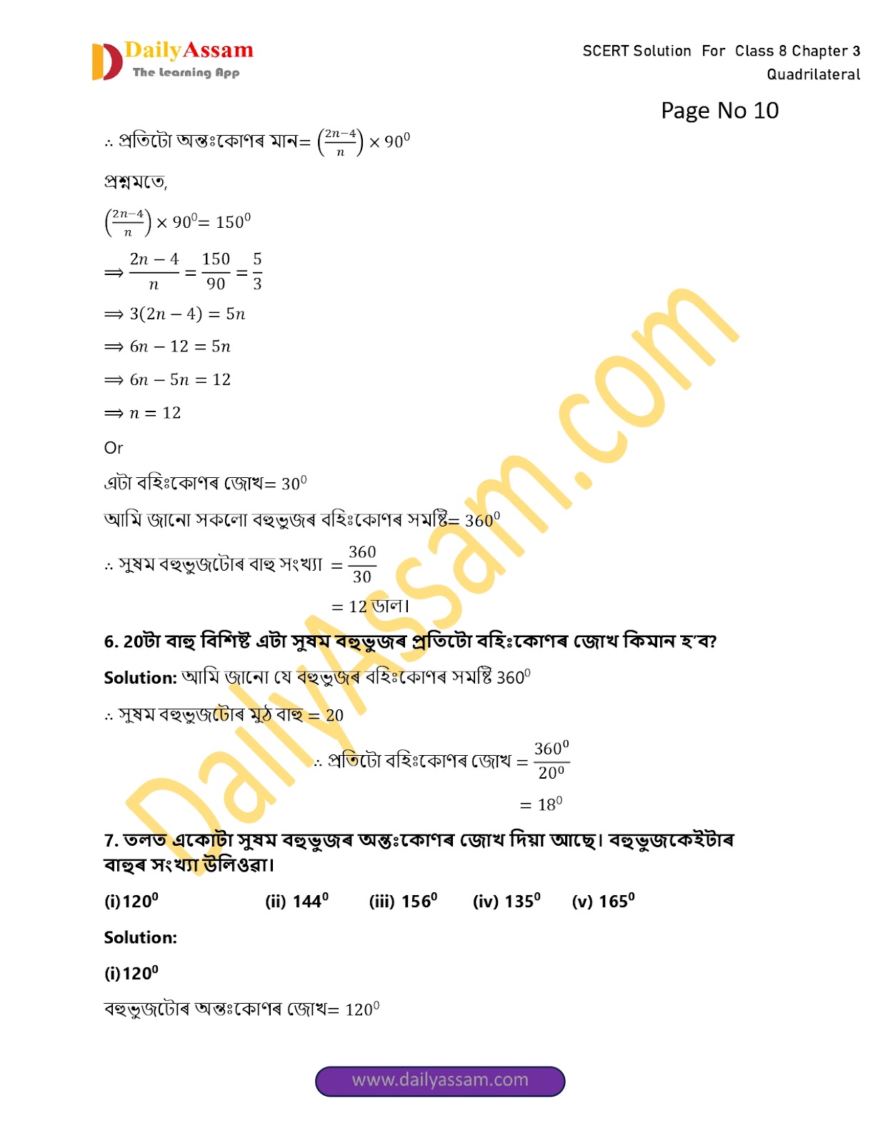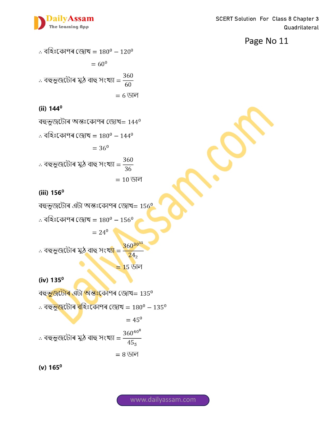 Solution:এটা বহুভুজৰ অন্ত:কোণৰ জোখ