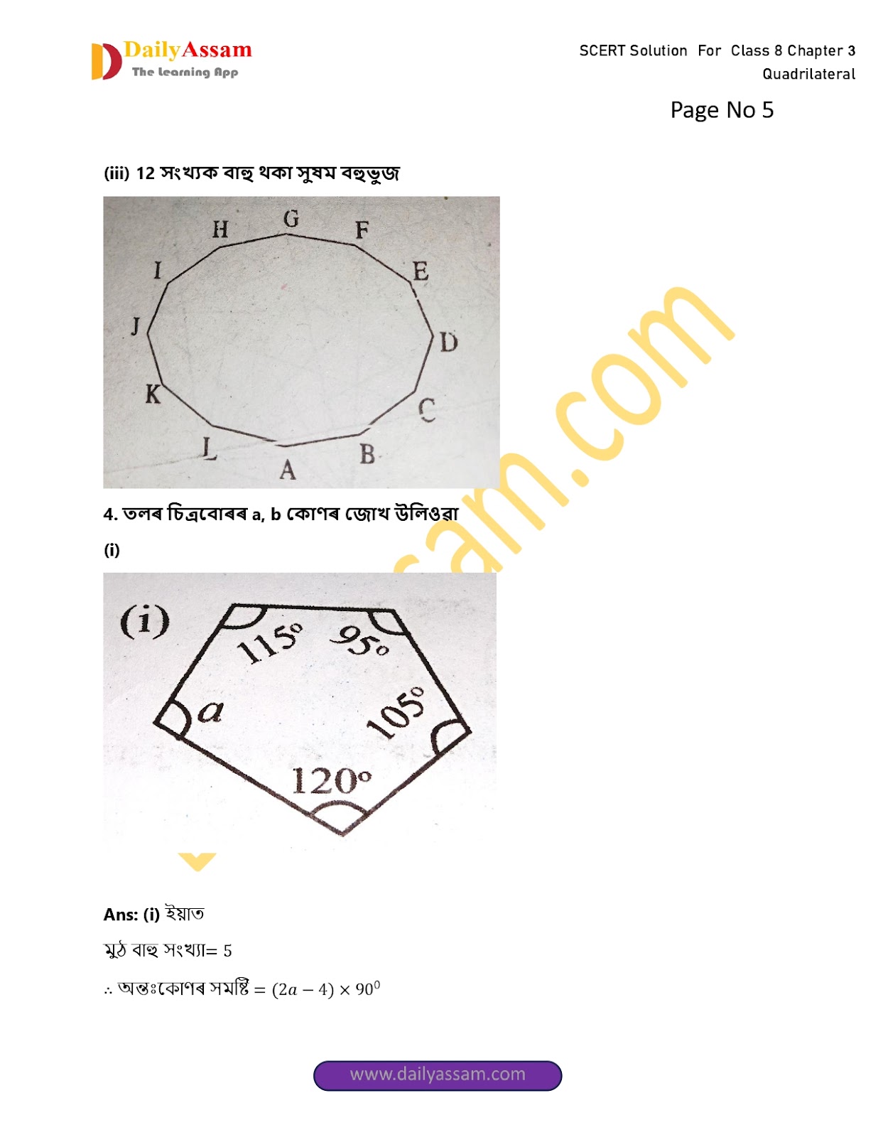 Solution: পঞ্চভুজ অন্ত:কোণৰ সমষ্টি