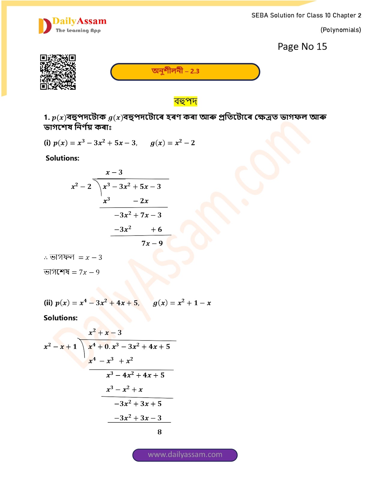 1. P(x) বহুপদটোক g(x) বহুপদটোৰে হৰণ কৰা আৰু পিৰতিটোৰে ক্ষেত্ৰত ভআগফল আৰু ভাগশেষ নিৰ্ণয় কৰা।