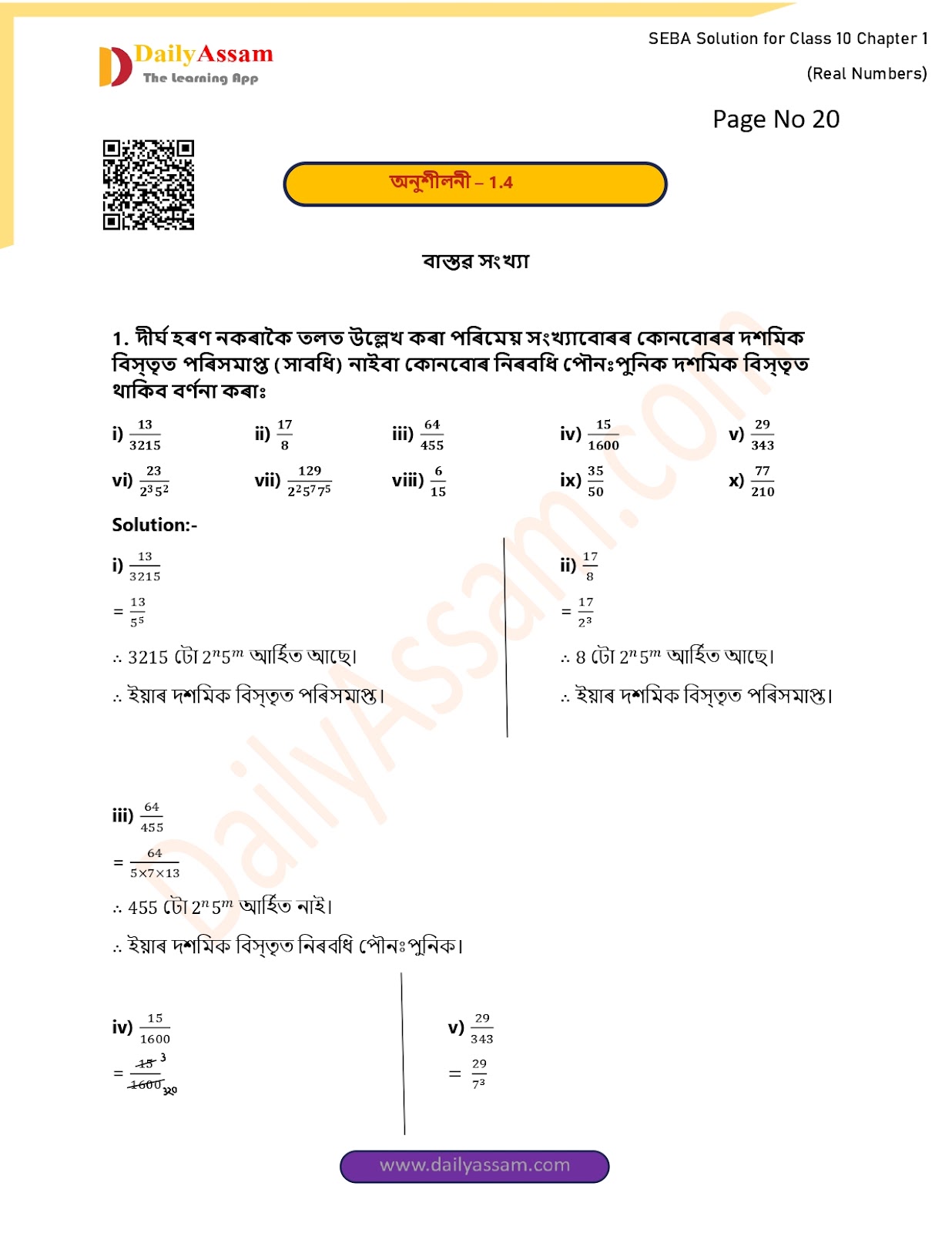 ∴ 455 ৰ দশমিক বিস্তৃতি পৌনঃপুনিক।