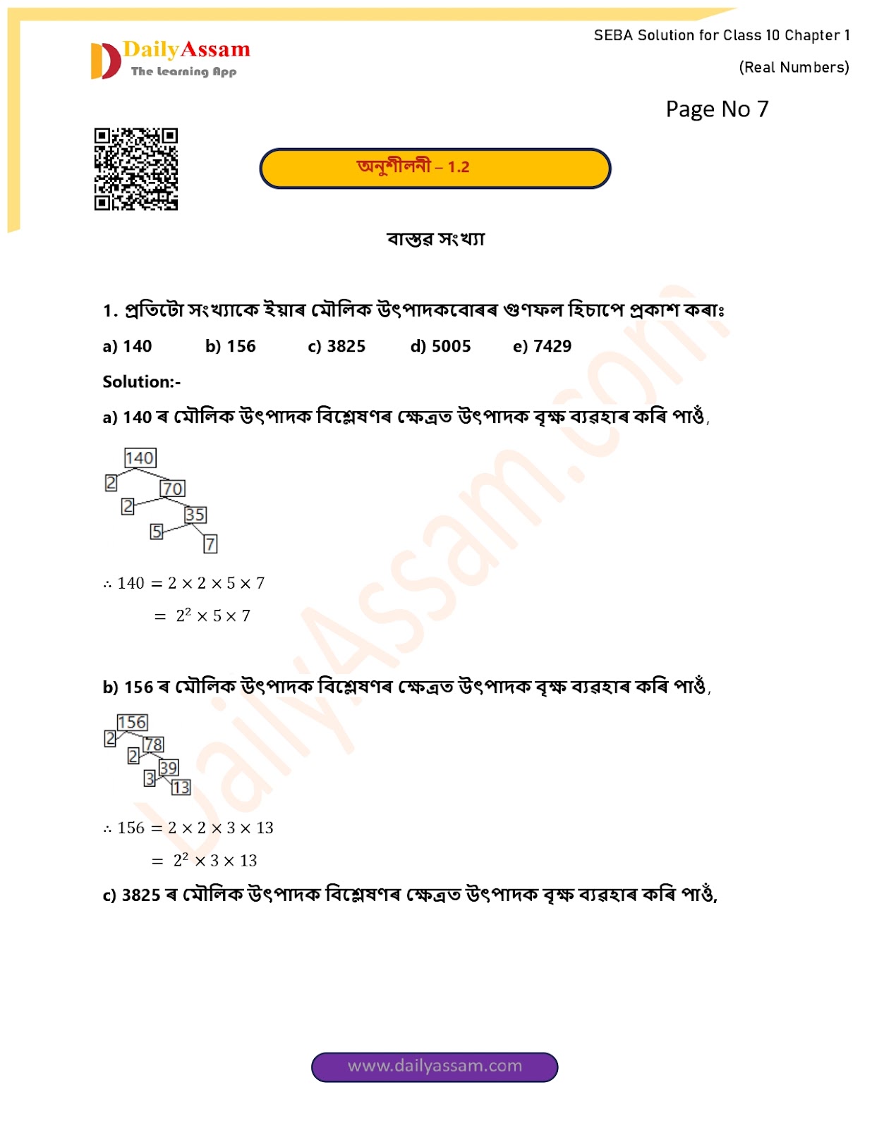 1. প্ৰতিটো সংখ্যাকে ইয়াৰ মৌলিক উৎপাদকবোৰৰ গুণফল হিচাপে প্ৰকাশ কৰাঃ