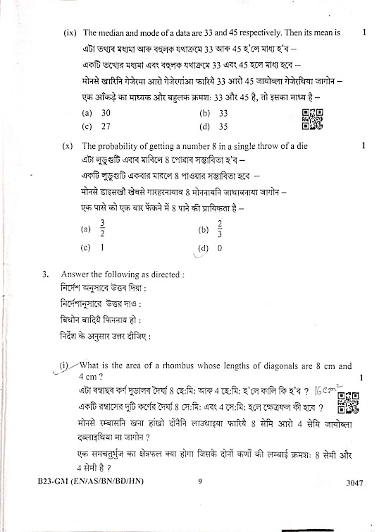 Class 10 SEBA Mathematics Question Paper 2023 | HSLC Mathematics Question Paper 2023