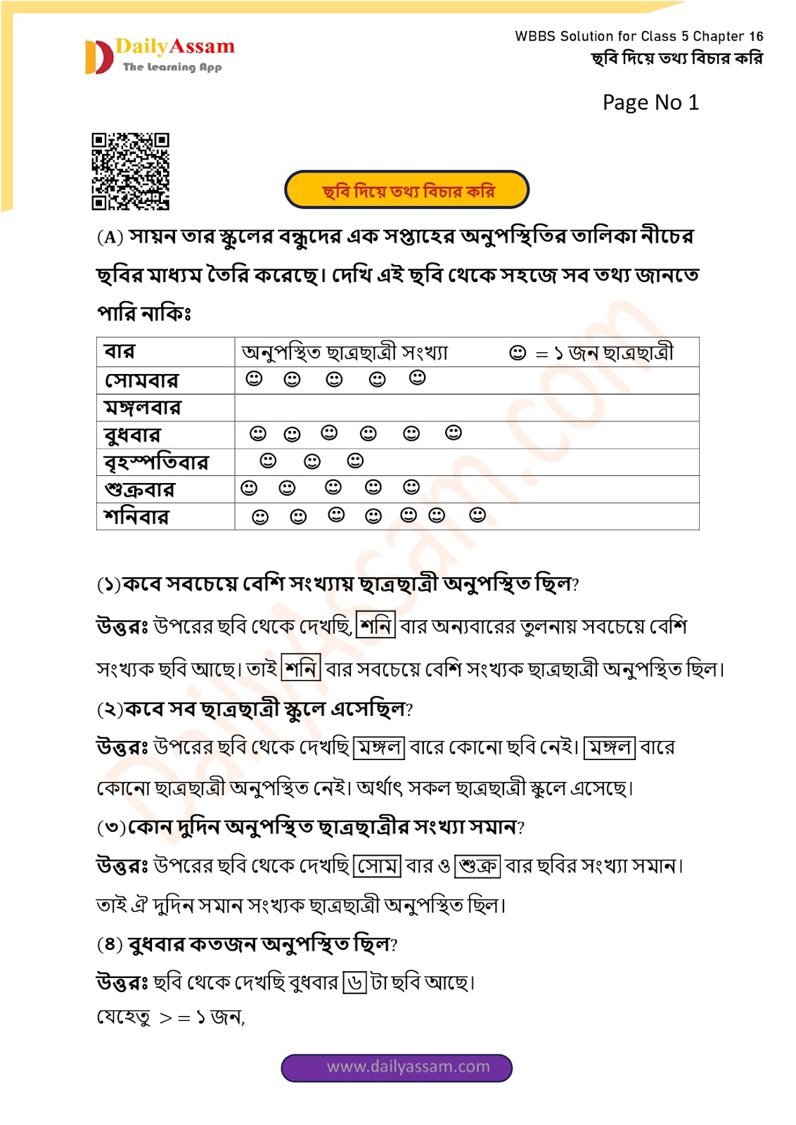 West Bengal Class 5 Math's Chapter 16 Solution 2026 | পশ্চিমবঙ্গ পঞ্চম শ্রেণি গণিত চ্যাপ্টার ১৬ সমাধান | WBBSE Board Class 5 Math's Chapter 16 Solution Bengali Medium | ছবি দিয়ে তথ্য বিচার করি |
