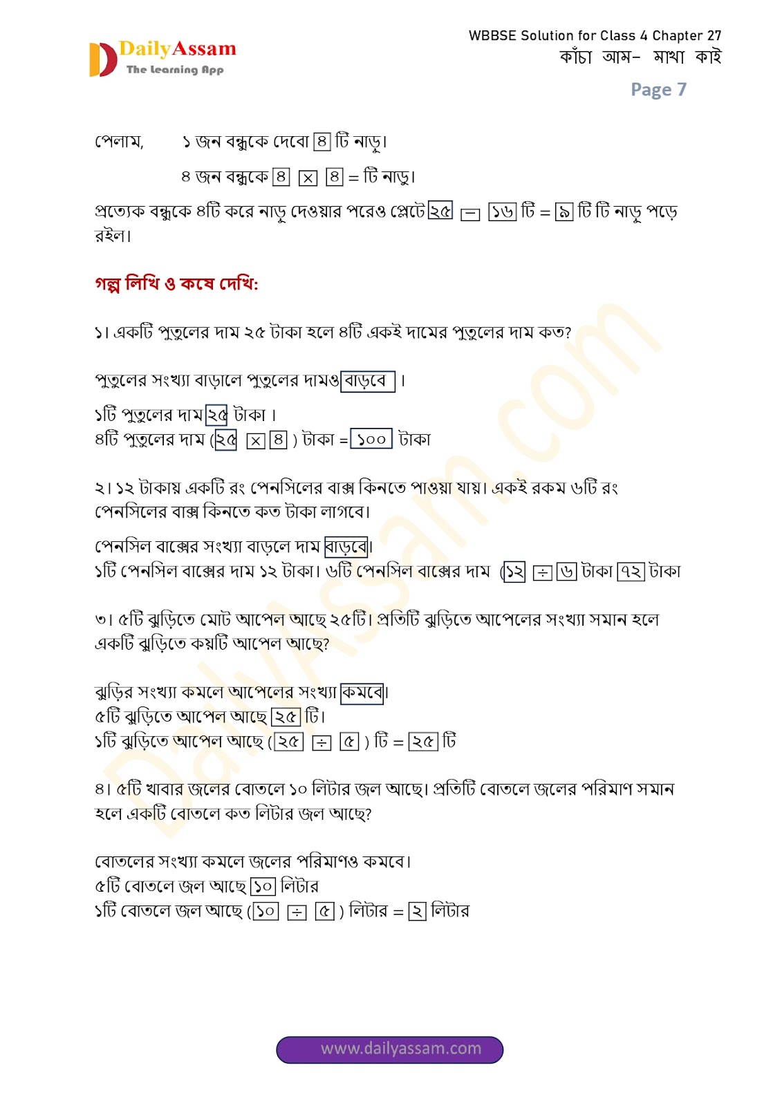 West Bengal Class 4 Maths Chapter 27 Solution 2025 | পশ্চিমবঙ্গ ৪র্থ শ্ৰেণির গণিত চ্যাপ্টার ২৭ সমাধান | WBBSE Class 4 Ganit Prabha Books Chapter 27 Solution | কাঁচা আম মাখা খাই |
