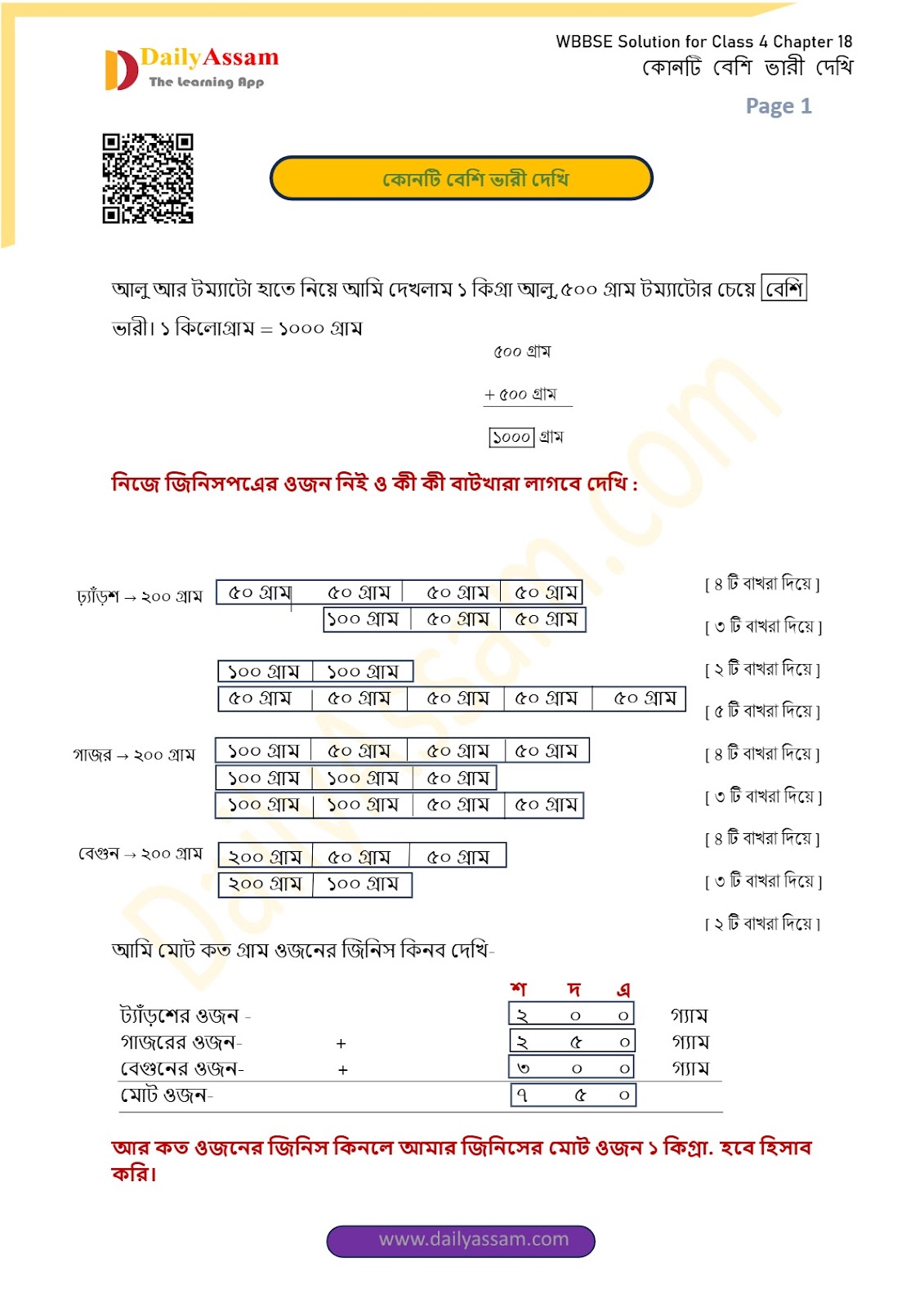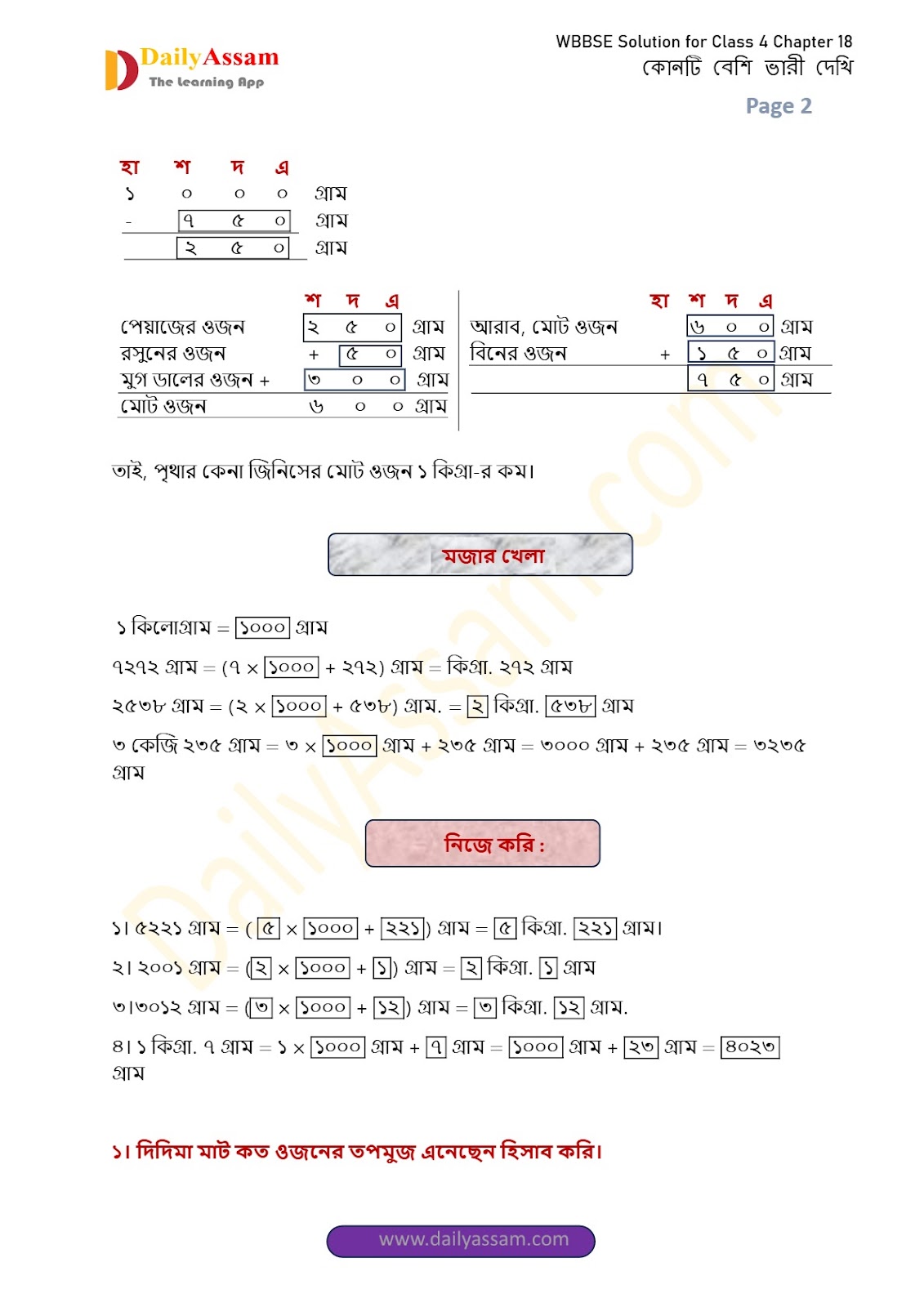 West Bengal Class 4 Maths Chapter 18 Solution 2025 | পশ্চিমবঙ্গ ৪র্থ শ্ৰেণির গণিত চ্যাপ্টার ১৮ সমাধান | WBBSE Class 4 Ganit Prabha Books Chapter 18 Solution | কোনটি বেশি ভারী দেখি |