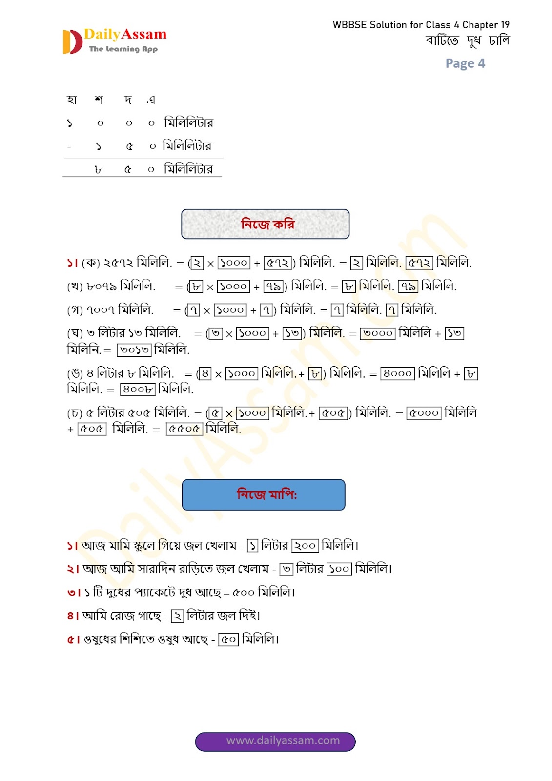 West Bengal Class 4 Maths Chapter 19 Solution 2025 | পশ্চিমবঙ্গ ৪র্থ শ্ৰেণির গণিত চ্যাপ্টার ১৯ সমাধান | WBBSE Class 4 Ganit Prabha Books Chapter 19 Solution | বাটিতে দুধ ঢালি |