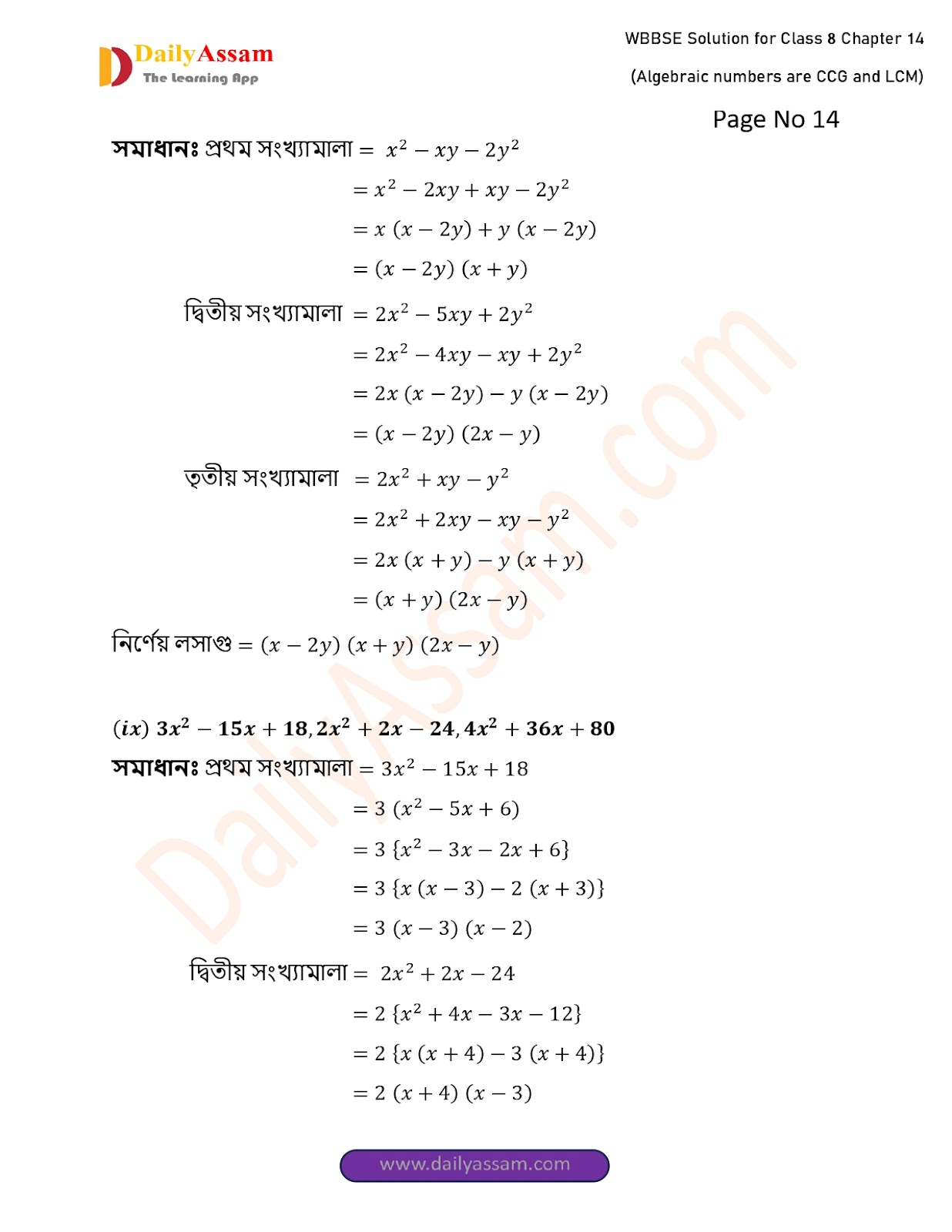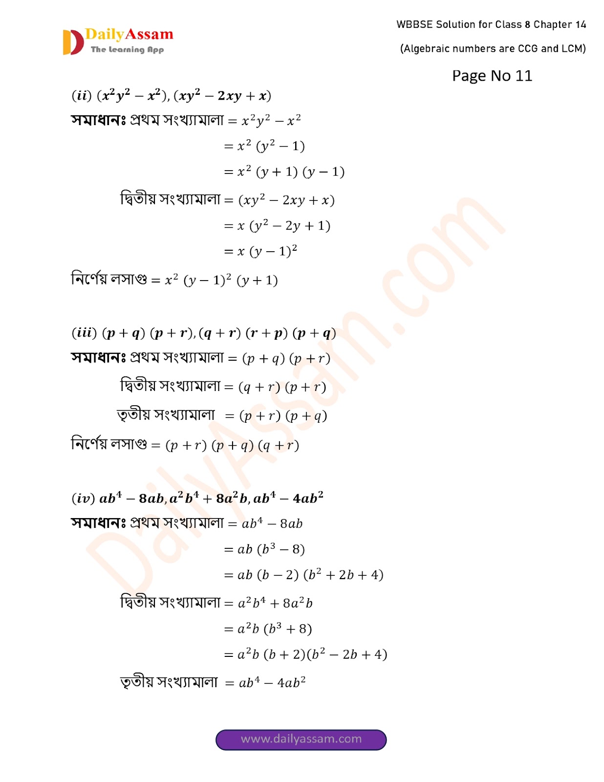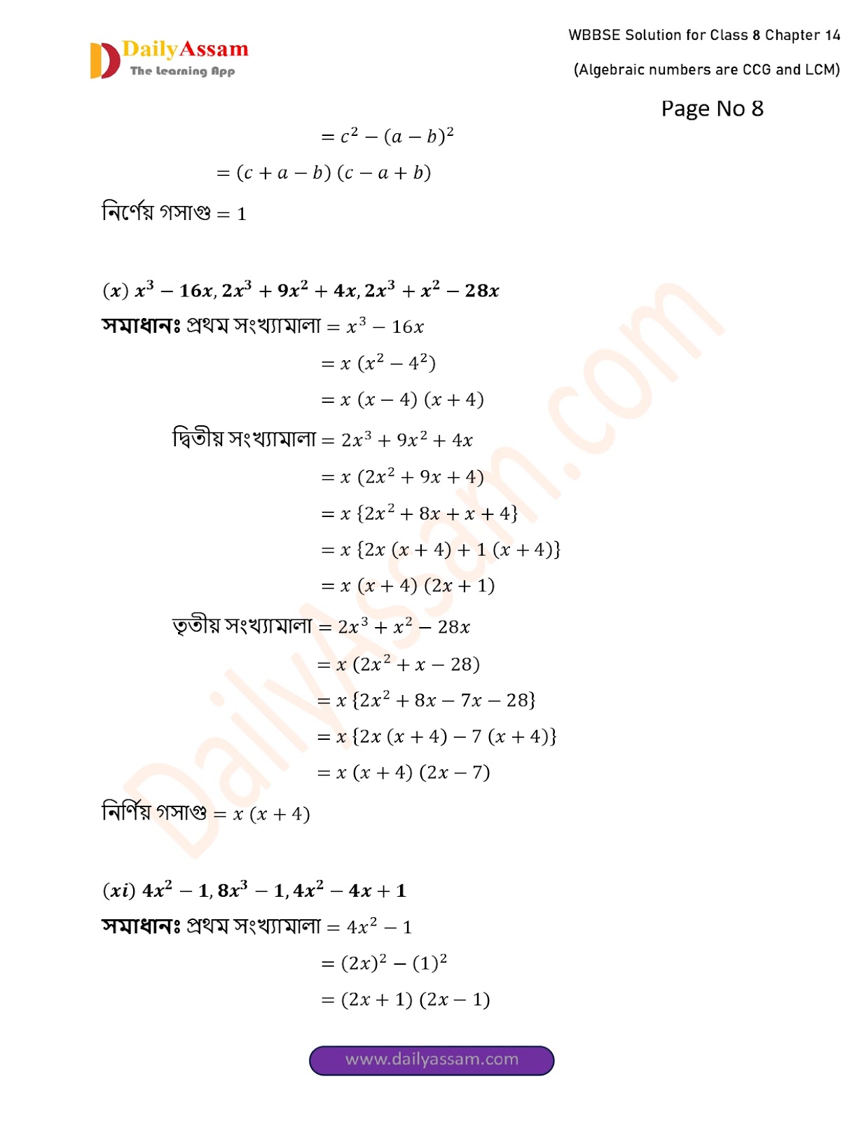 West Bengal Class 8 Math's Chapter 14 Solution 2025 | পশ্চিমবঙ্গ অষ্টম শ্ৰেণির গণিত চ্যাপ্টার ১৪ সমাধান | WBBSE Class 8 Math's Chapter 14 Solution | বীজগাণিতিক সংখ্যামালার গ.সা.গু ও ল.সা.গু |