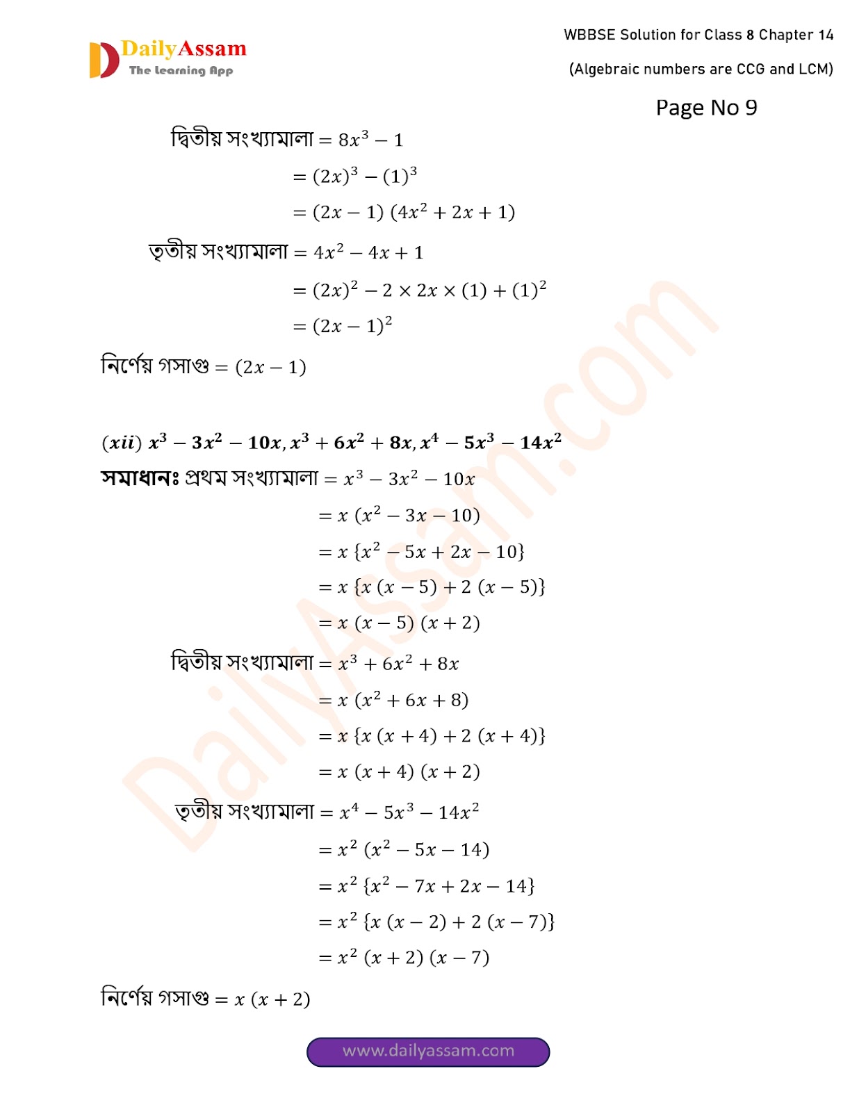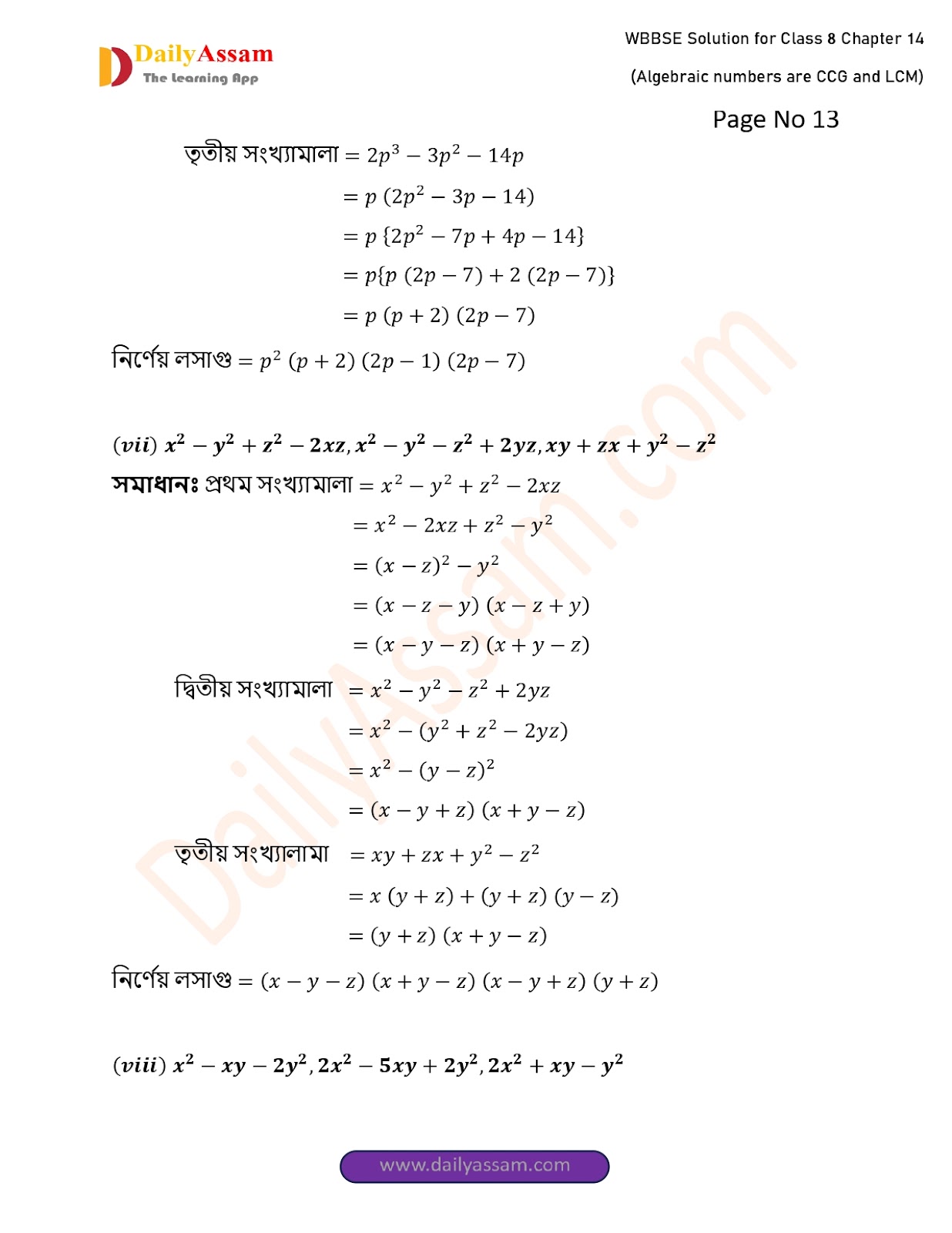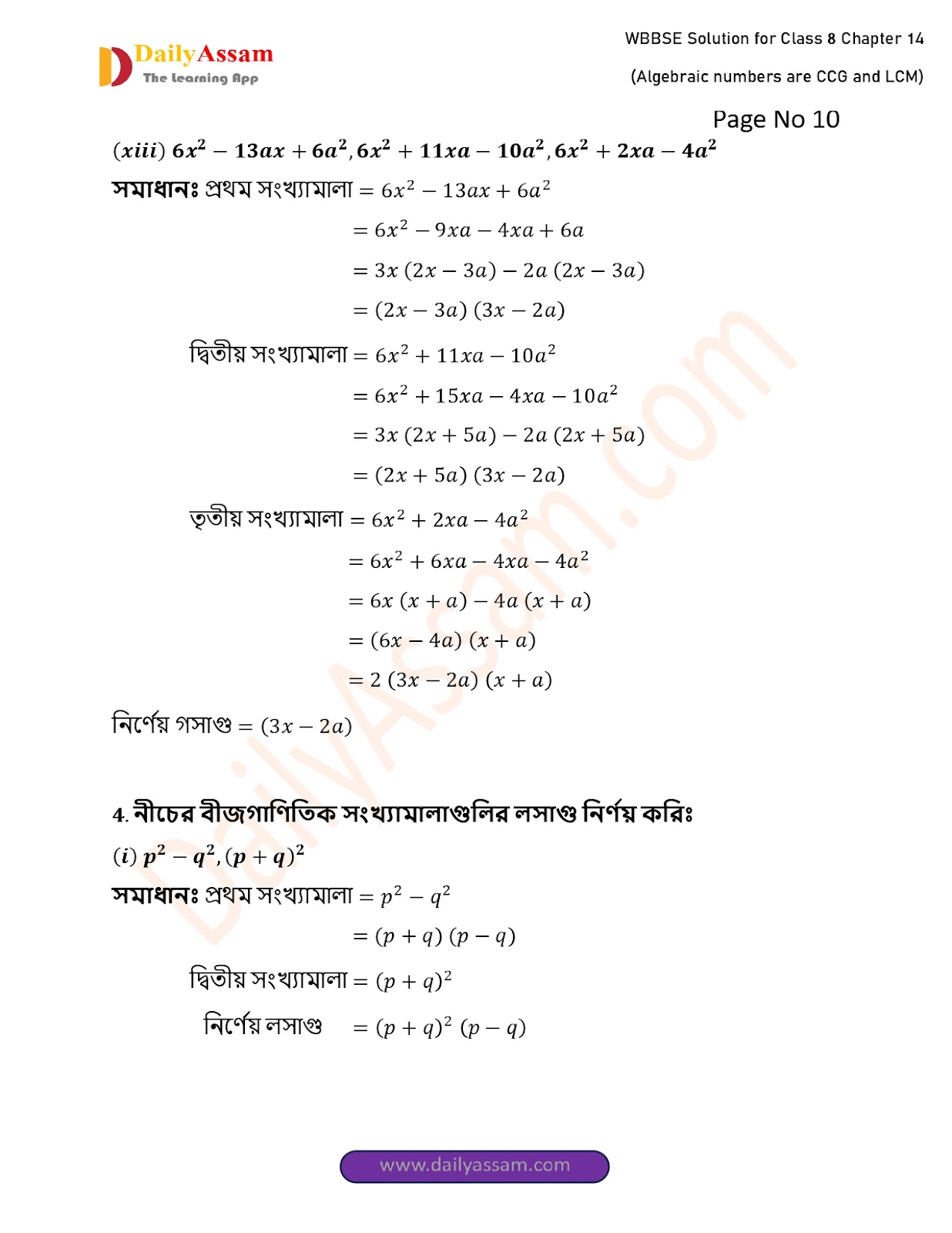West Bengal Class 8 Math's Chapter 14 Solution 2025 | পশ্চিমবঙ্গ অষ্টম শ্ৰেণির গণিত চ্যাপ্টার ১৪ সমাধান | WBBSE Class 8 Math's Chapter 14 Solution | বীজগাণিতিক সংখ্যামালার গ.সা.গু ও ল.সা.গু |