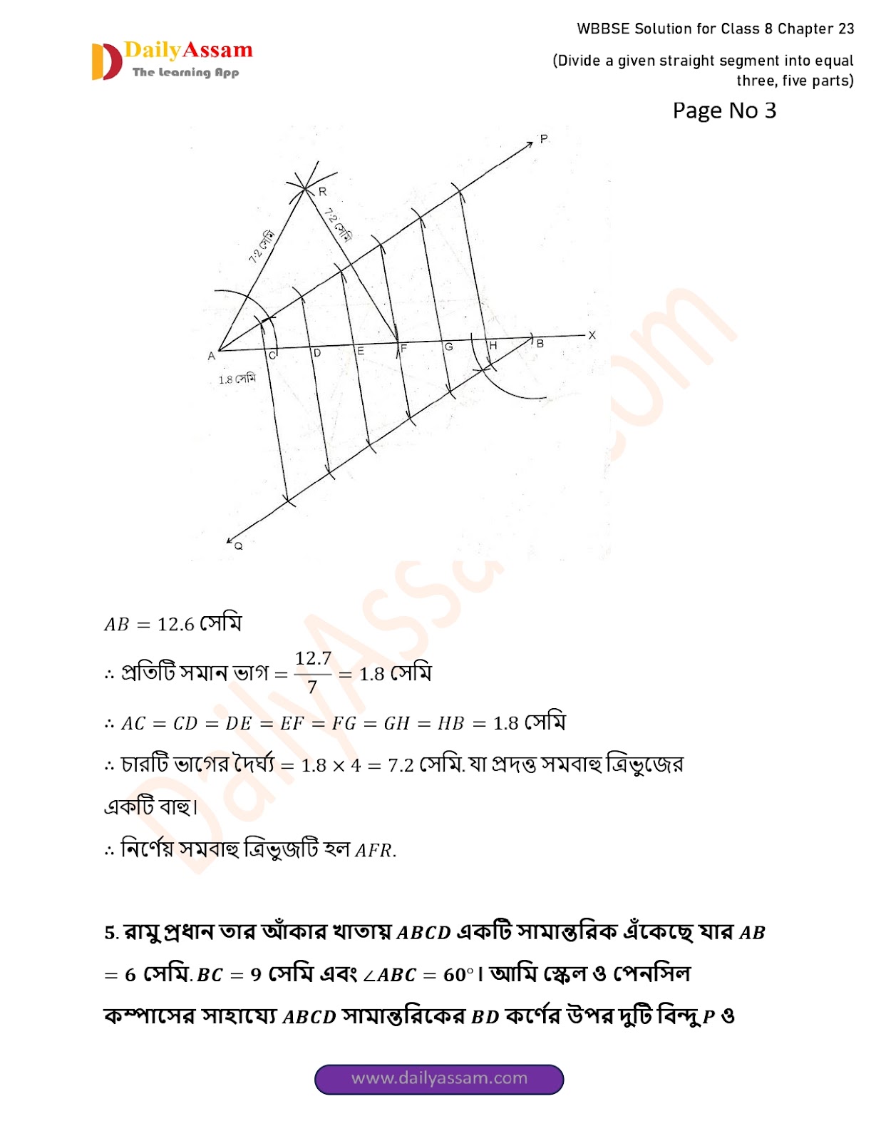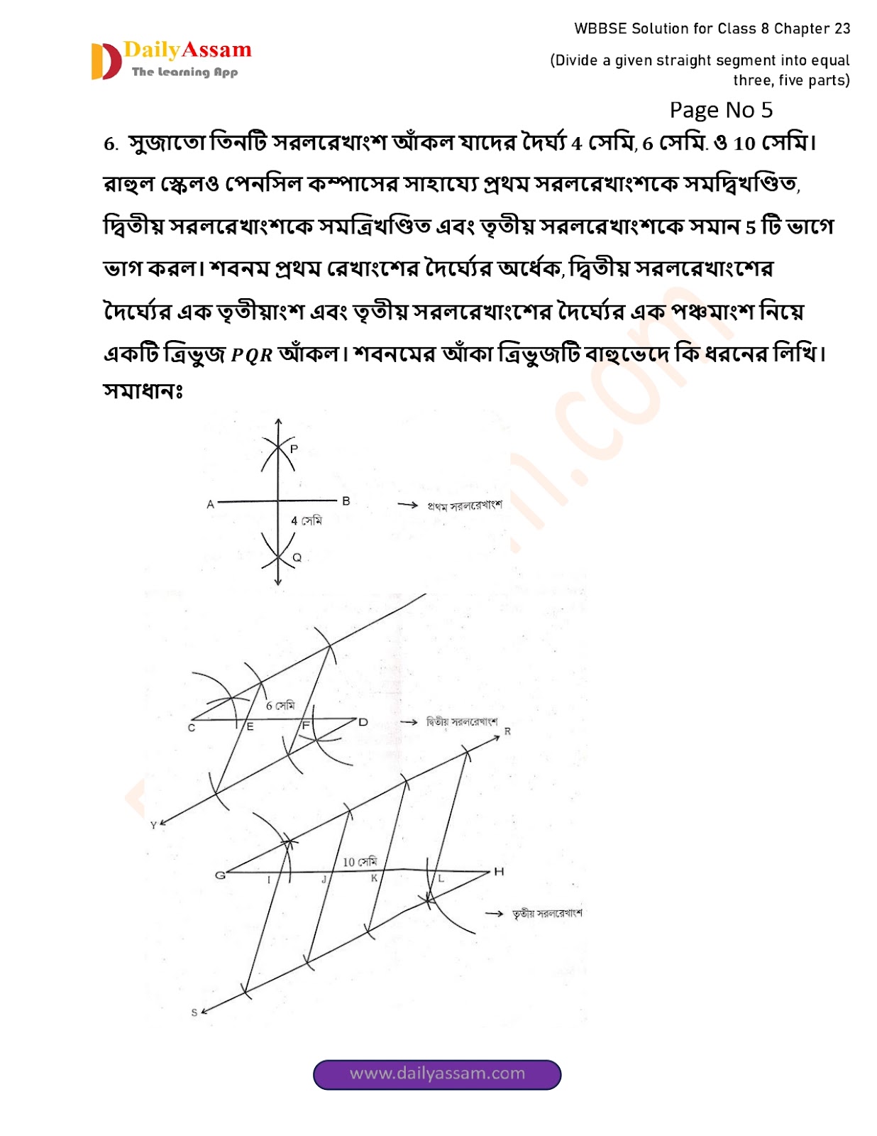 West Bengal Class 8 Math's Chapter 23 Solution 2025 | পশ্চিমবঙ্গ অষ্টম শ্ৰেণির গণিত চ্যাপ্টার ২৩ সমাধান | WBBSE Class 8 Math's Chapter 23 Solution | প্রদত্ত সরলরেখাংশকে সমান তিনটি, পাঁচটি ভাগে বিভক্ত করা |