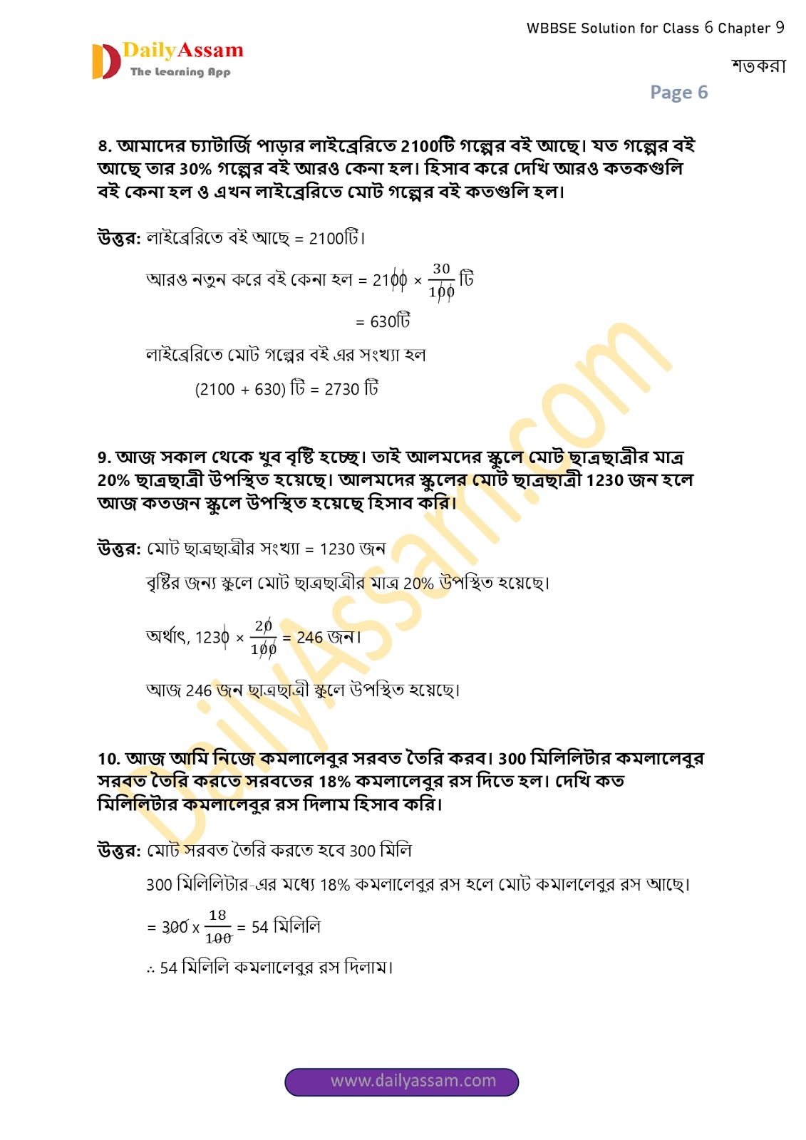 West Bengal Class 6 Math's Chapter 9 Solution 2025 | পশ্চিমবঙ্গ ষষ্ঠ শ্ৰেণির গণিত চ্যাপ্টার ৯ সমাধান | WBBSE Class 6 Math's Chapter 9 Solution | শতকরা | ষষ্ঠ শ্রেণির গণিত শতকরা অধ্যায় প্রশ্নোত্তর |