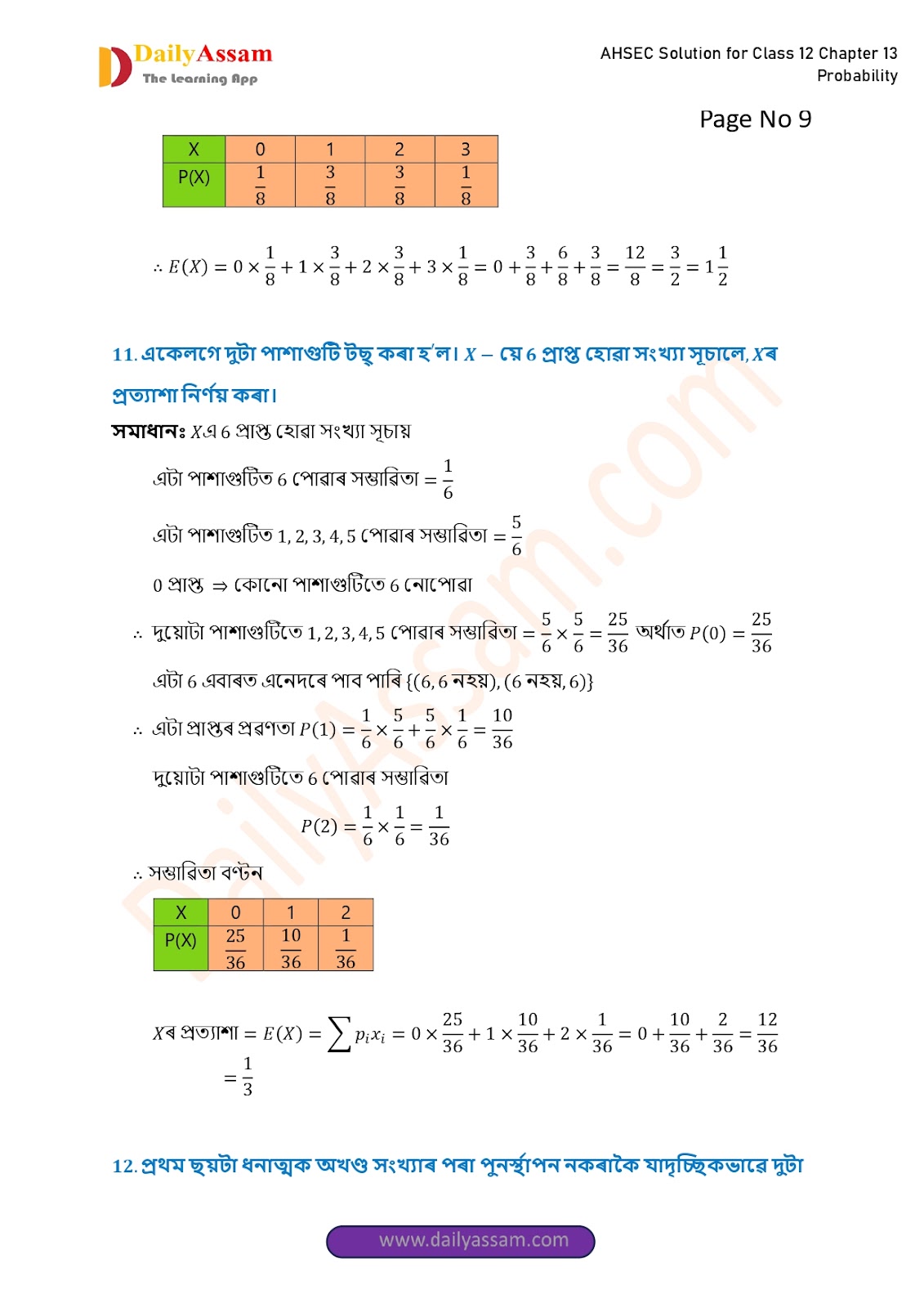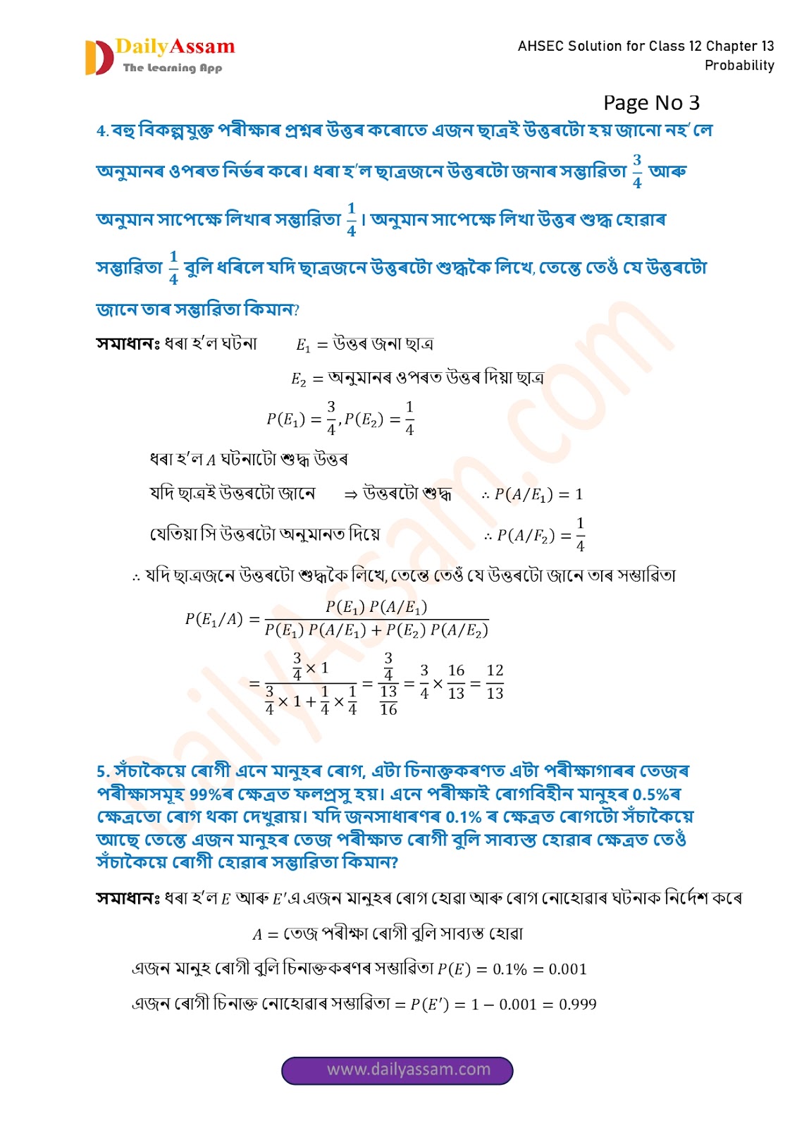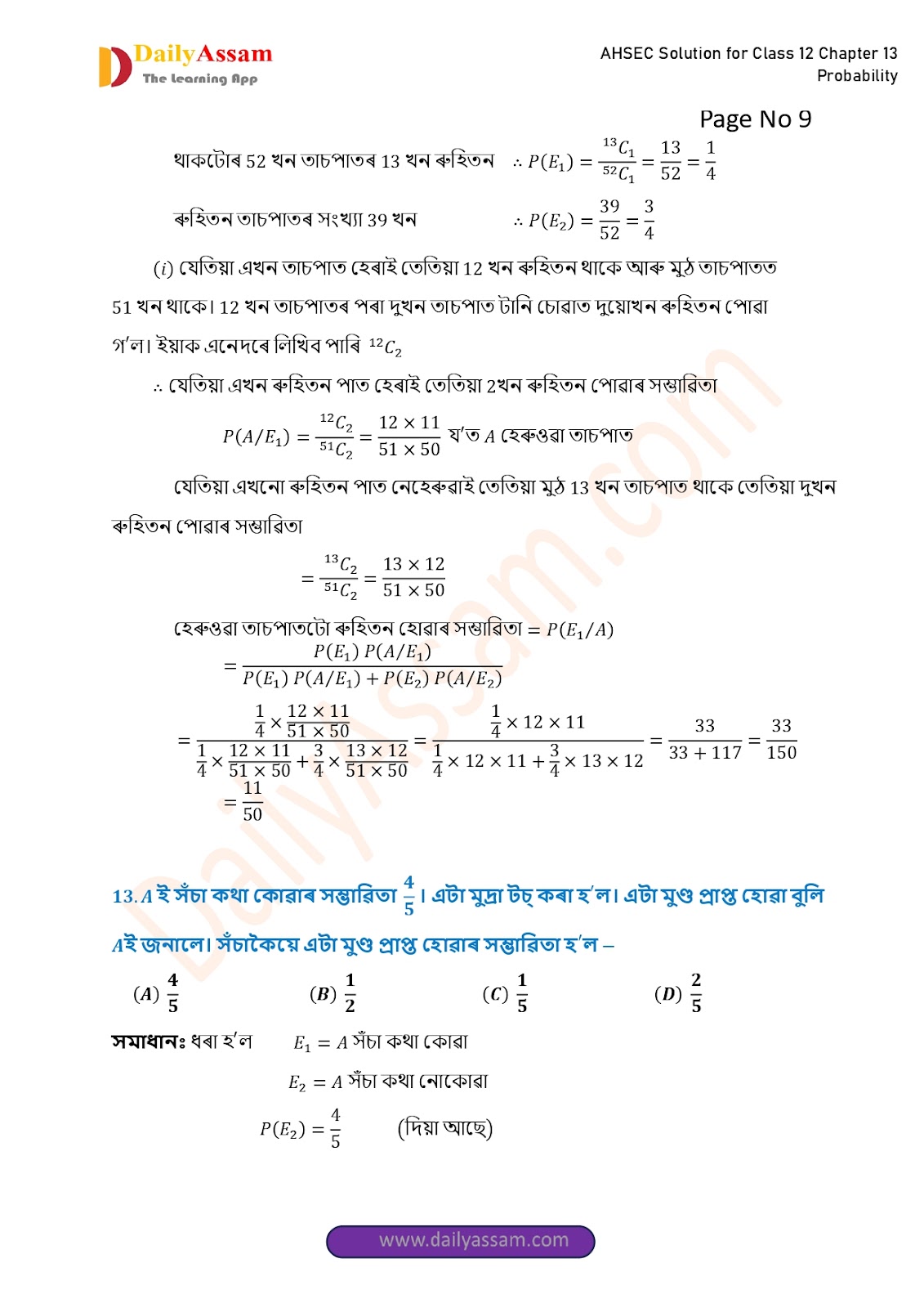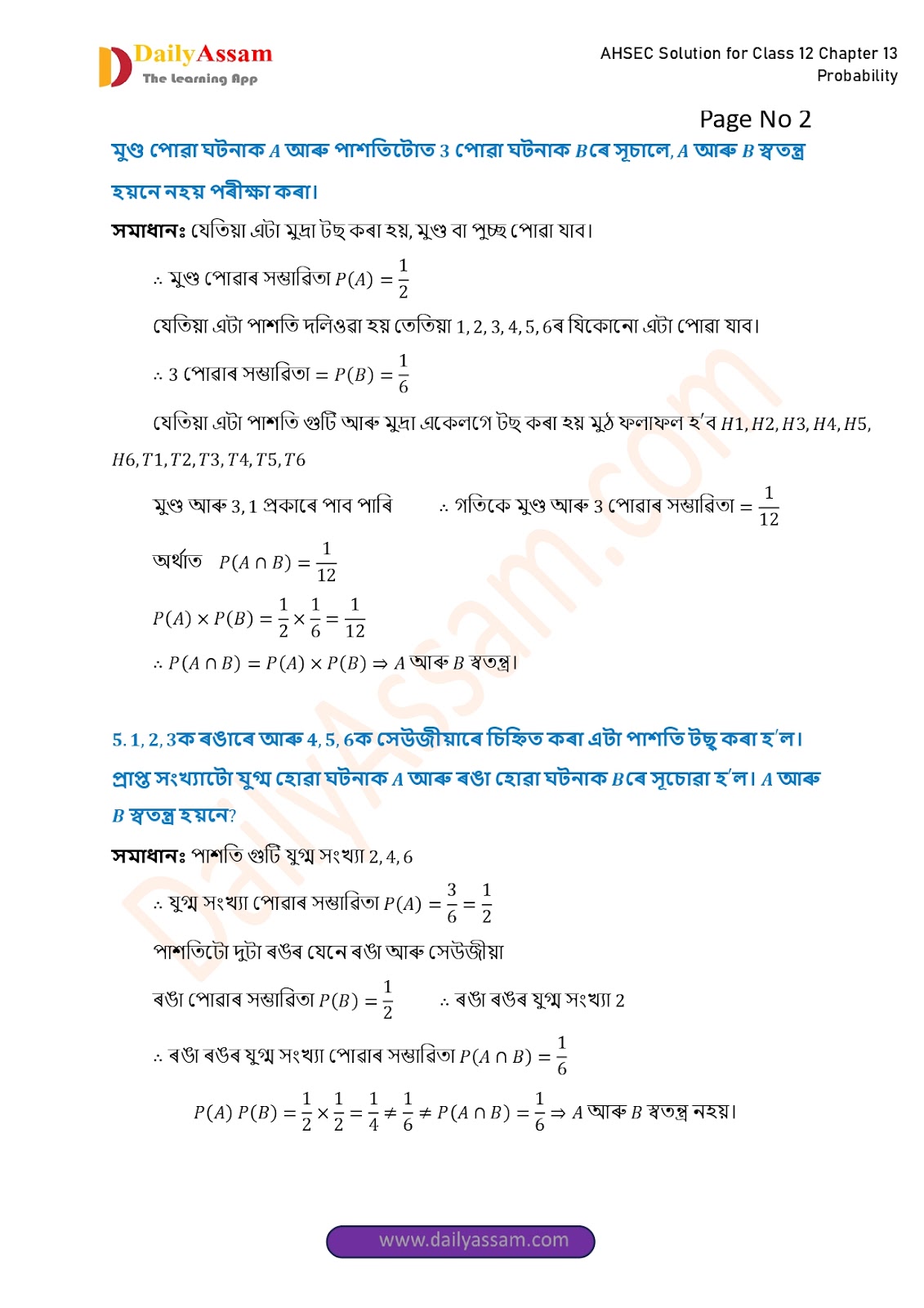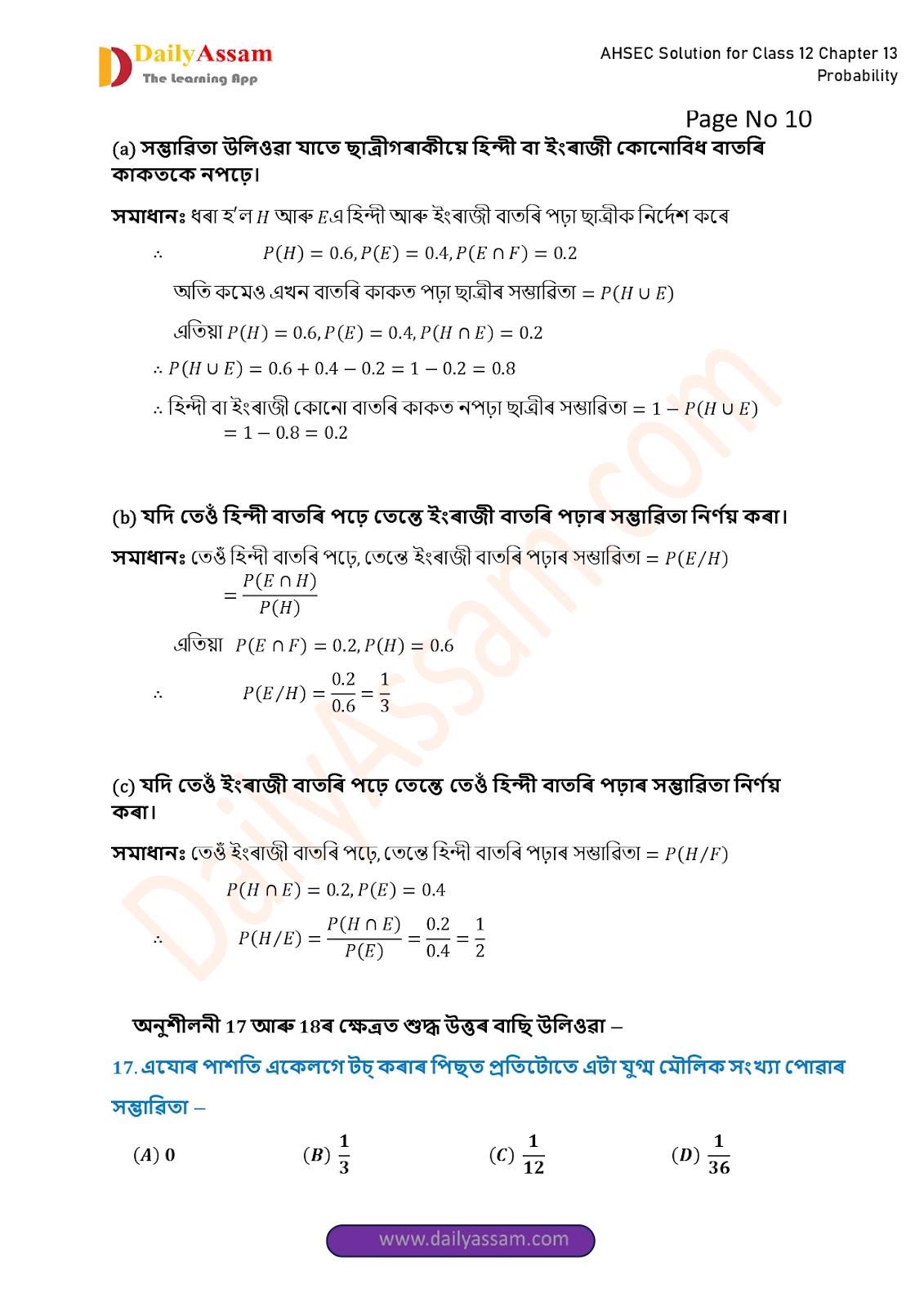 AHSEC Class 12 Mathematics Part 2 Chapter 13 Solution | Assam Board Class 12 Mathematics Part 2 Chapter 13 সম্ভাৱিতা (probability) Answer | 2025 - 2026