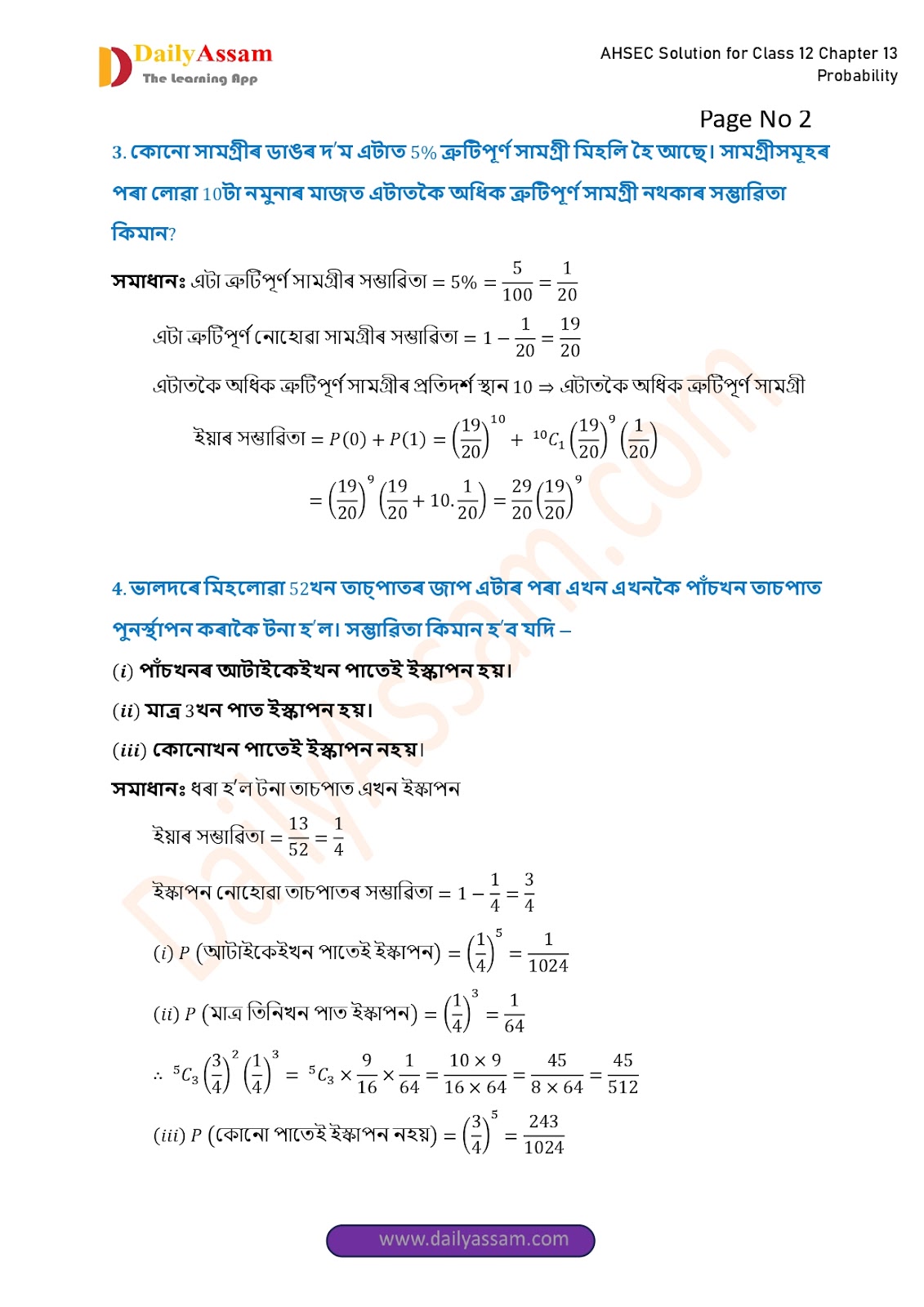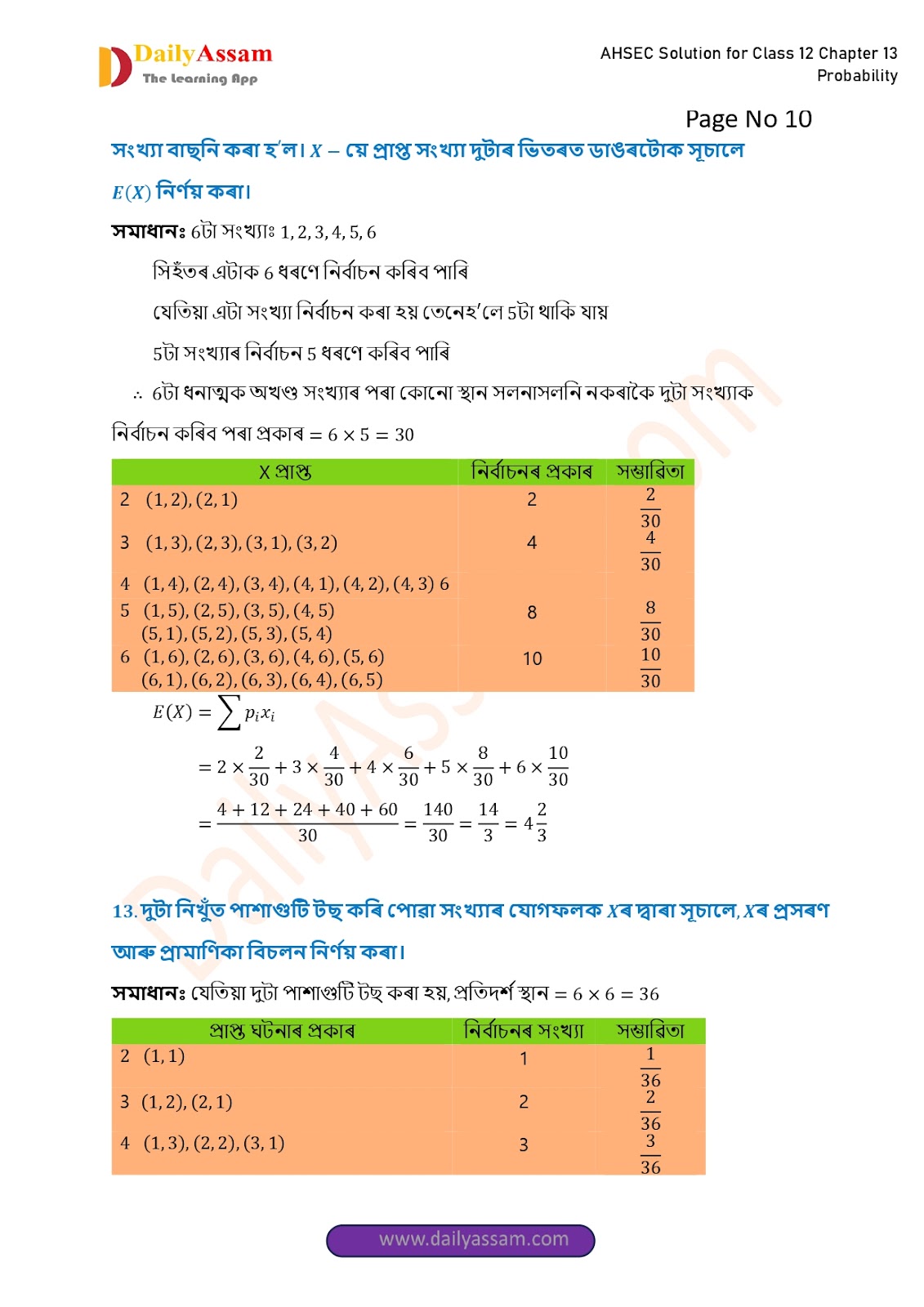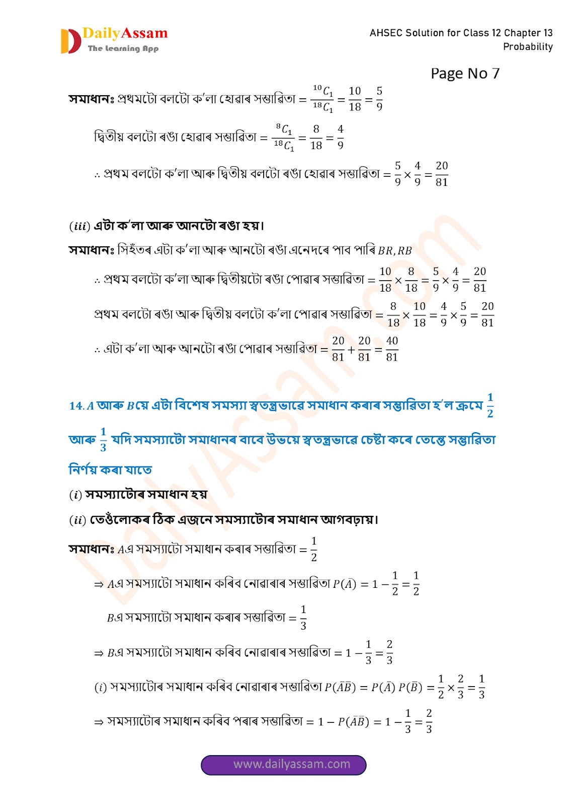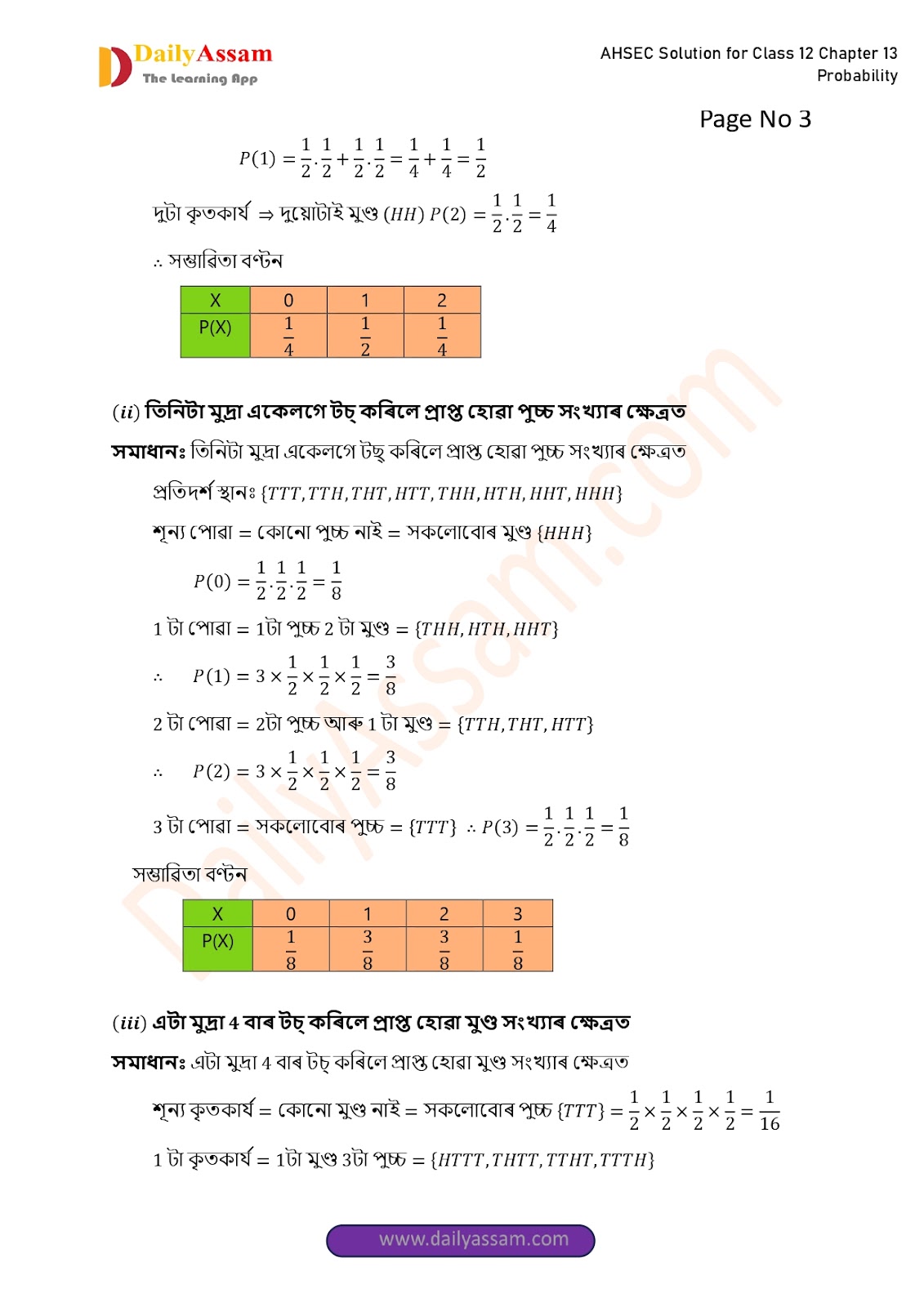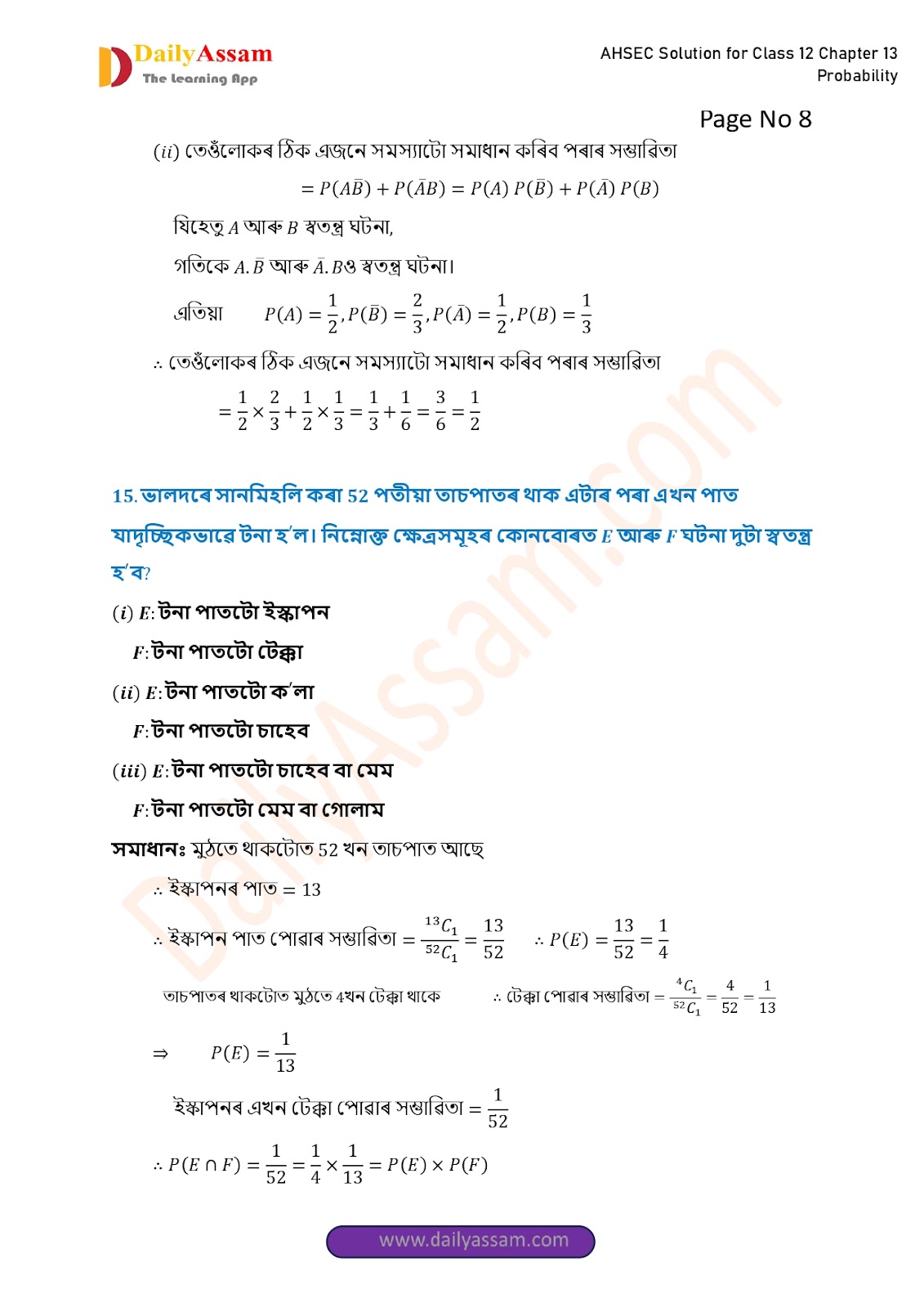 AHSEC Class 12 Mathematics Part 2 Chapter 13 Solution | Assam Board Class 12 Mathematics Part 2 Chapter 13 সম্ভাৱিতা (probability) Answer | 2025 - 2026