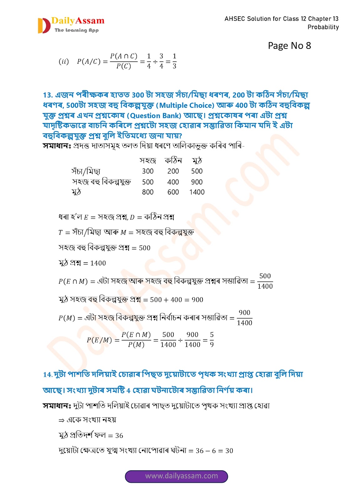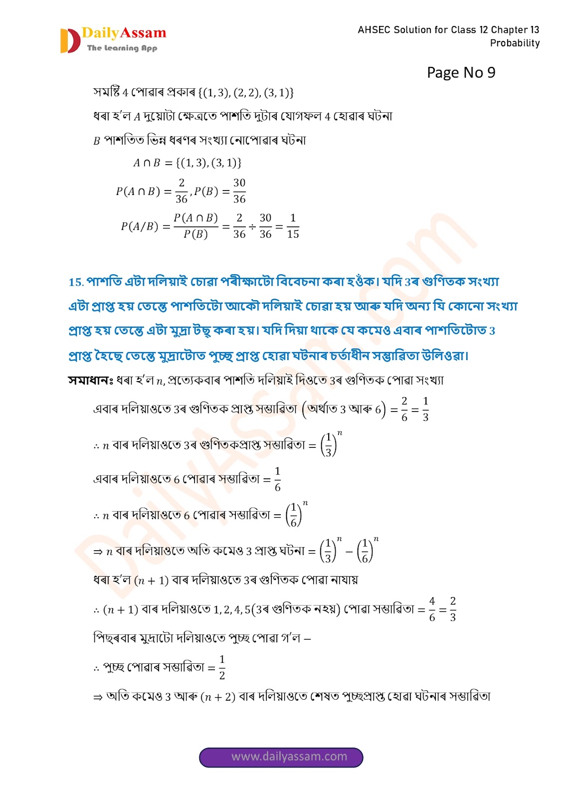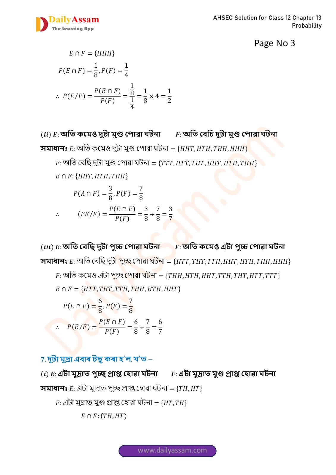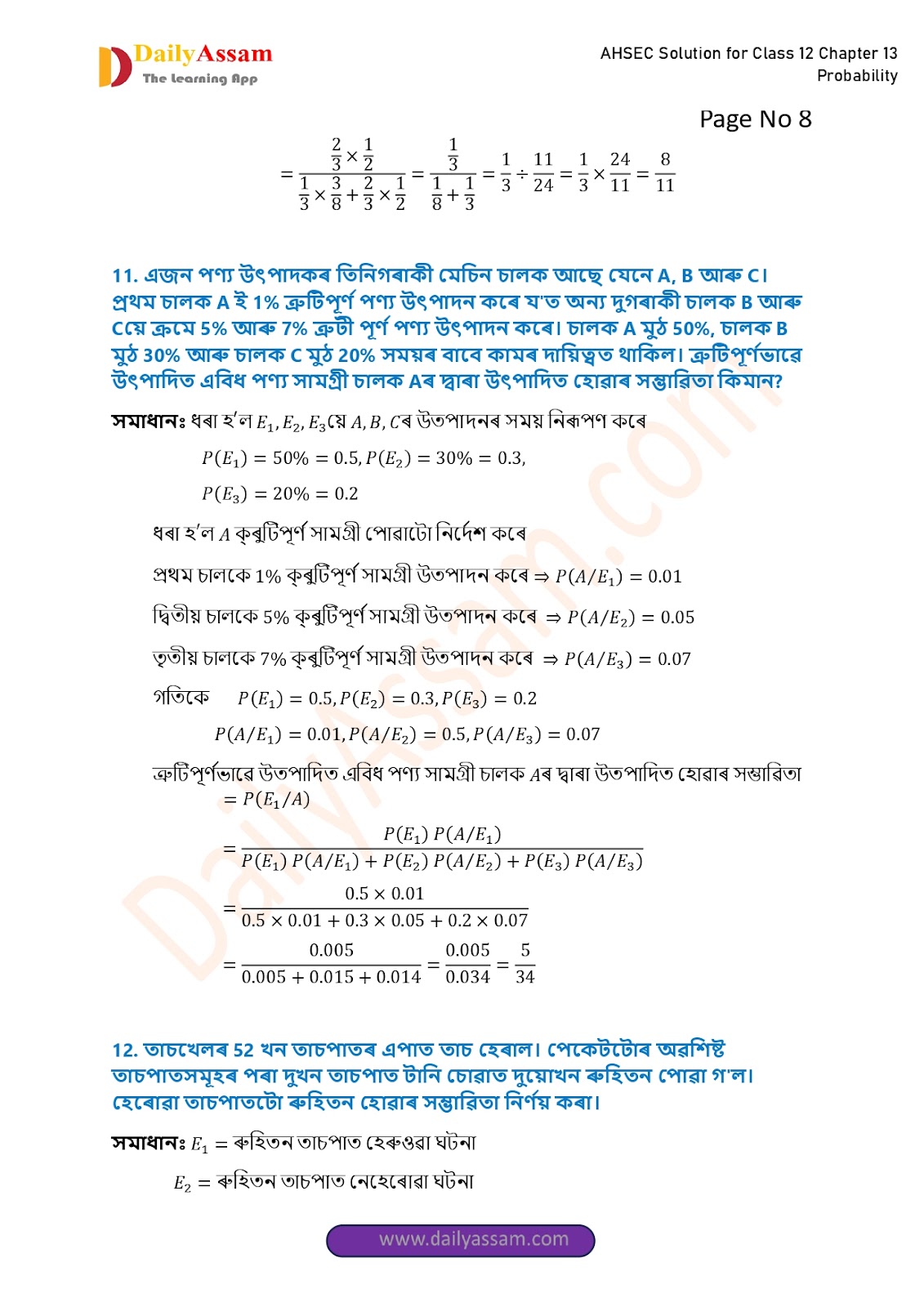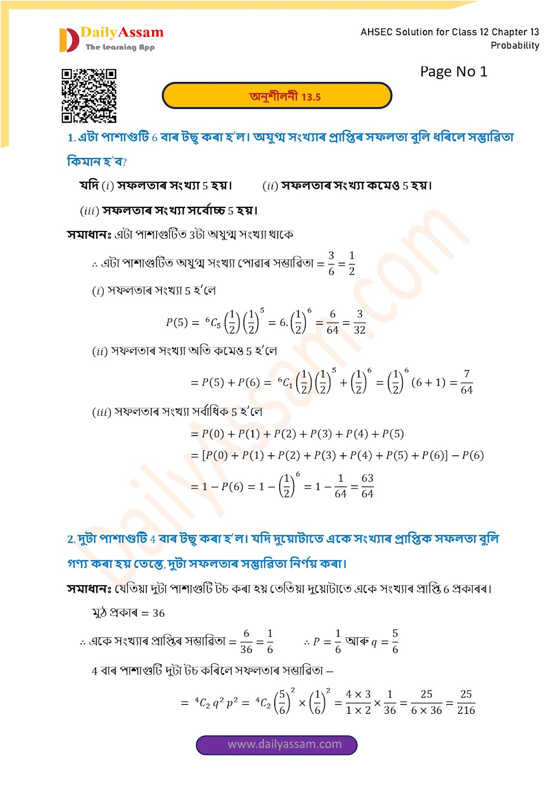 AHSEC Class 12 Mathematics Part 2 Chapter 13 Solution | Assam Board Class 12 Mathematics Part 2 Chapter 13 সম্ভাৱিতা (probability) Answer | 2025 - 2026