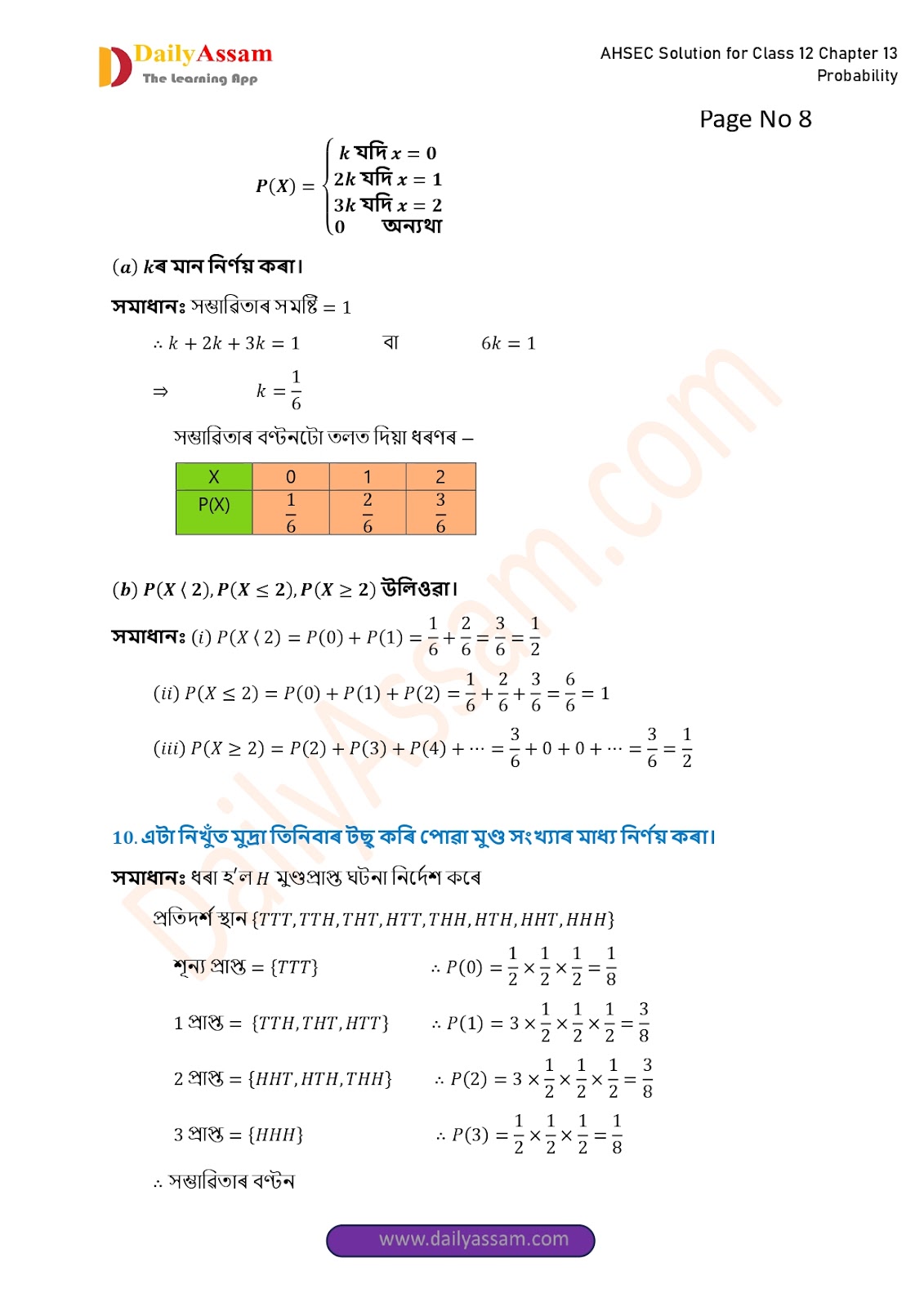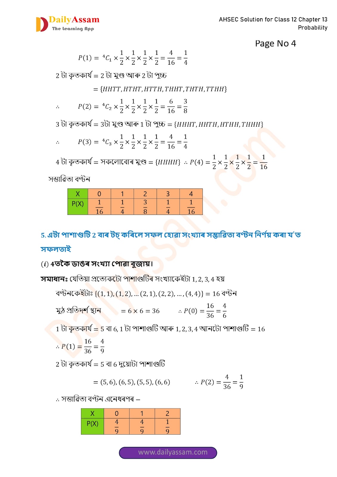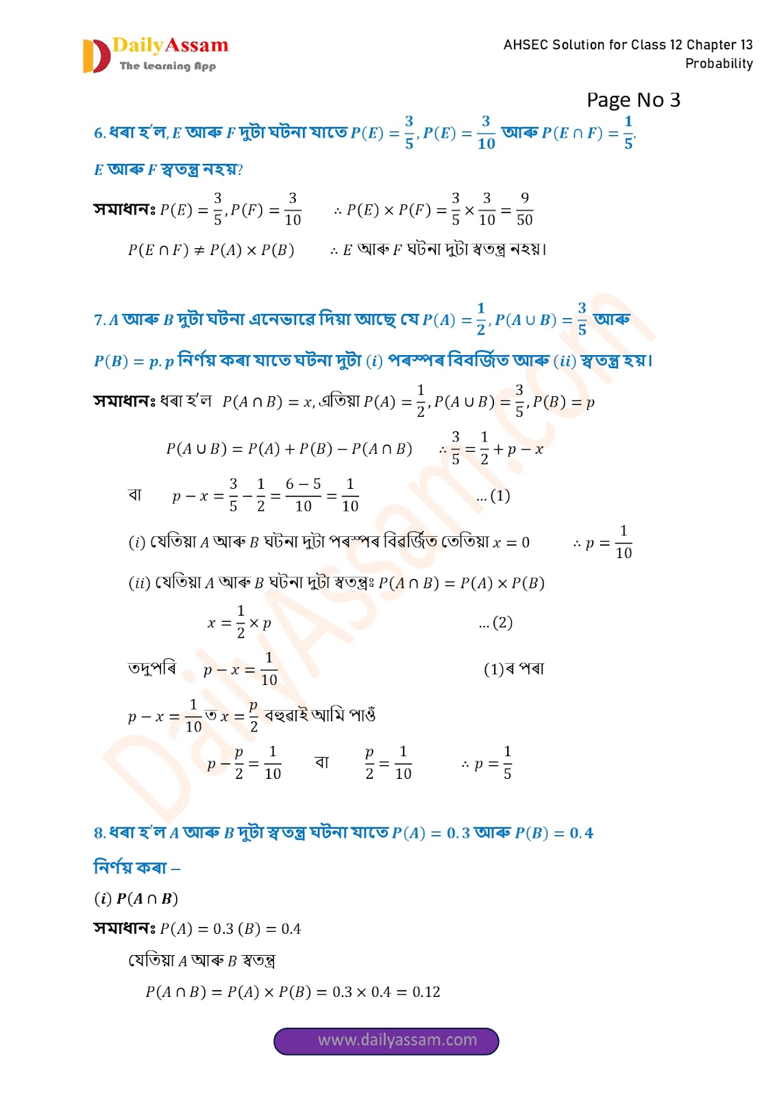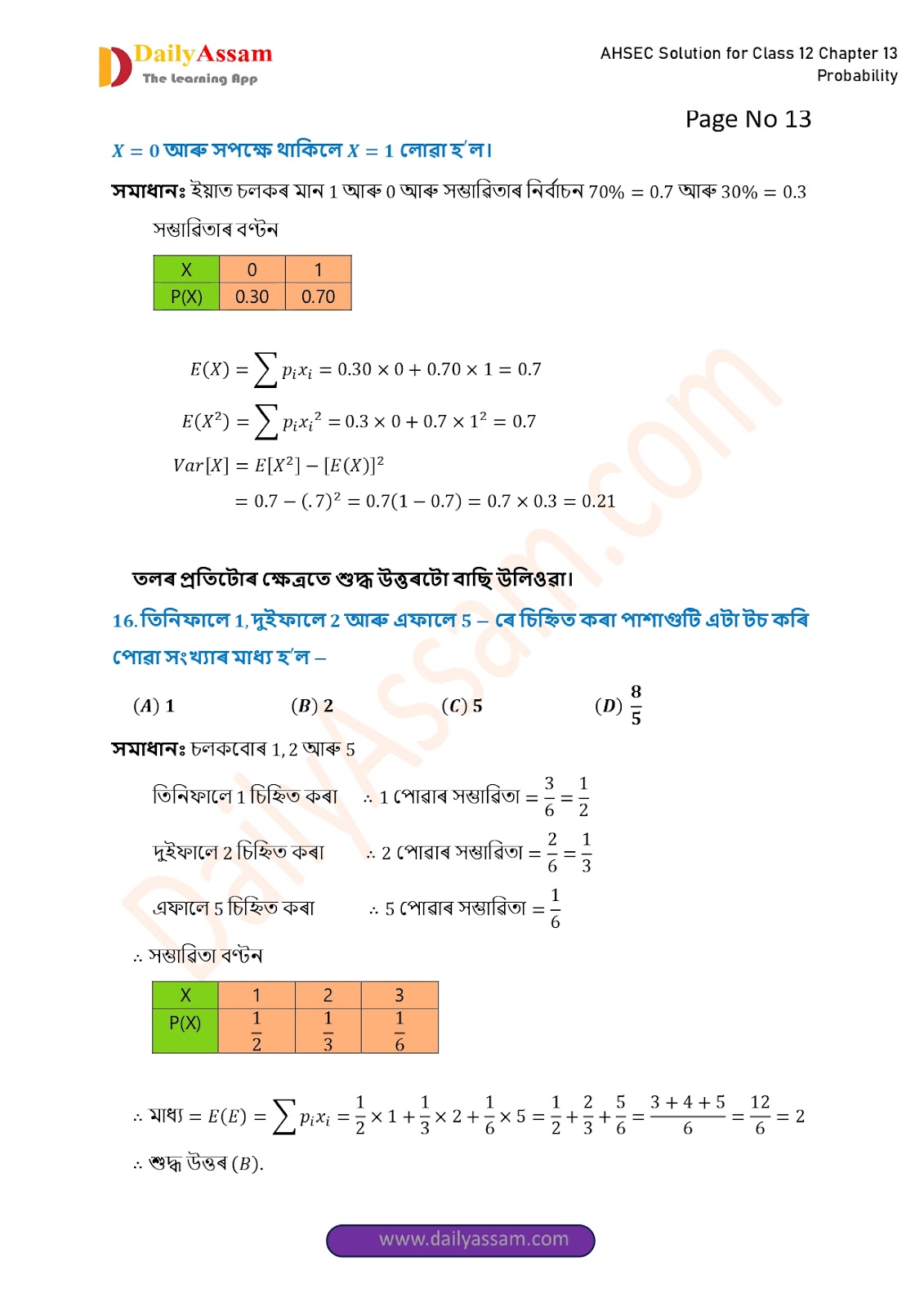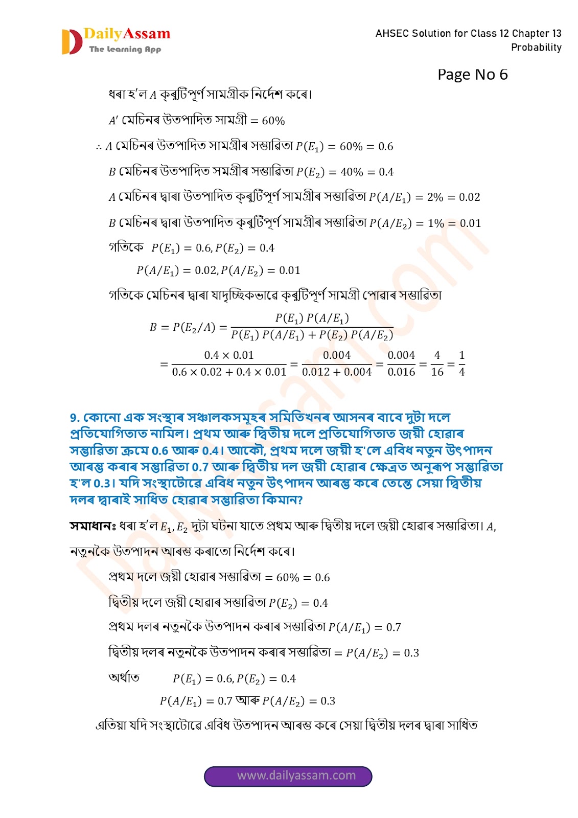 AHSEC Class 12 Mathematics Part 2 Chapter 13 Solution | Assam Board Class 12 Mathematics Part 2 Chapter 13 সম্ভাৱিতা (probability) Answer | 2025 - 2026