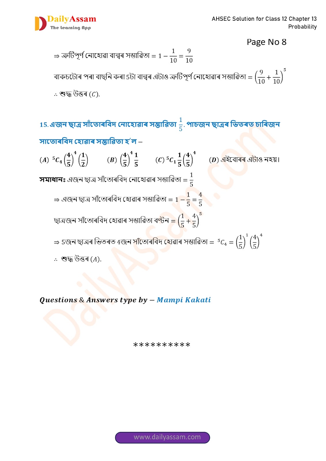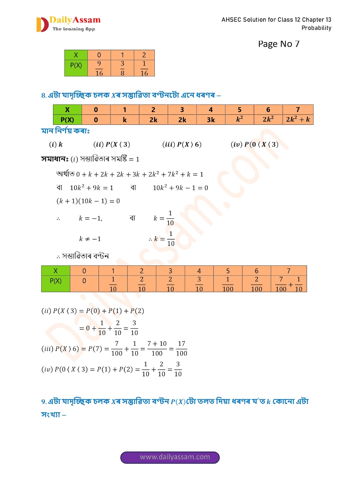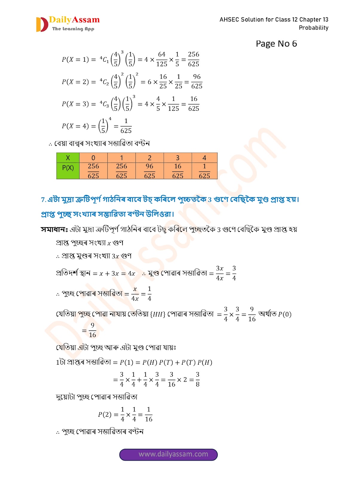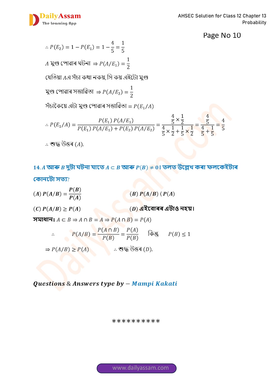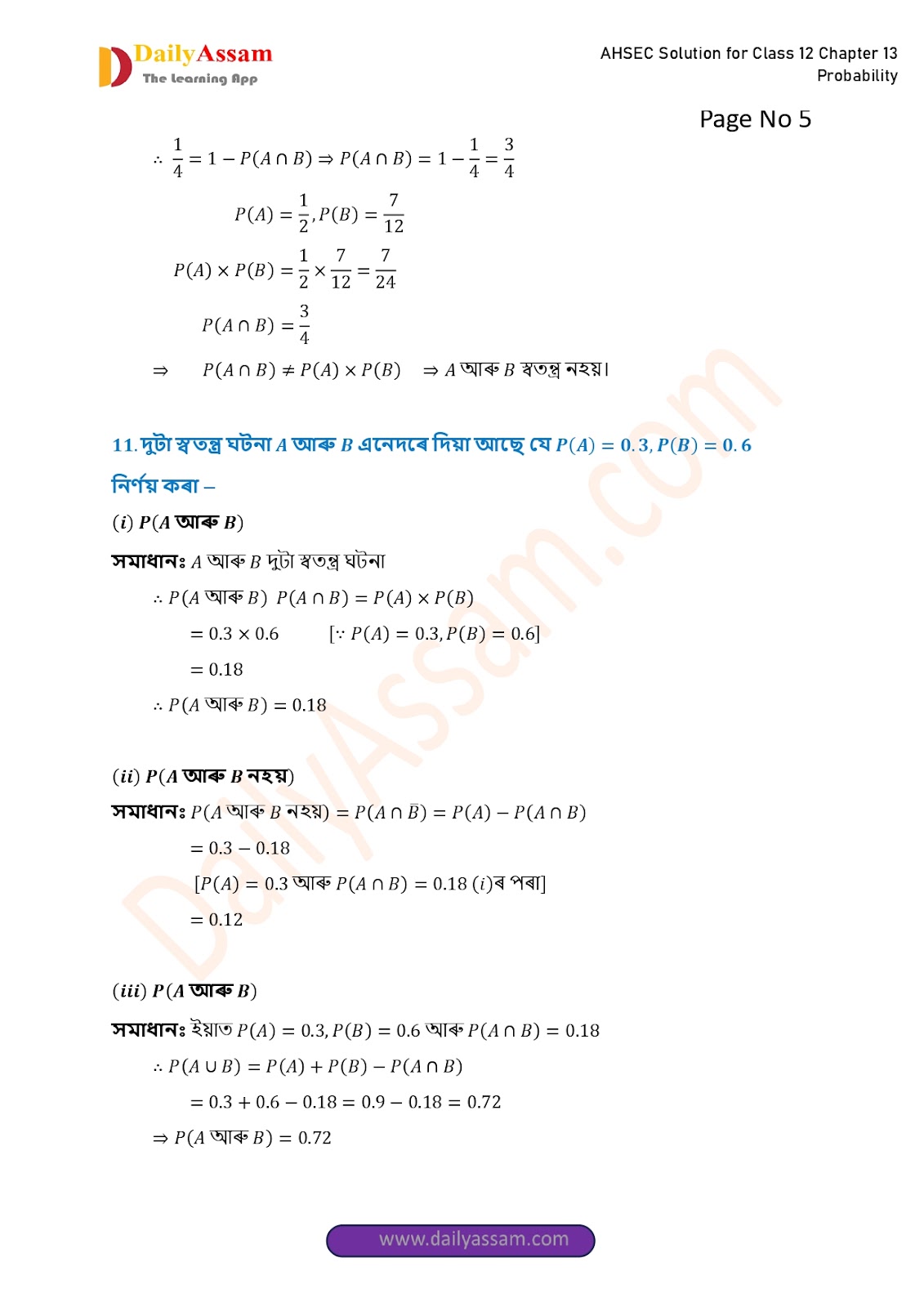 AHSEC Class 12 Mathematics Part 2 Chapter 13 Solution | Assam Board Class 12 Mathematics Part 2 Chapter 13 সম্ভাৱিতা (probability) Answer | 2025 - 2026