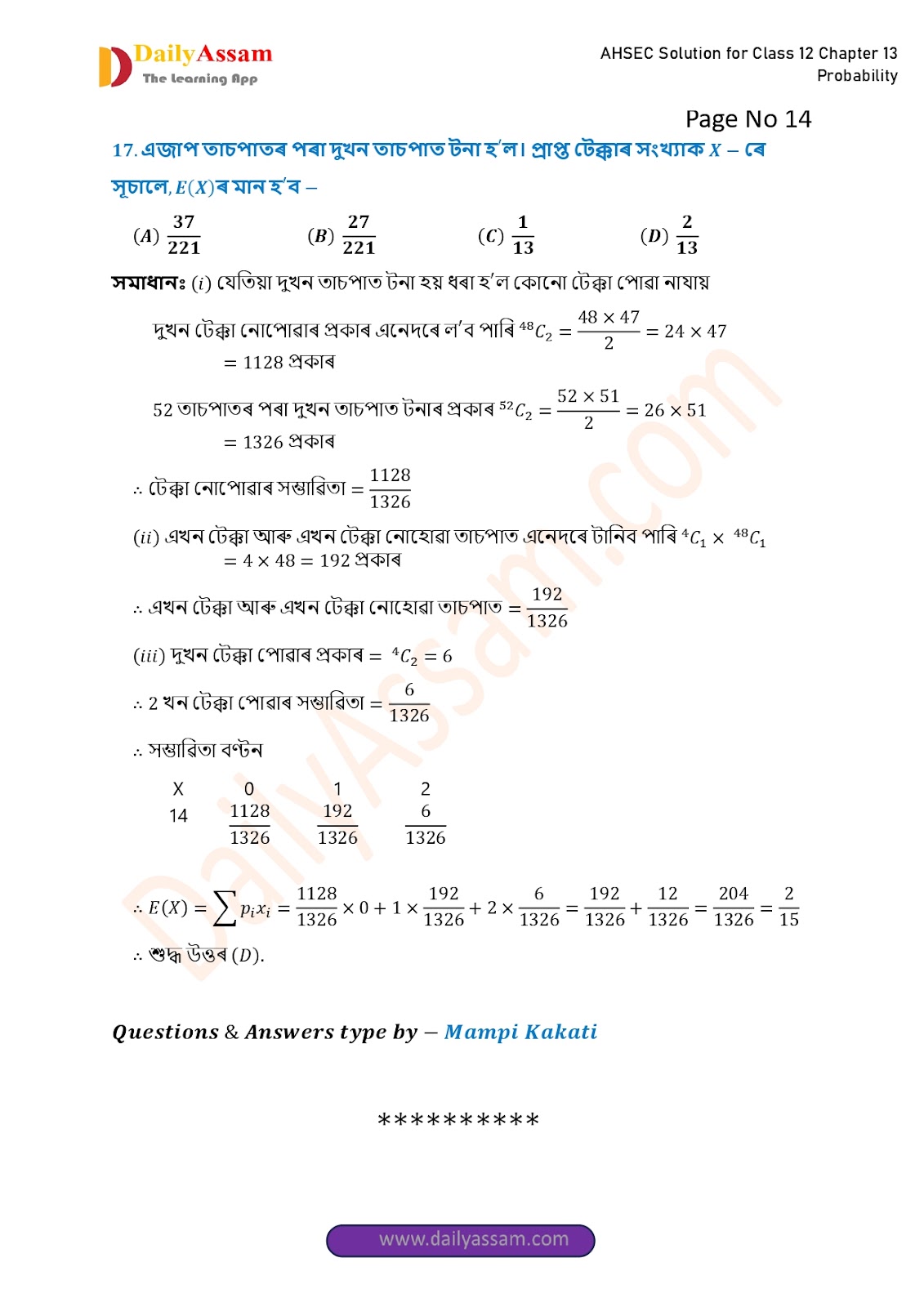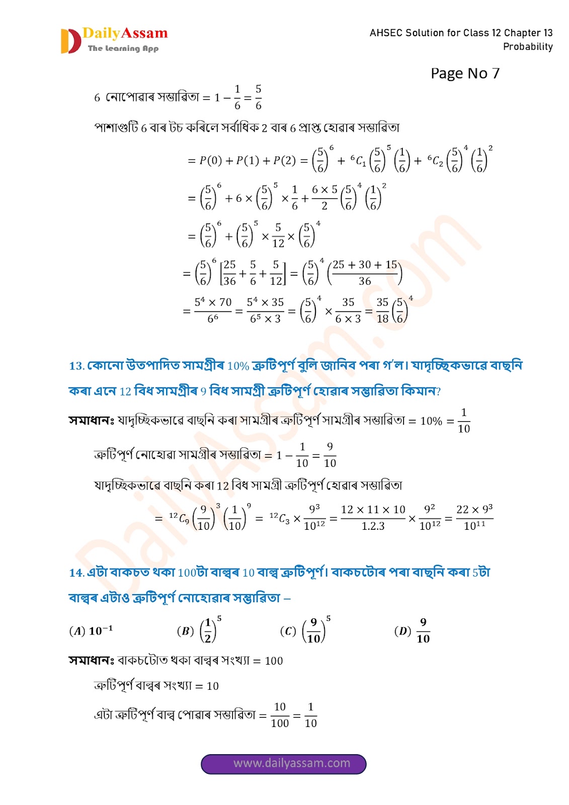 HomeAHSEC Class 12 Maths AM AnsAHSEC Class 12 Mathematics Part 2 Chapter 13 Solution | Assam Board Class 12 Mathematics Part 2 Chapter 13 সম্ভাৱিতা (probability) Answer | 2025 - 2026