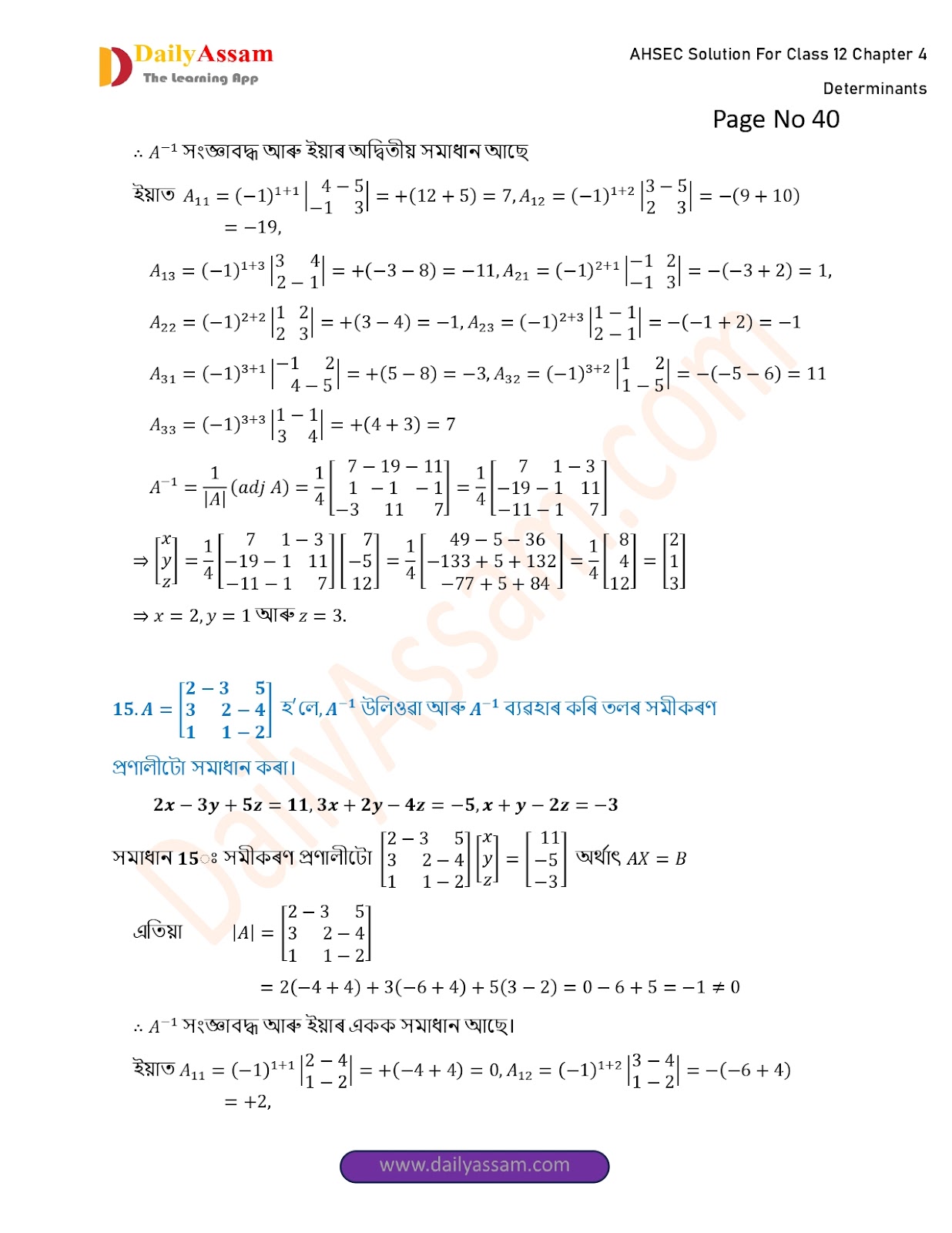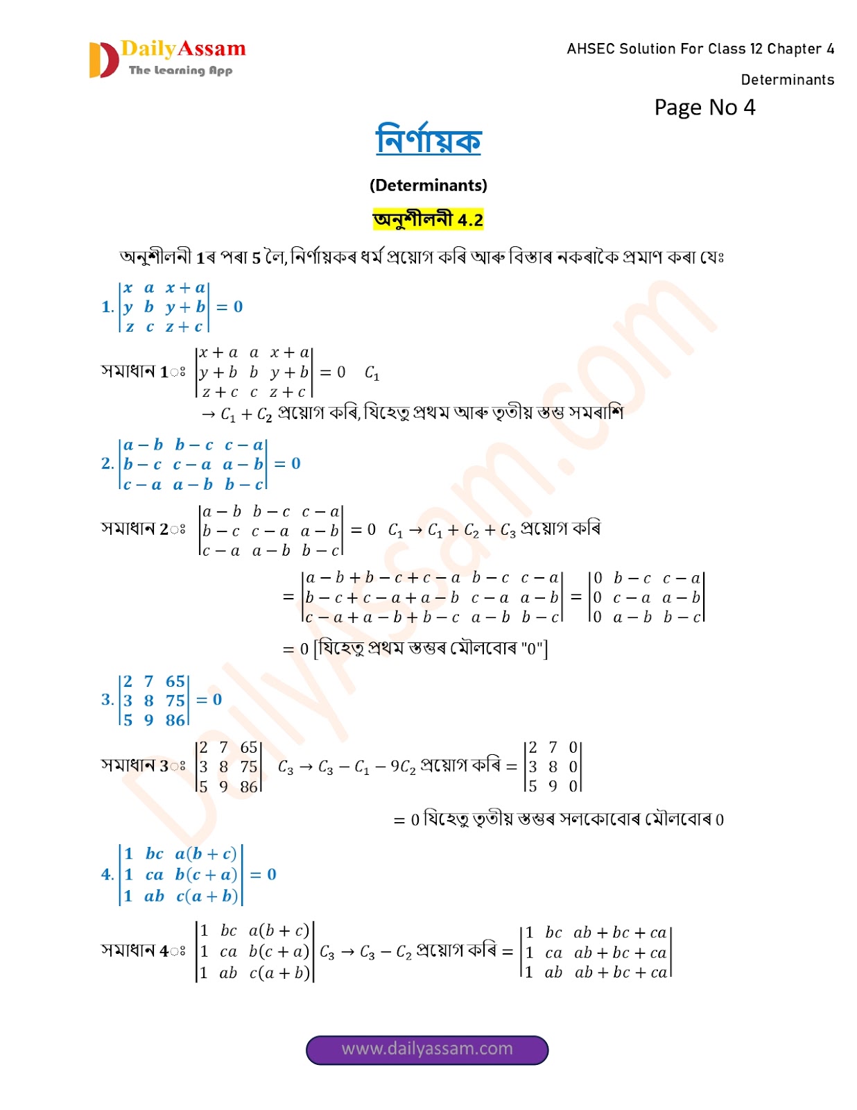 AHSEC Class 12 Mathematics Part 1 Chapter 4 Solution I Assam Board Class 12 Mathematics part 1 Chapter 4 নিৰ্ণায়ক (Determinants) Answer I 2025 - 2026