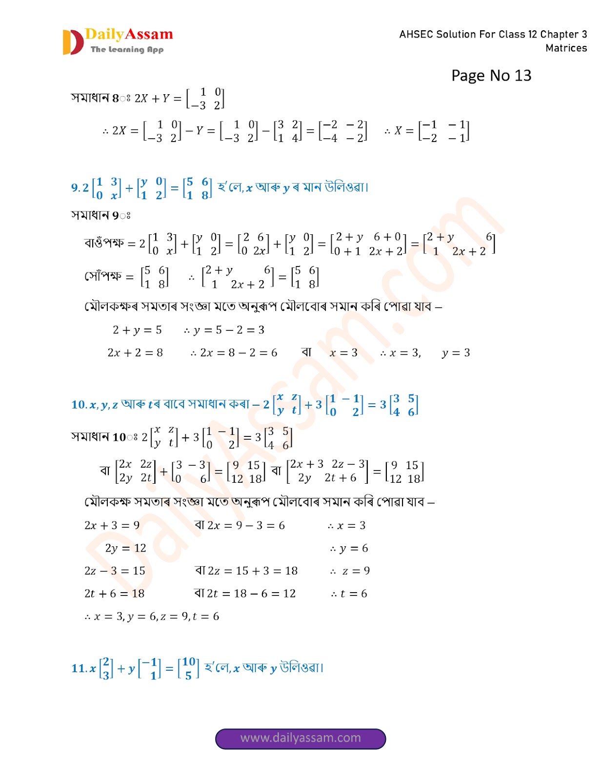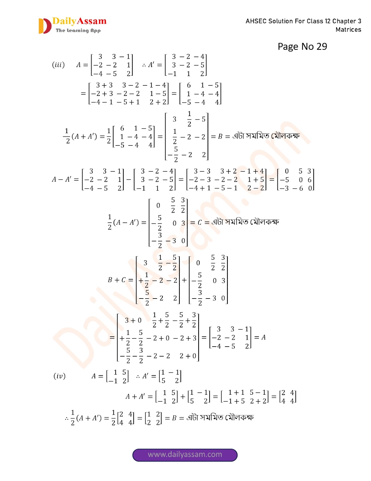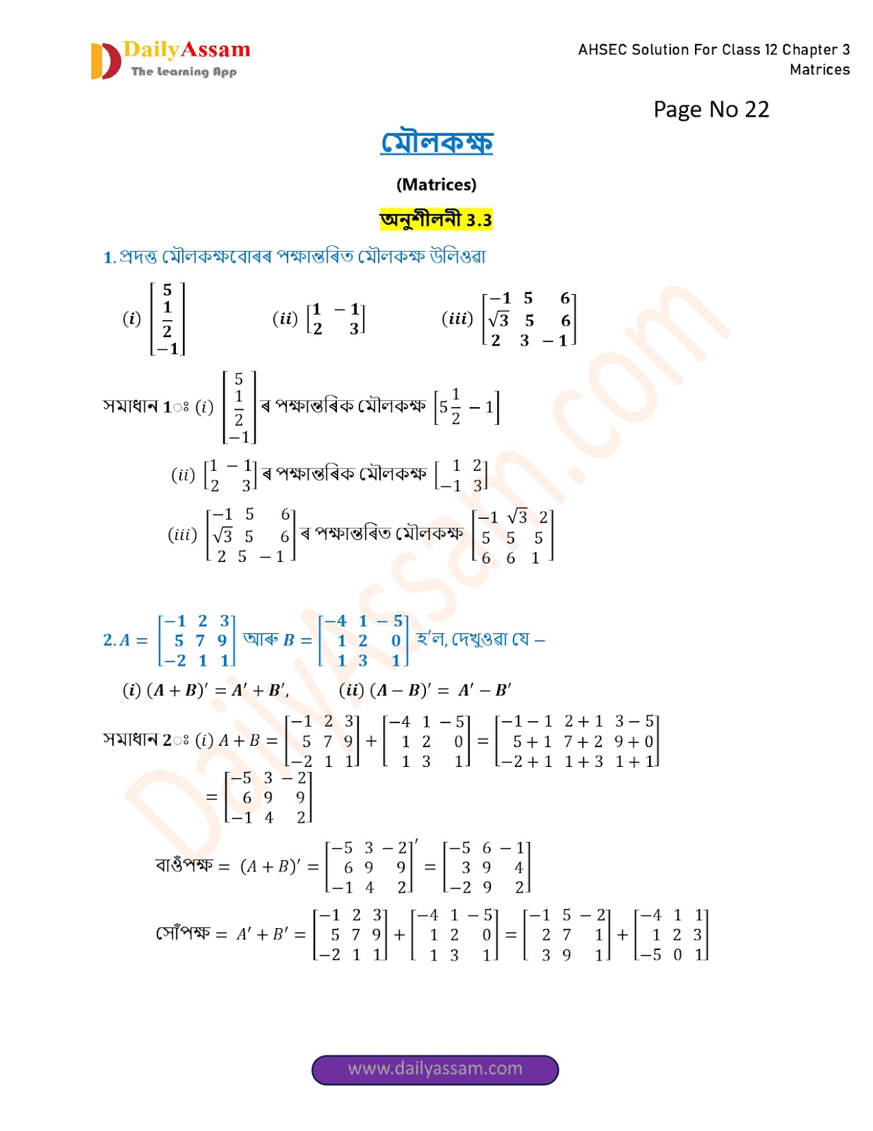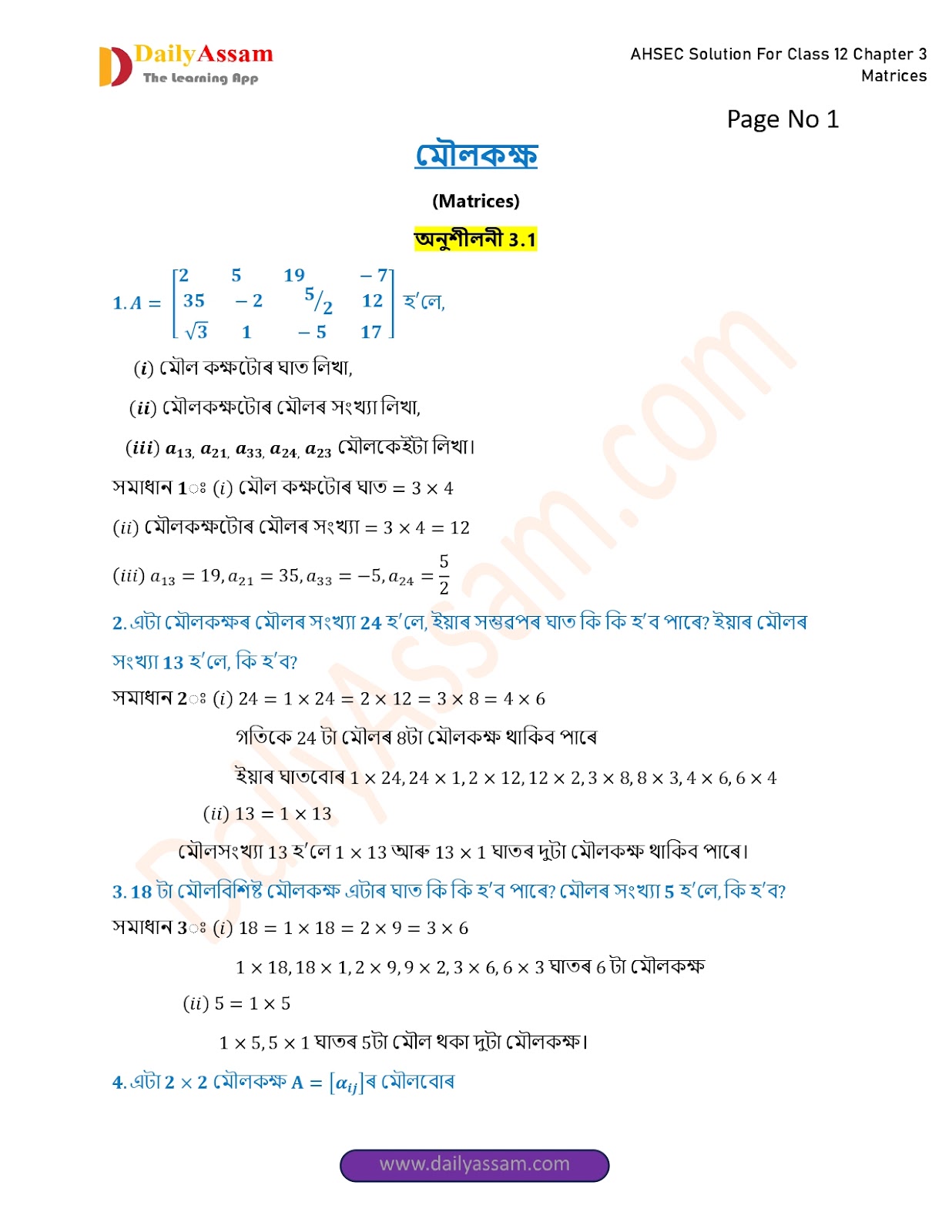 AHSEC Class 12 Mathematics Part 1 Chapter 3 Solution I Assam Board Class 12 Mathematics part 1 Chapter 3 মৌলকক্ষ (Matrices) Answer I 2025 - 2026