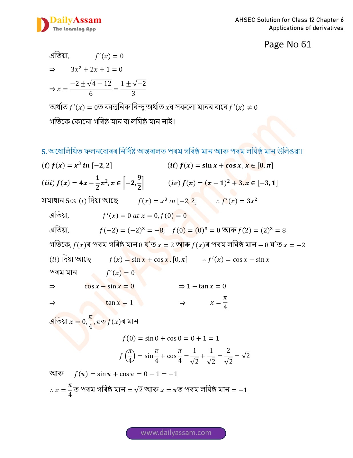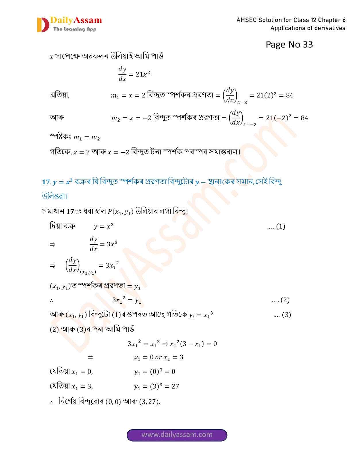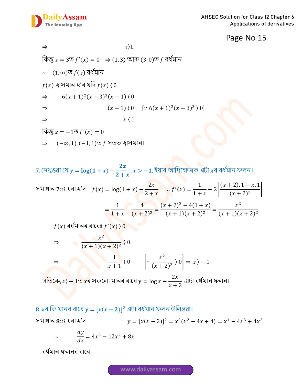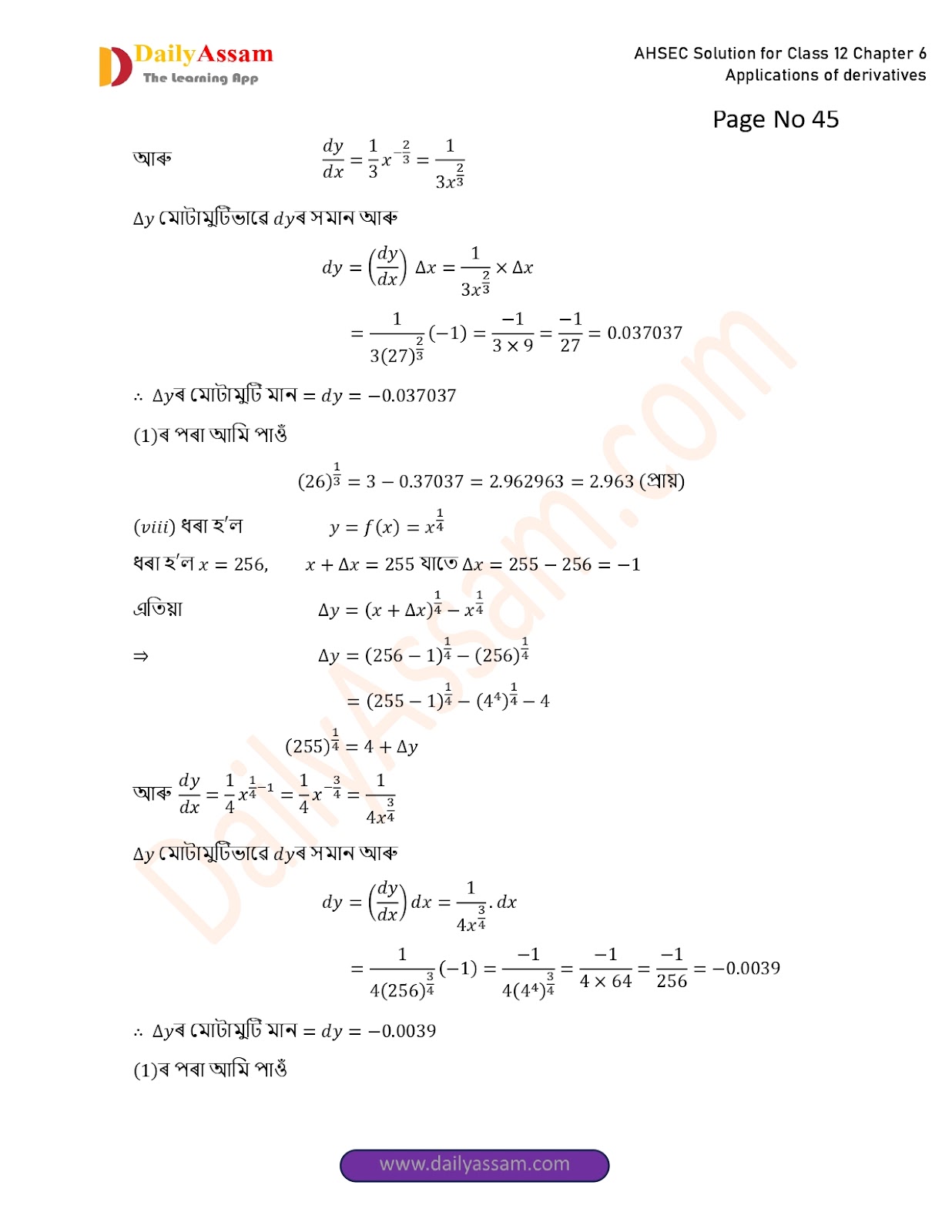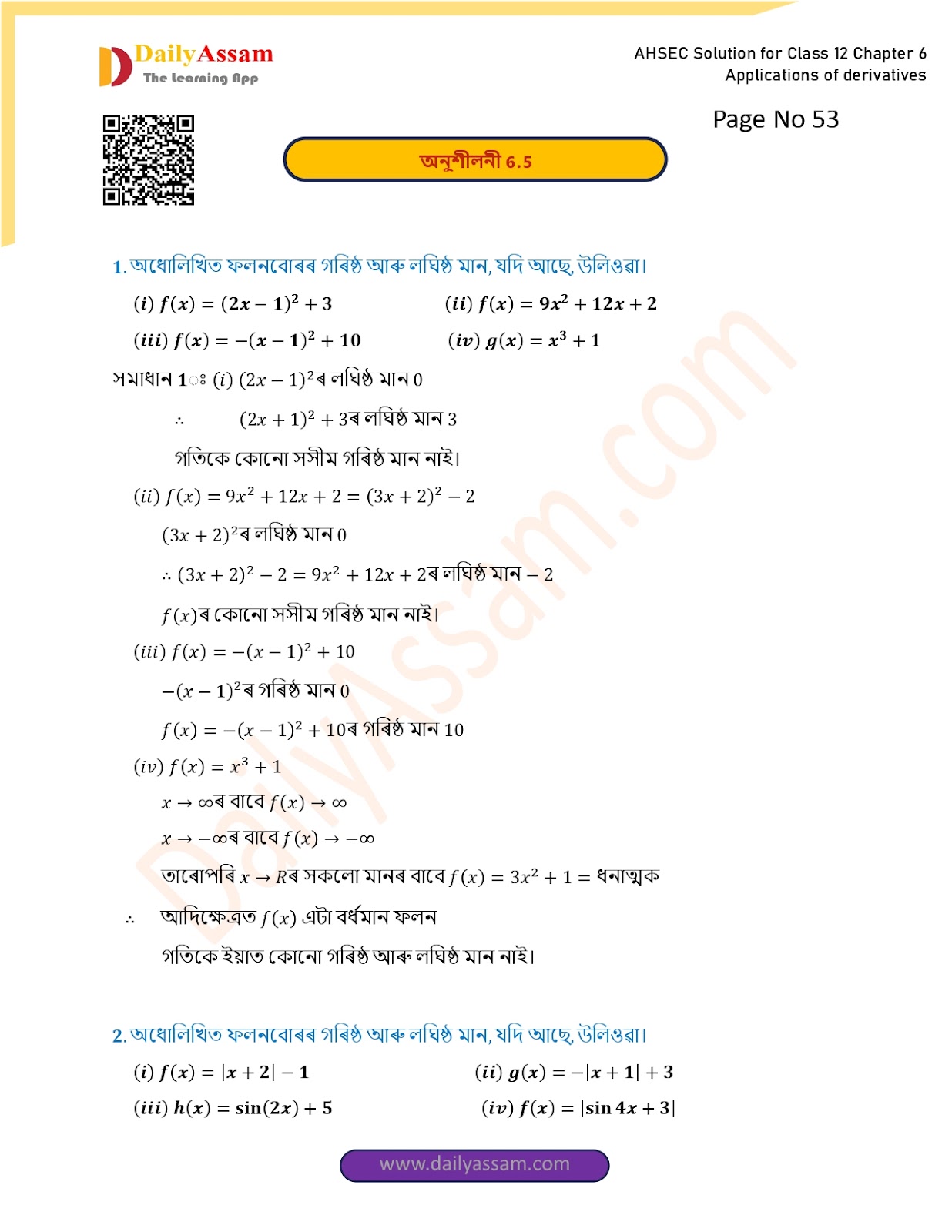 AHSEC Class 12 Mathematics Part 1 Chapter 6 Solution I Assam Board Class 12 Mathematics part 1 Chapter 6 অৱকলজৰ প্ৰয়োগ (Applications of Derivatives) Answer I 2025 - 2026