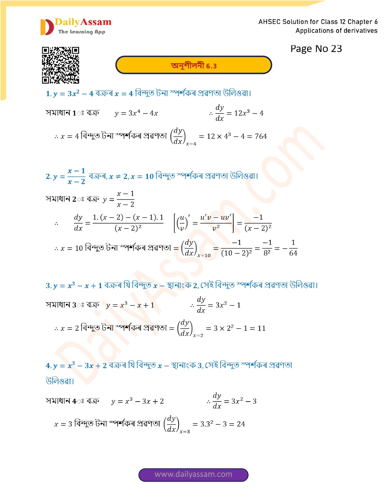 HomeAHSEC Class 12 Maths Part 1 (AM)AHSEC Class 12 Mathematics Part 1 Chapter 6 Solution I Assam Board Class 12 Mathematics part 1 Chapter 6 অৱকলজৰ প্ৰয়োগ (Applications of Derivatives) Answer I 2025 - 2026