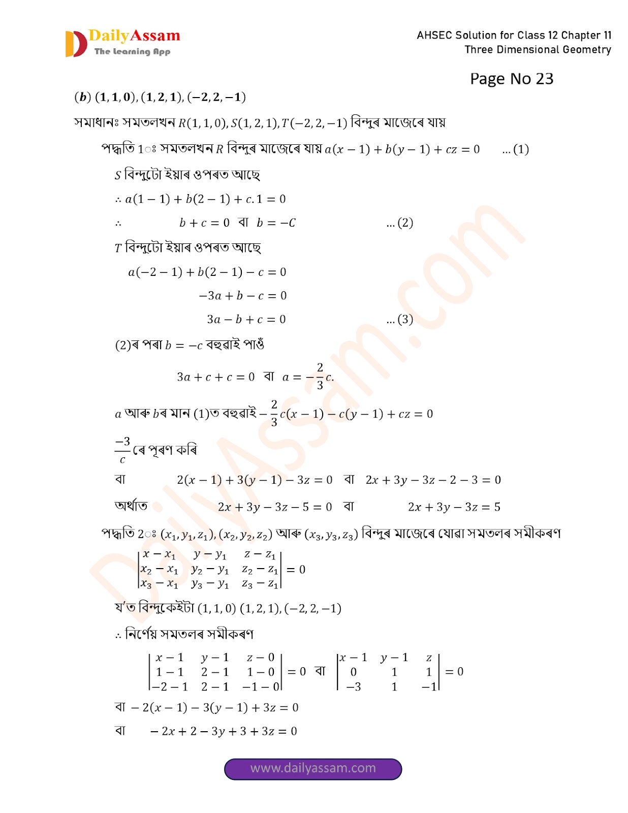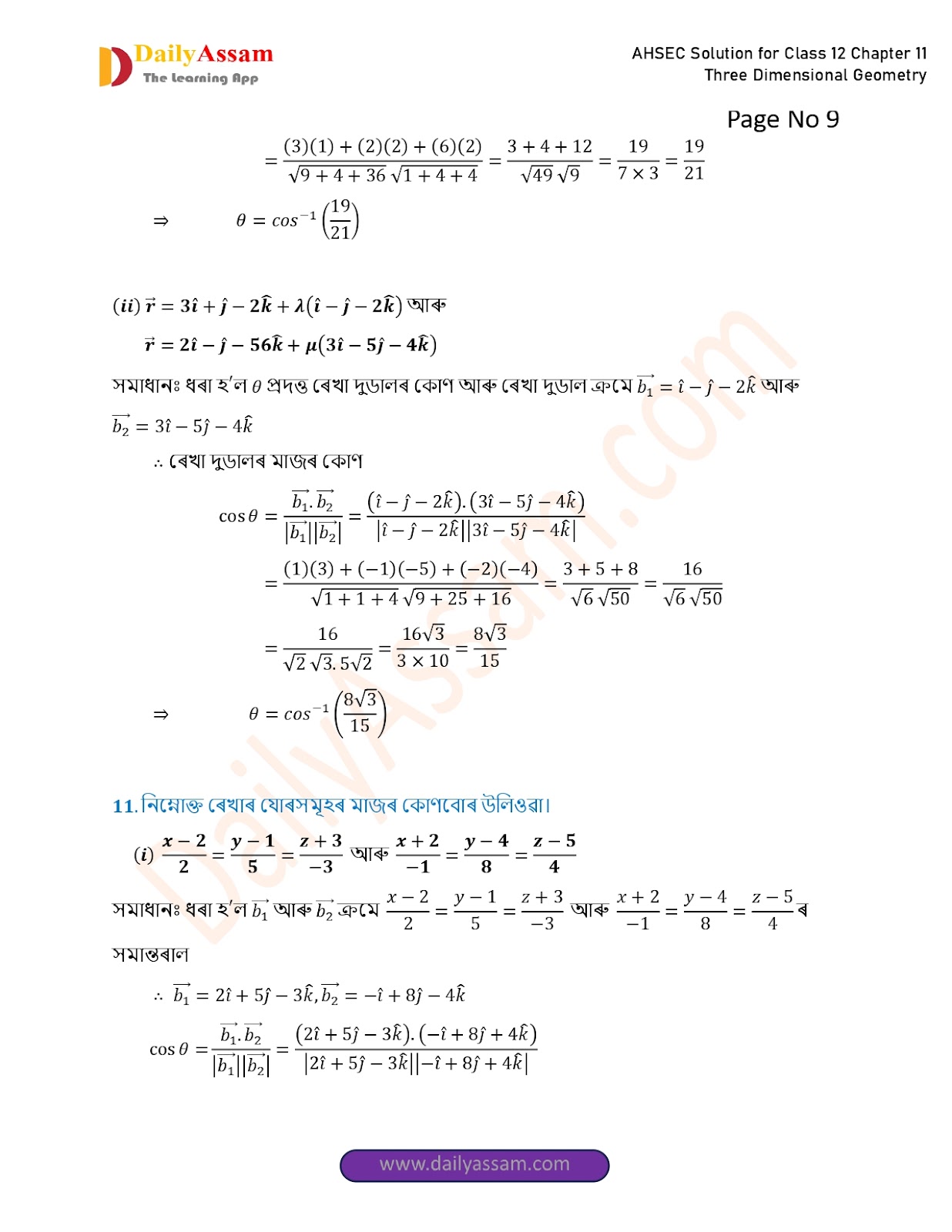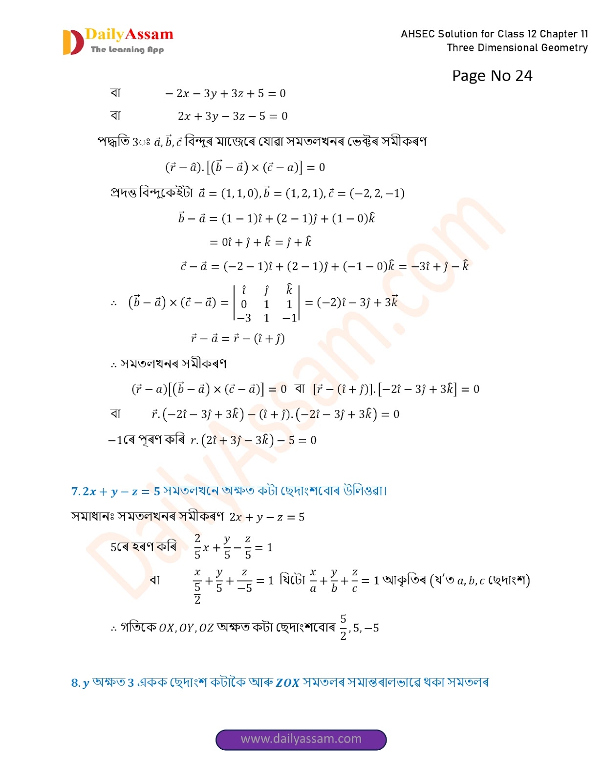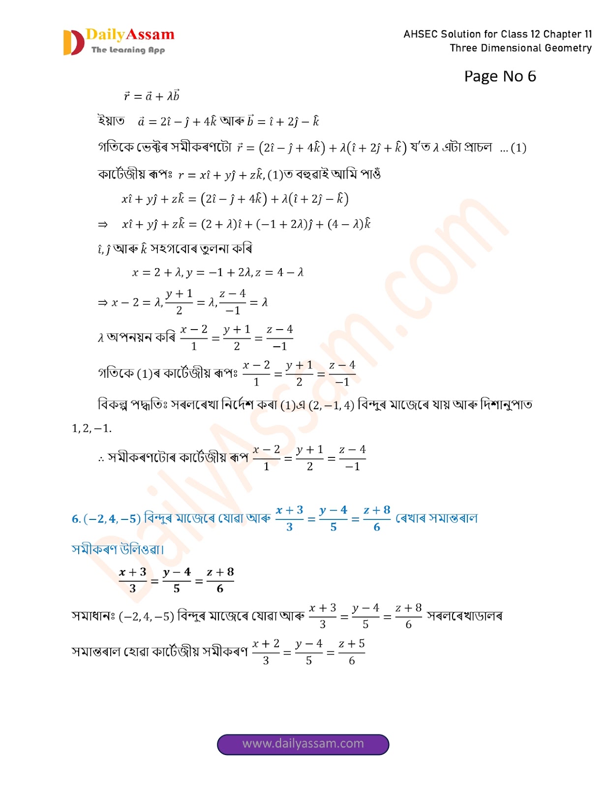 AHSEC Class 12 Mathematics Part 2 Chapter 11 Solution | Assam Board Class 12 Mathematics Part 2 Chapter 11 ত্ৰিবিমিতীয় জ্য়ামিতি (Three Dimensional Geometry) Answer | 2025 - 2026
