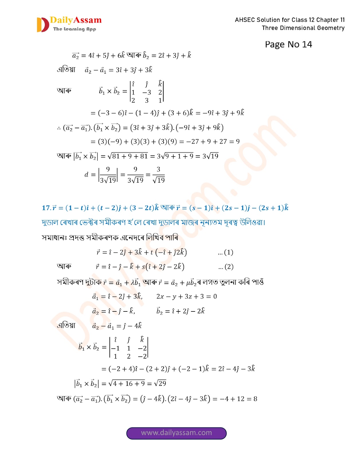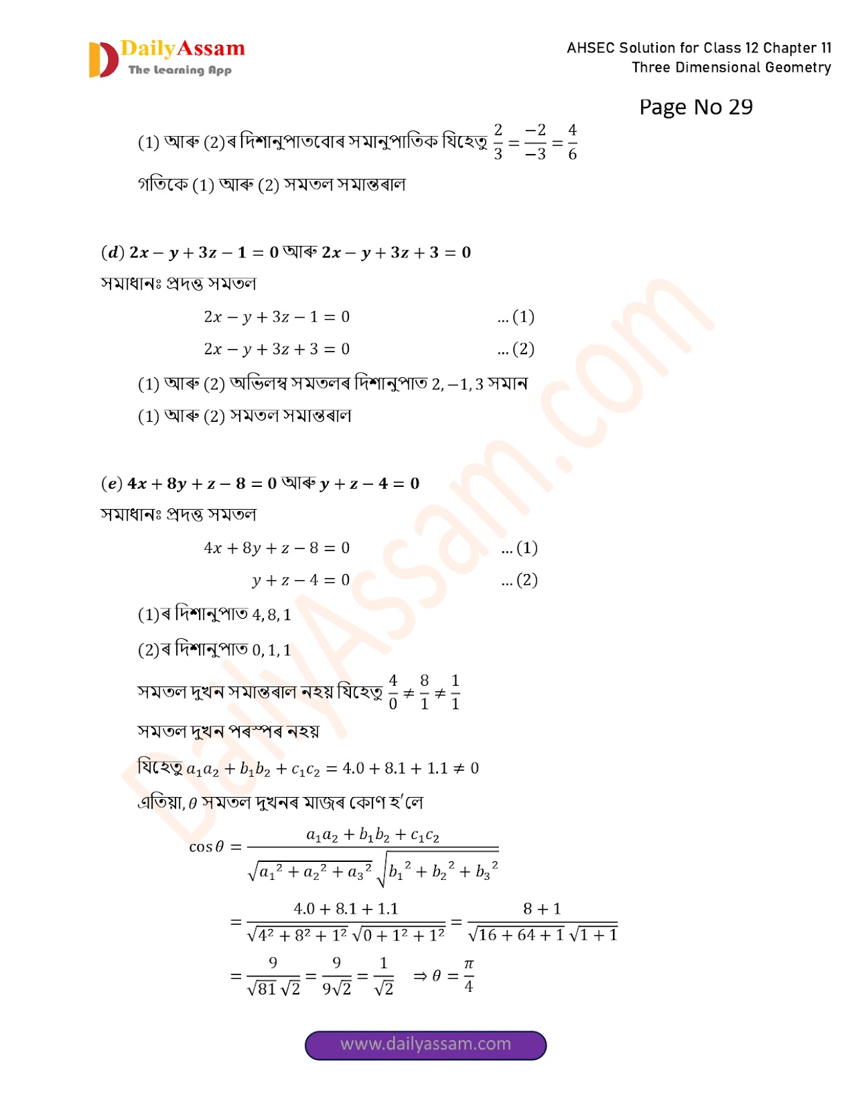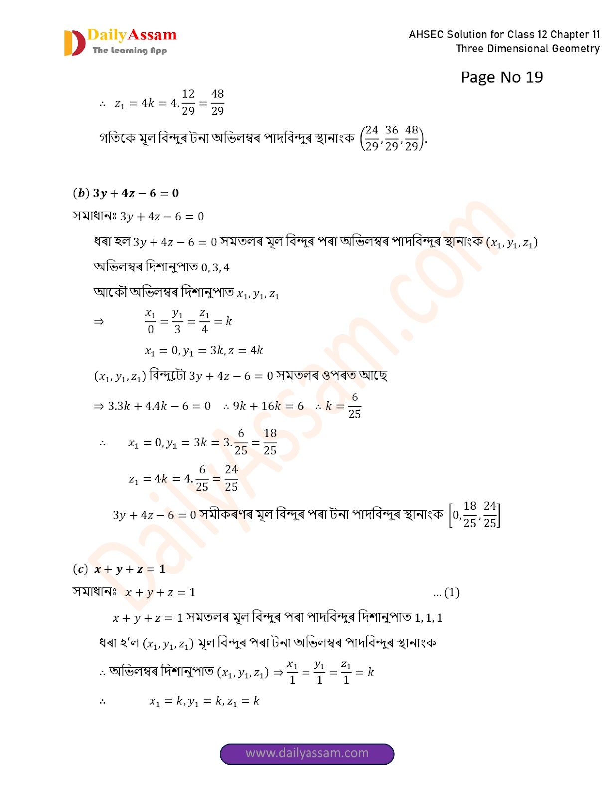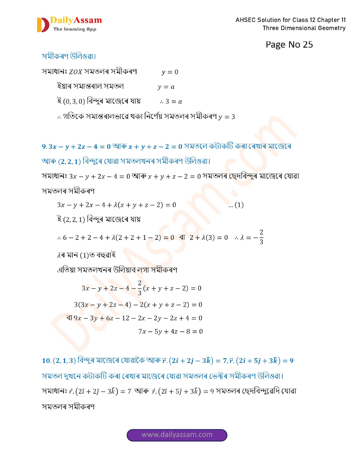 AHSEC Class 12 Mathematics Part 2 Chapter 11 Solution | Assam Board Class 12 Mathematics Part 2 Chapter 11 ত্ৰিবিমিতীয় জ্য়ামিতি (Three Dimensional Geometry) Answer | 2025 - 2026