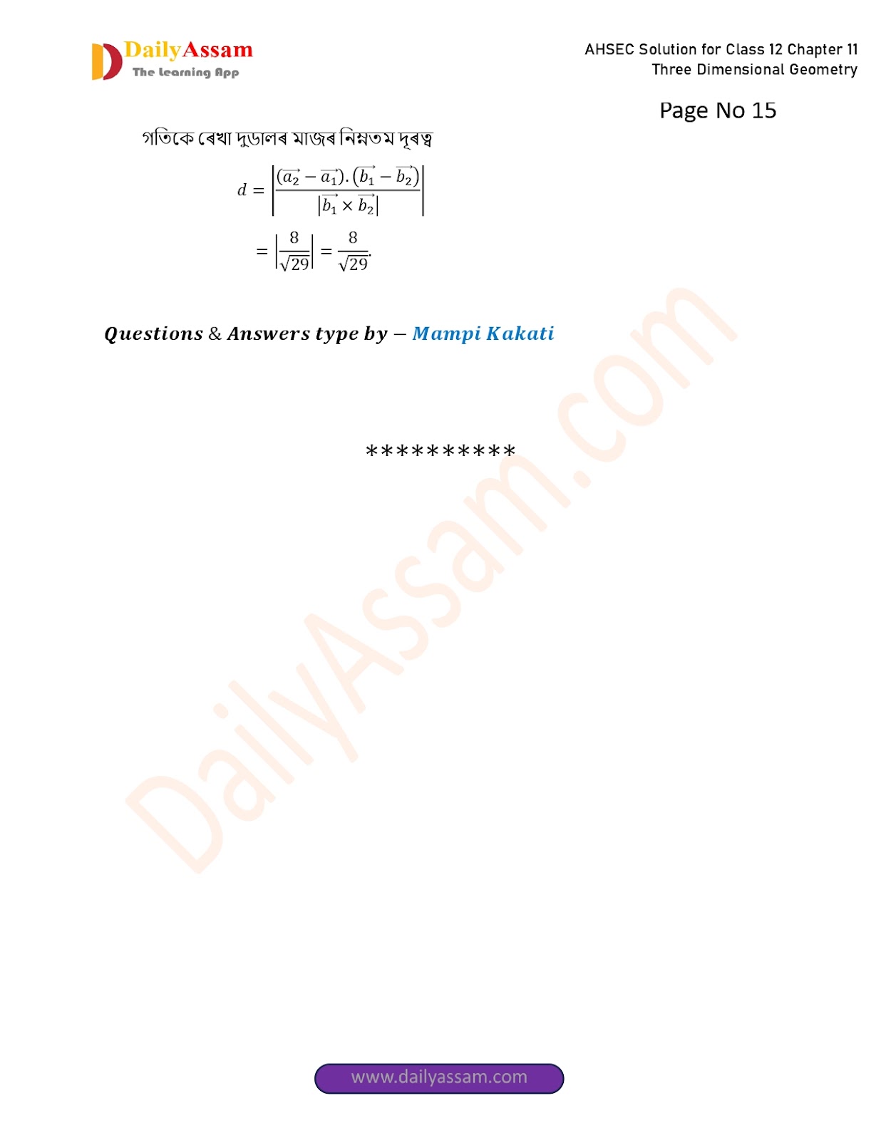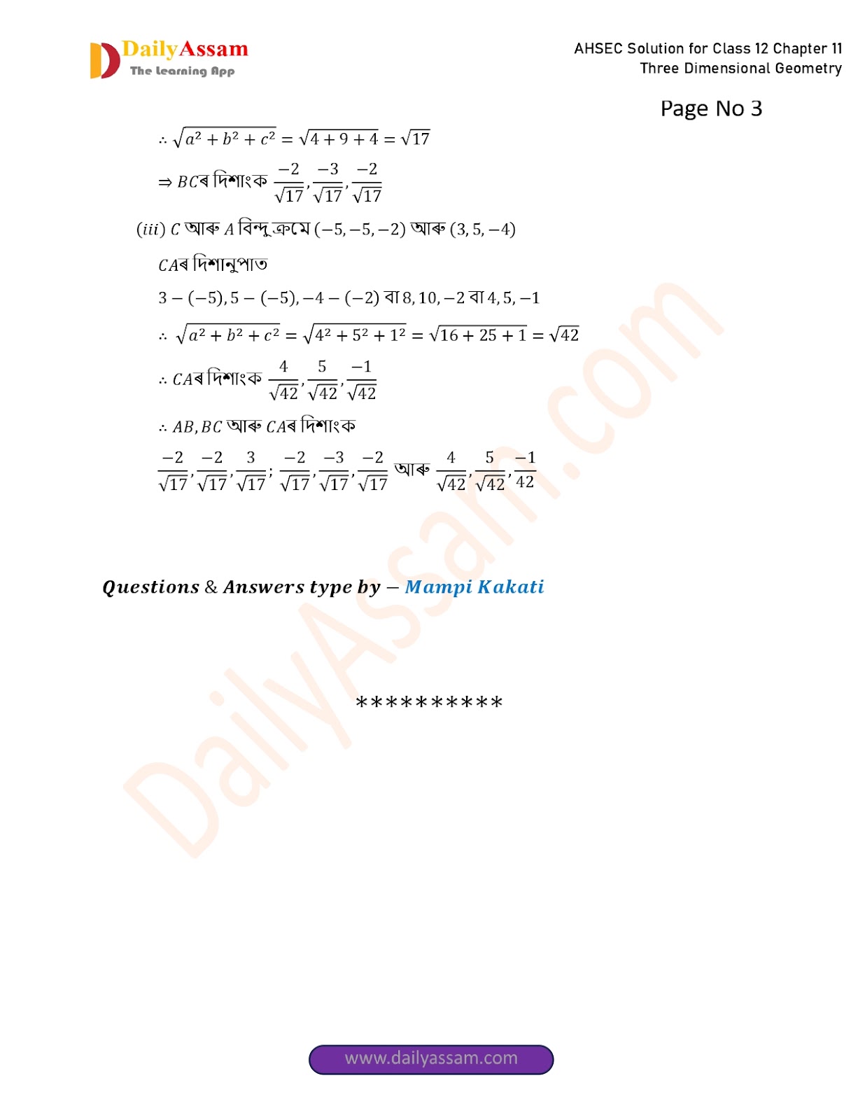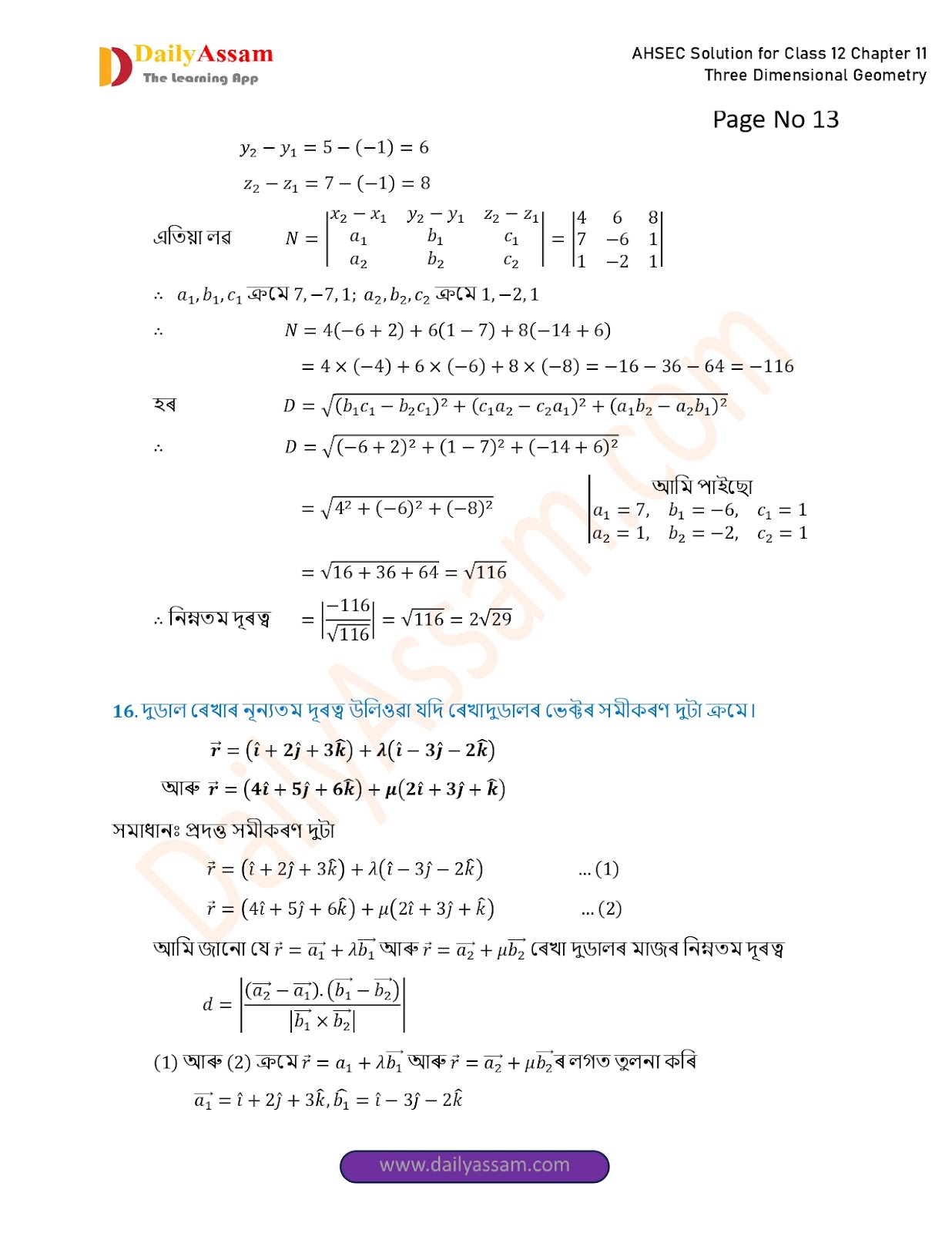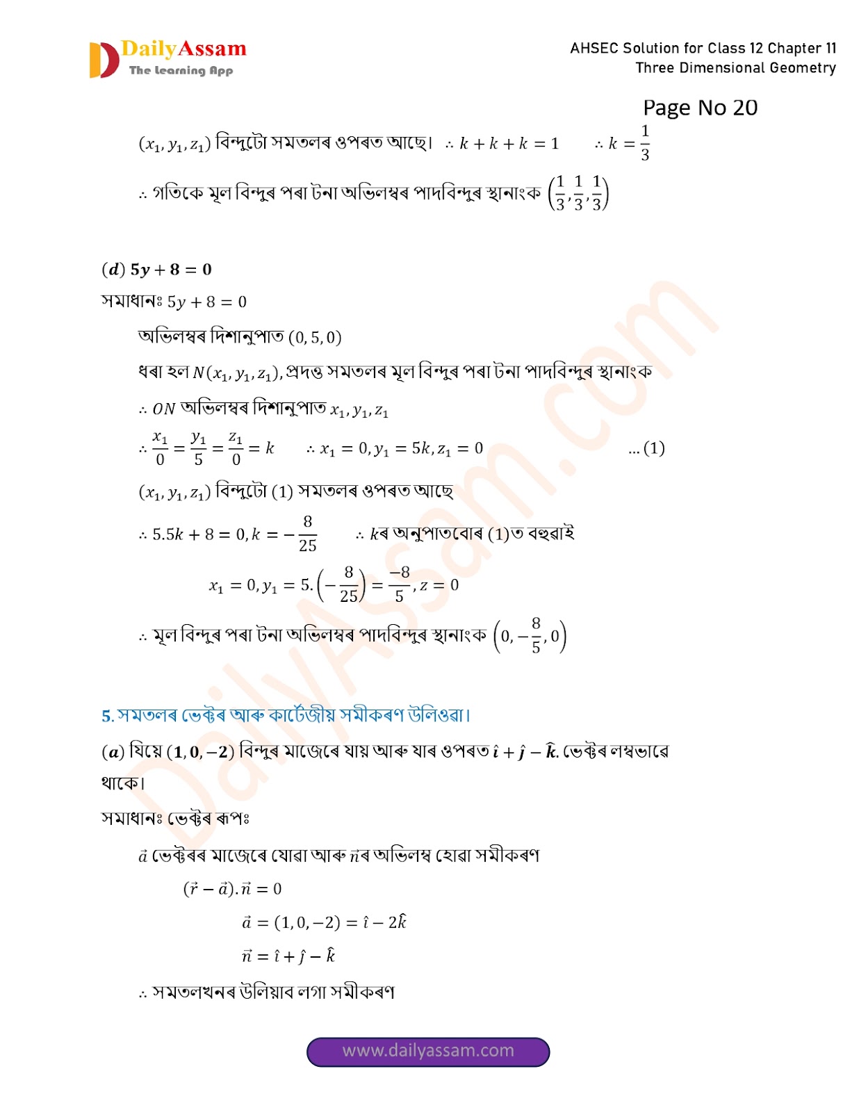 AHSEC Class 12 Mathematics Part 2 Chapter 11 Solution | Assam Board Class 12 Mathematics Part 2 Chapter 11 ত্ৰিবিমিতীয় জ্য়ামিতি (Three Dimensional Geometry) Answer | 2025 - 2026
