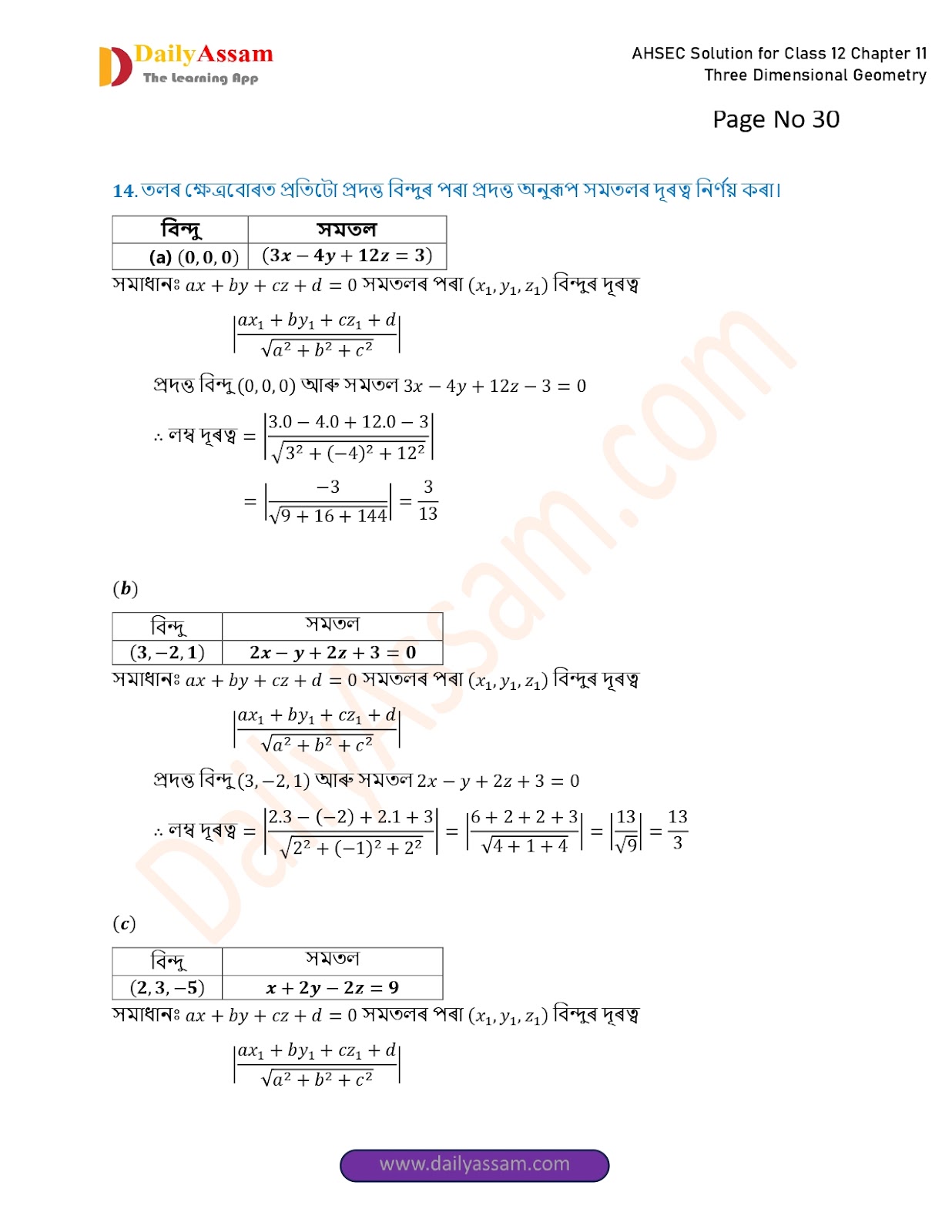 HomeAHSEC Class 12 Maths AM AnsAHSEC Class 12 Mathematics Part 2 Chapter 11 Solution | Assam Board Class 12 Mathematics Part 2 Chapter 11 ত্ৰিবিমিতীয় জ্য়ামিতি (Three Dimensional Geometry) Answer | 2025 - 2026